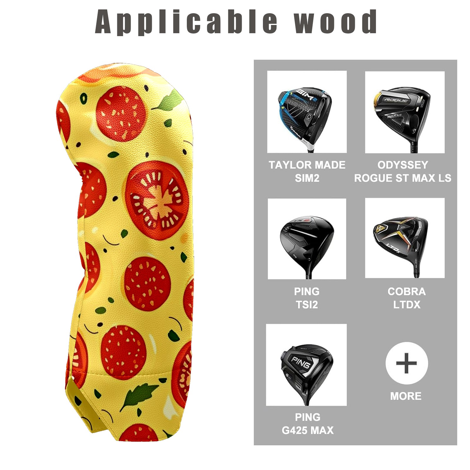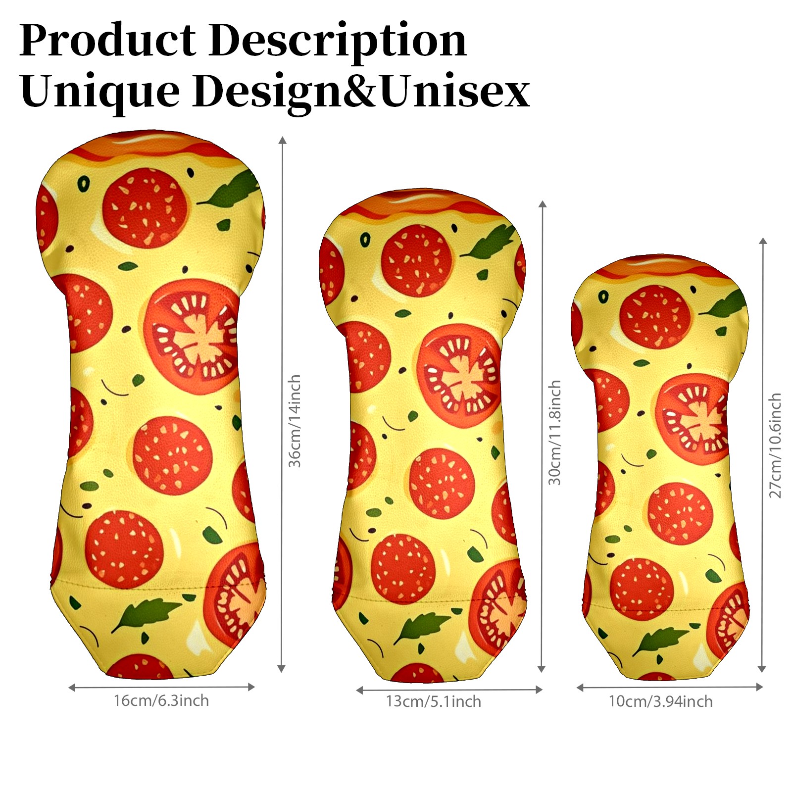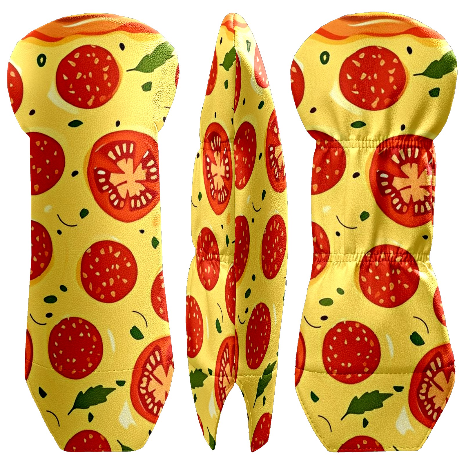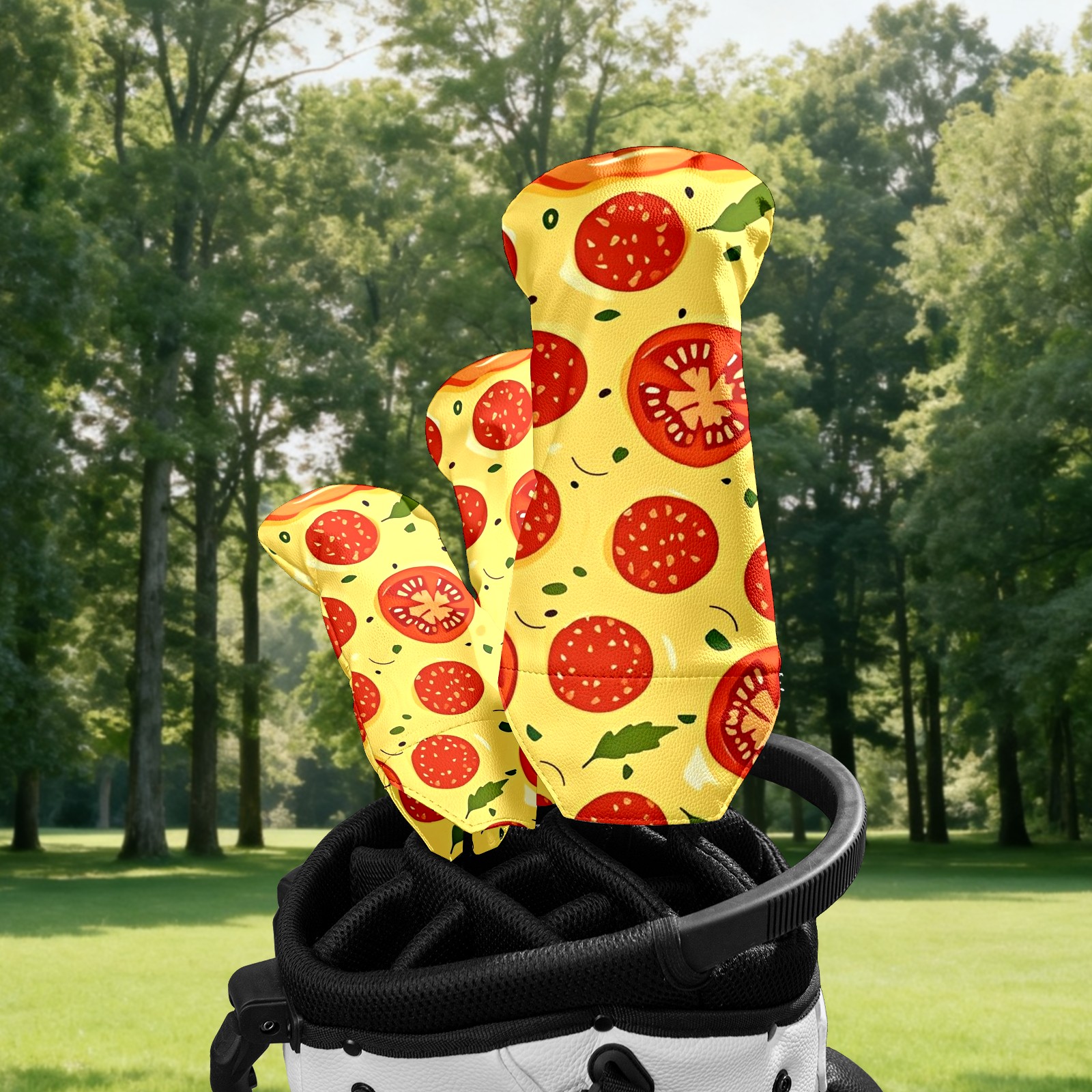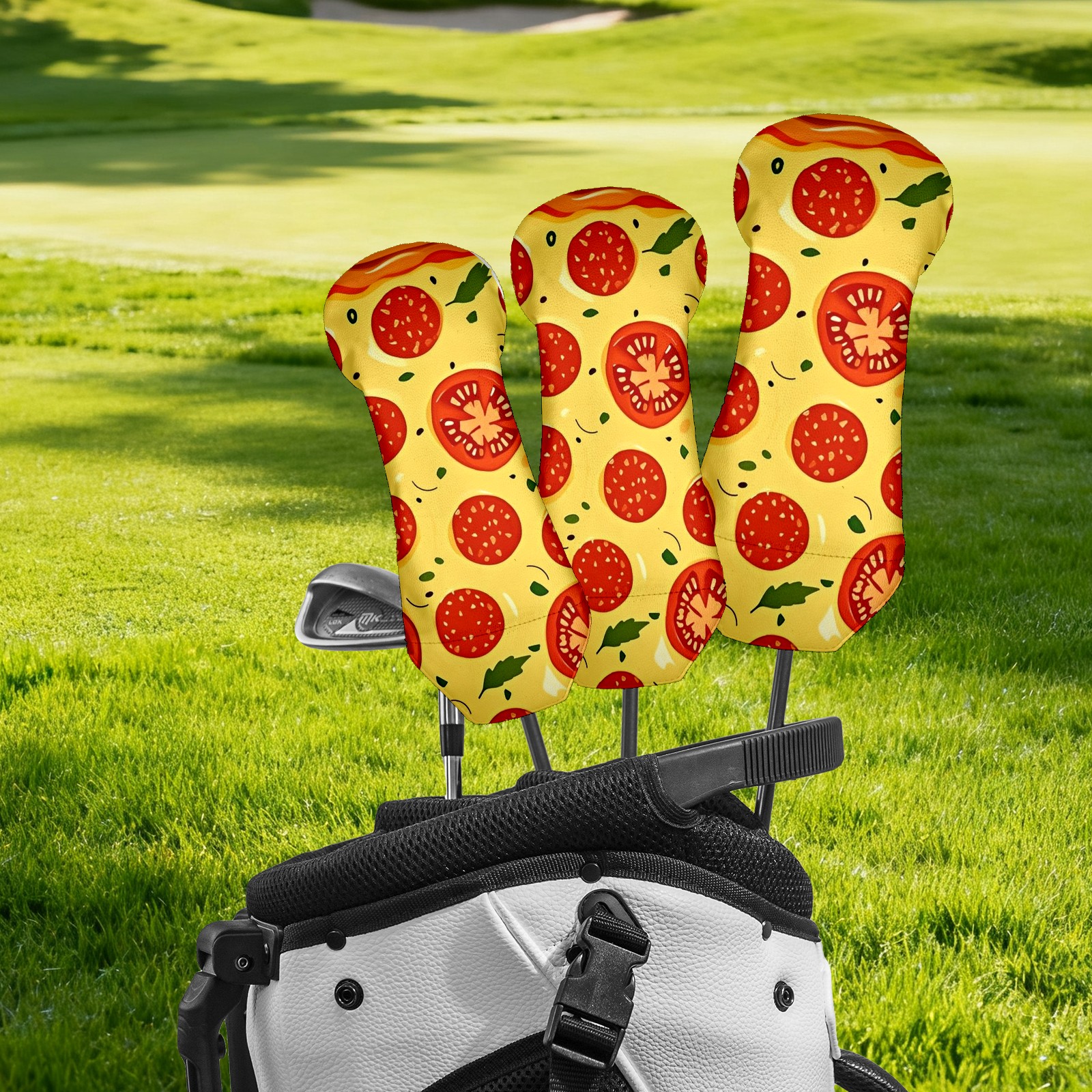 Golf Club Covers Driver Fairway Hybrid Headcover Premium Leather Golf Head Covers for Woods and Driver Hybrid, Golf Headcovers Set for Girls Women Men (Jimeng-2025-09-24-9411-pizza Illustration, Digital Art, Peppero...)