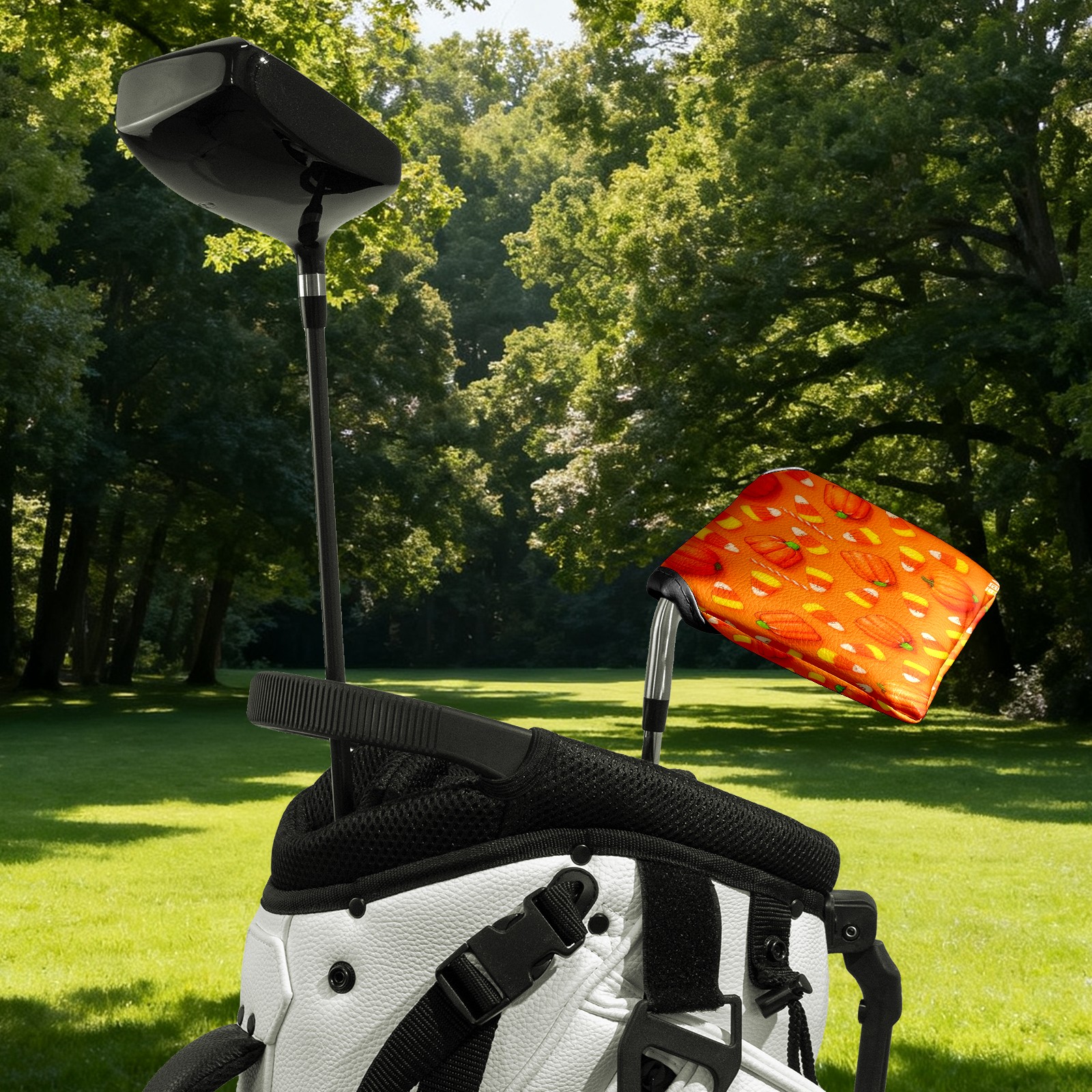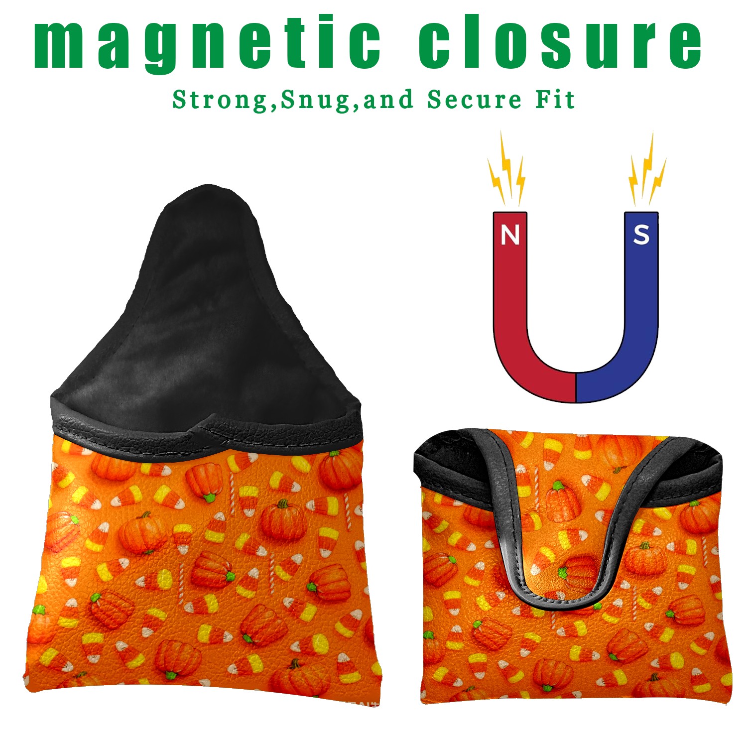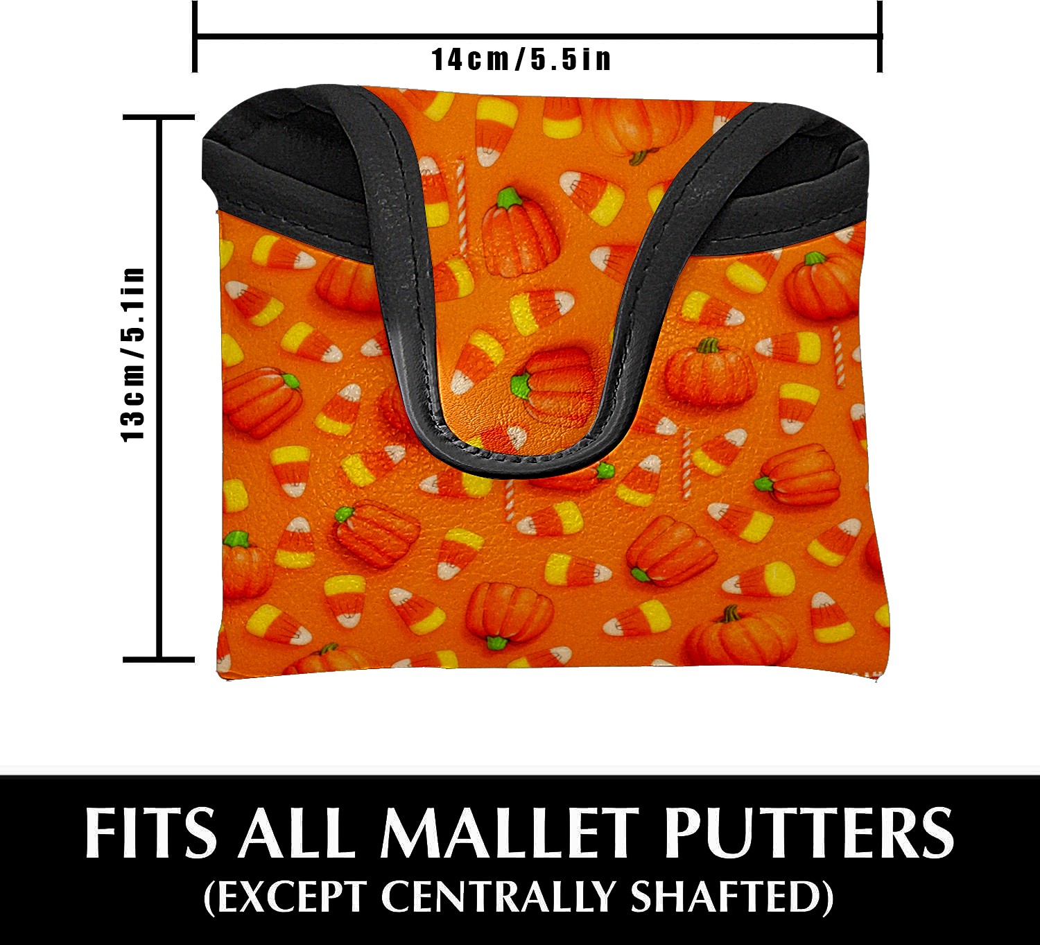 Mallet Putter Cover,Golf Club Head Cover, PU Leather Iron Head Covers Set Gift for Travel Cases Protector Fit Most, Easily Slips on and Secures Pumpkin Candy