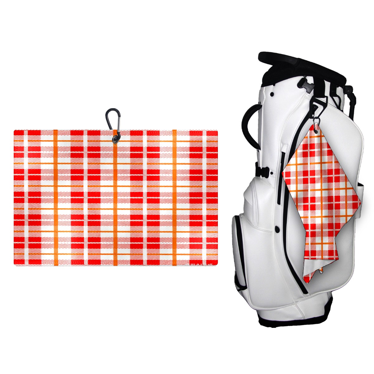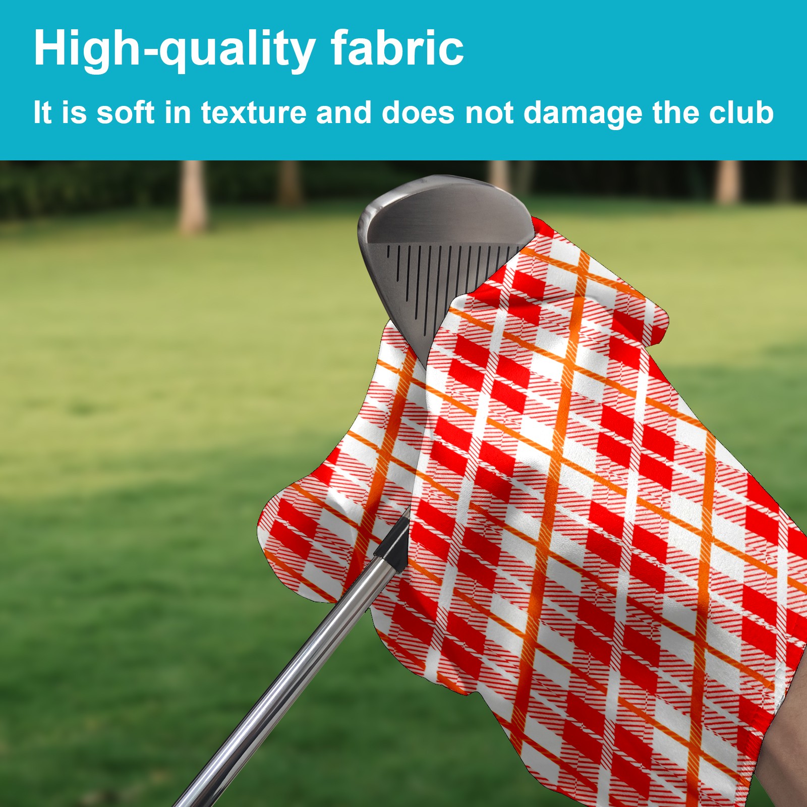 Golf Towel, Funny Printed Fast Drying Towel for Golf Bags with Clip, Golf Gift for Men Women, Birthday, Christmas Gifts Red Plaid