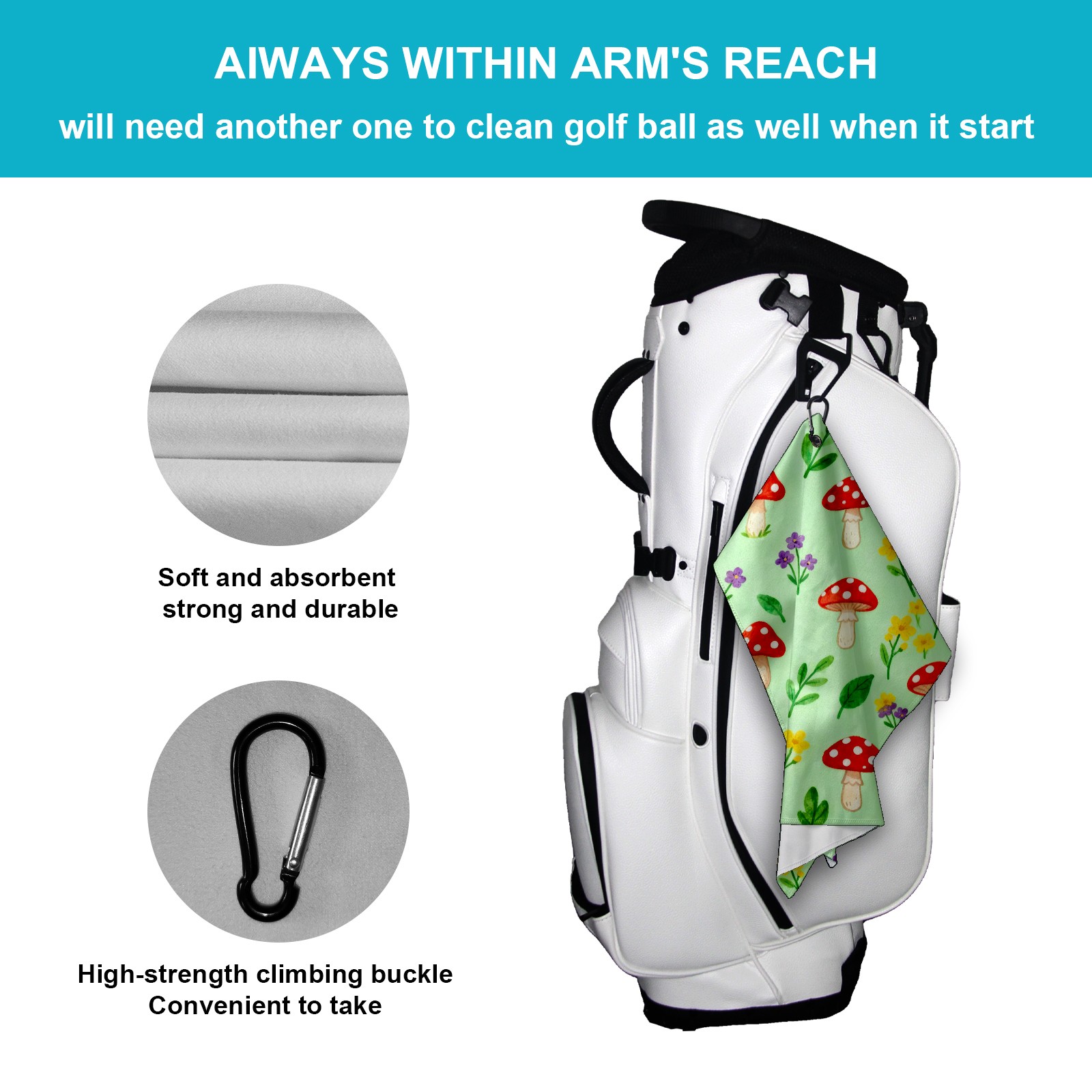 • <p>Designed to care for clubs and balls, this high performance golf towel is a compact and portable 15.7 in x 23.6 in size that cleans precisely without taking up space in your bag.&nbsp;</p> <p>The polyester material creates a dense cleaning network that absorbs dust and grass clippings and removes divot stains in a single wipe.&nbsp;</p> <p>Durable, absorbent fabric stays fluffy through multiple washes and dries quickly when hung, eliminating damp odors. The buckle clip design attaches to the side of the bag for easy access and natural air drying while walking, keeping the towel dry and efficient at all times.&nbsp;</p> <p>Whether it's wiping the ball before teeing off or cleaning the club face on the green side, it's a practical aid for golfers who want to keep their equipment looking fresh and new.</p>