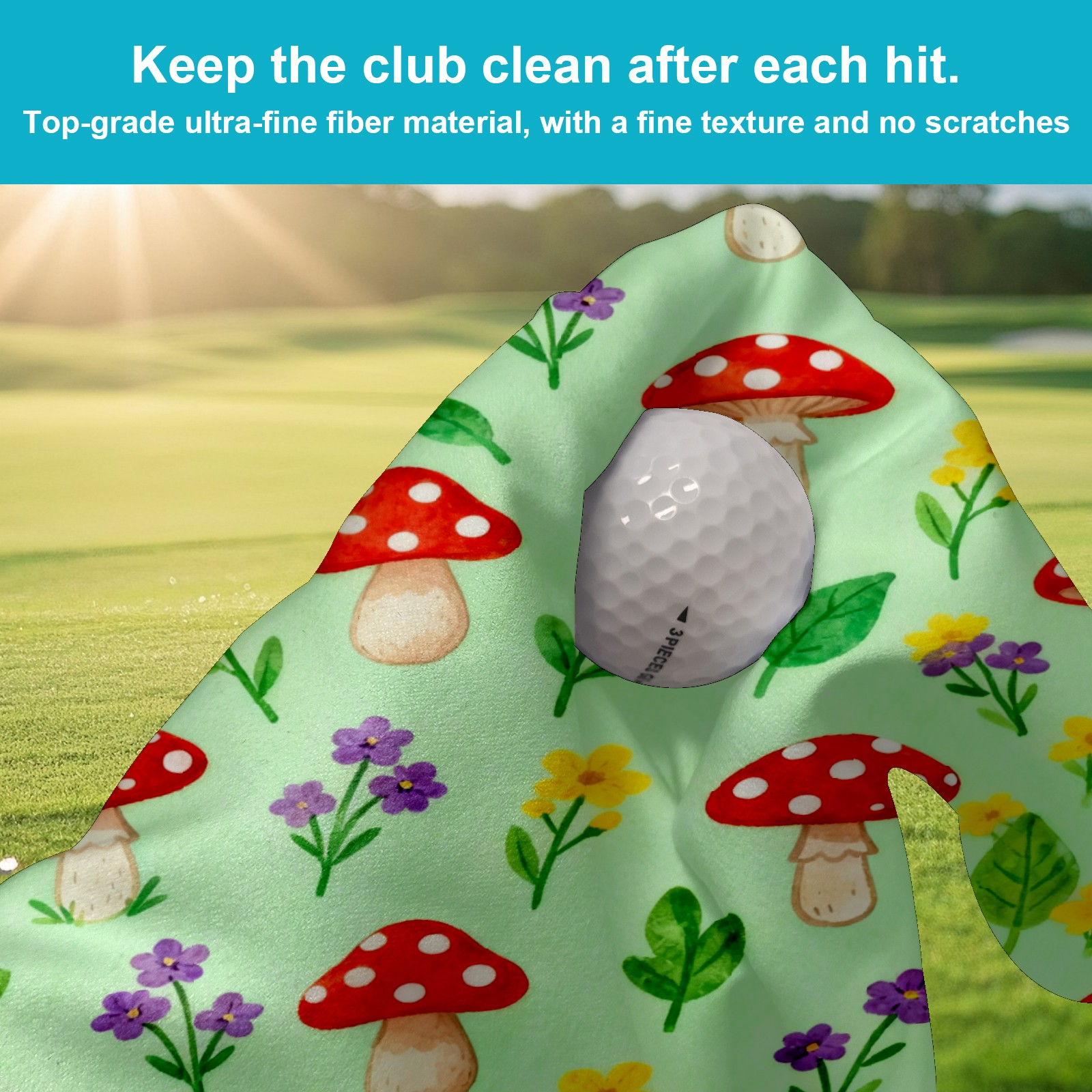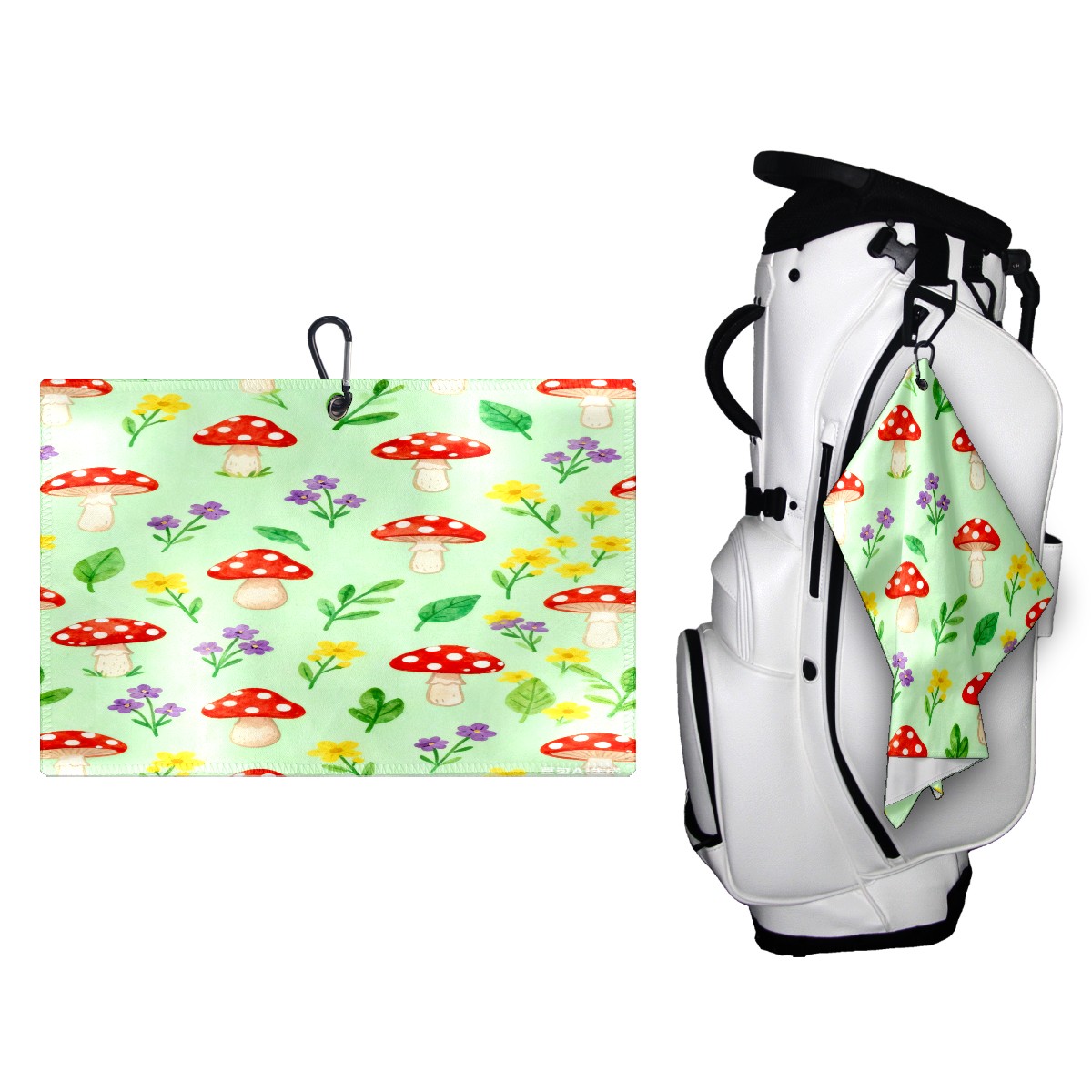 Golf Towel, Funny Printed Fast Drying Towel for Golf Bags with Clip, Golf Gift for Men Women, Birthday, Christmas Gifts Mushroom flowers