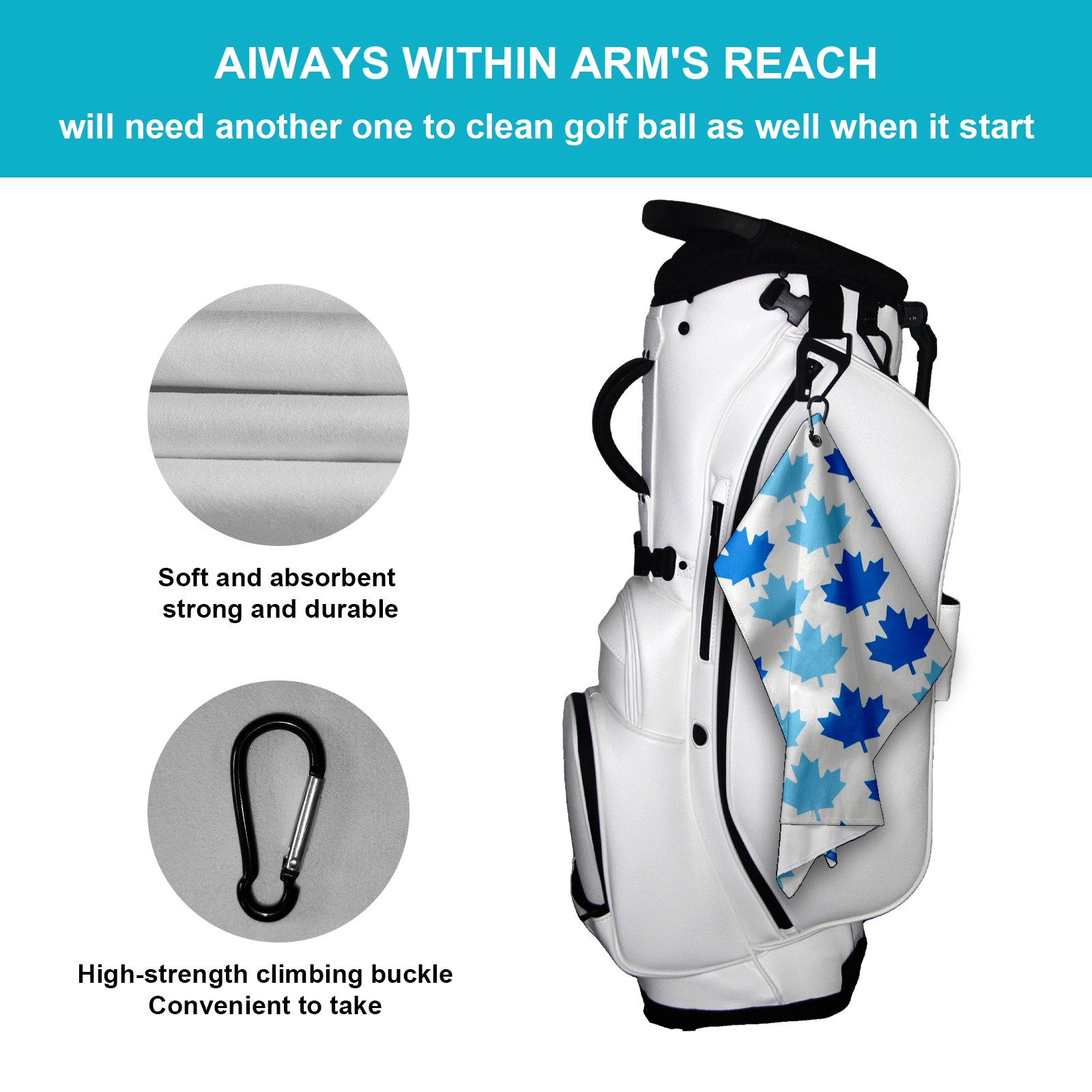 • <p>Designed to care for clubs and balls, this high performance golf towel is a compact and portable 15.7 in x 23.6 in size that cleans precisely without taking up space in your bag.&nbsp;</p> <p>The polyester material creates a dense cleaning network that absorbs dust and grass clippings and removes divot stains in a single wipe.&nbsp;</p> <p>Durable, absorbent fabric stays fluffy through multiple washes and dries quickly when hung, eliminating damp odors. The buckle clip design attaches to the side of the bag for easy access and natural air drying while walking, keeping the towel dry and efficient at all times.&nbsp;</p> <p>Whether it's wiping the ball before teeing off or cleaning the club face on the green side, it's a practical aid for golfers who want to keep their equipment looking fresh and new.</p>