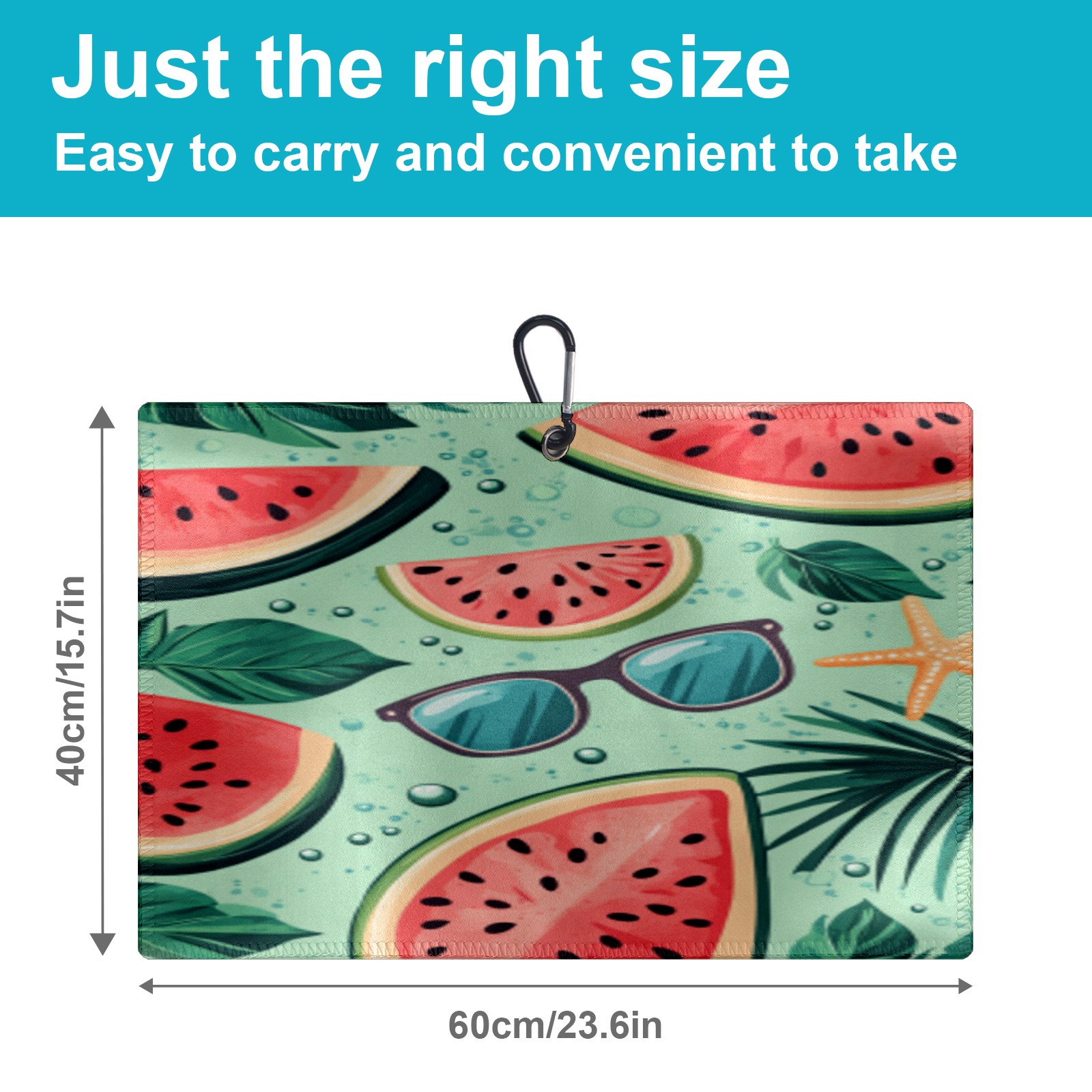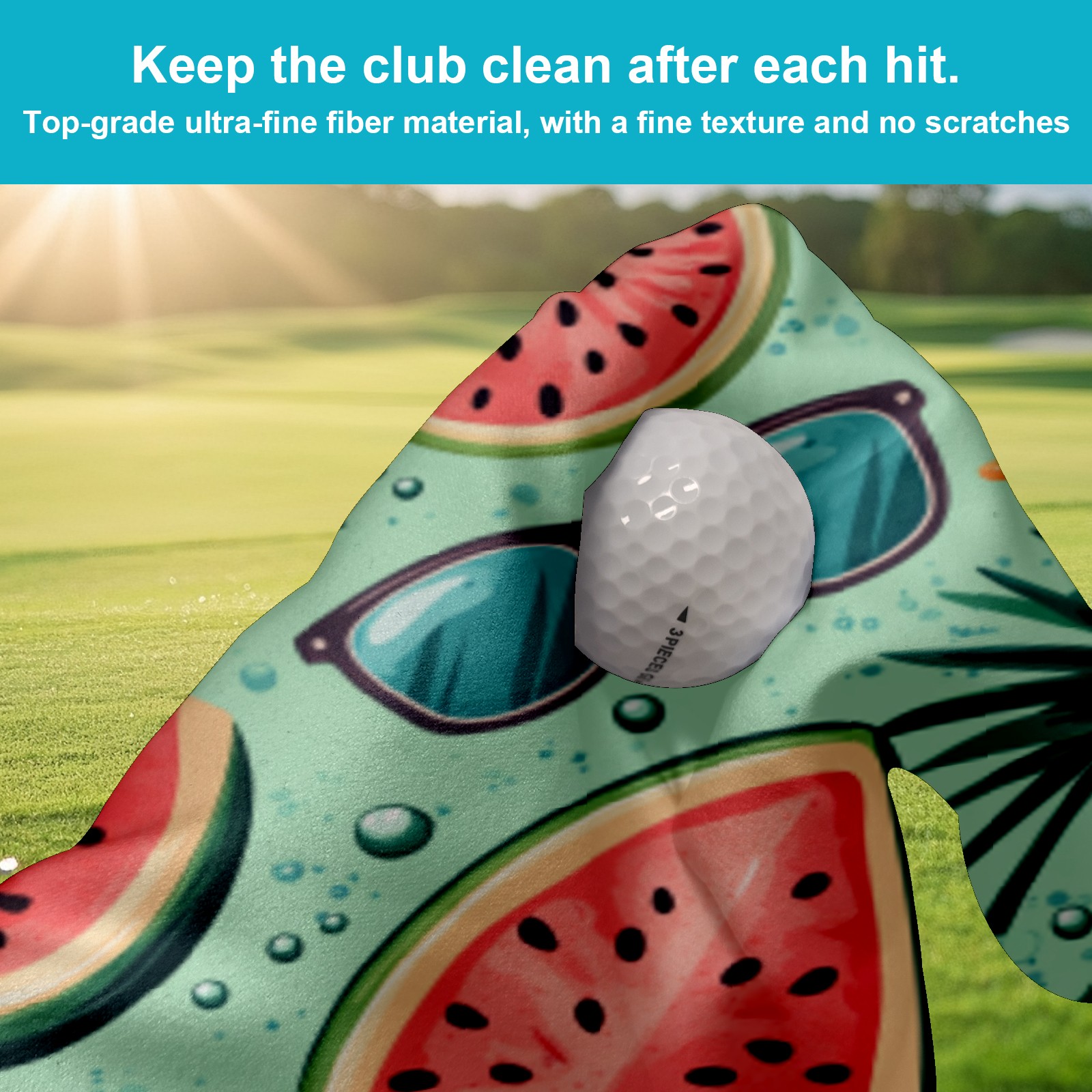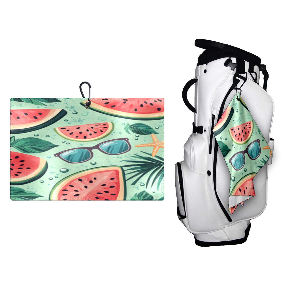 Golf Towel, Funny Printed Fast Drying Towel for Golf Bags with Clip, Golf Gift for Men Women, Birthday, Christmas Gifts Watermelon