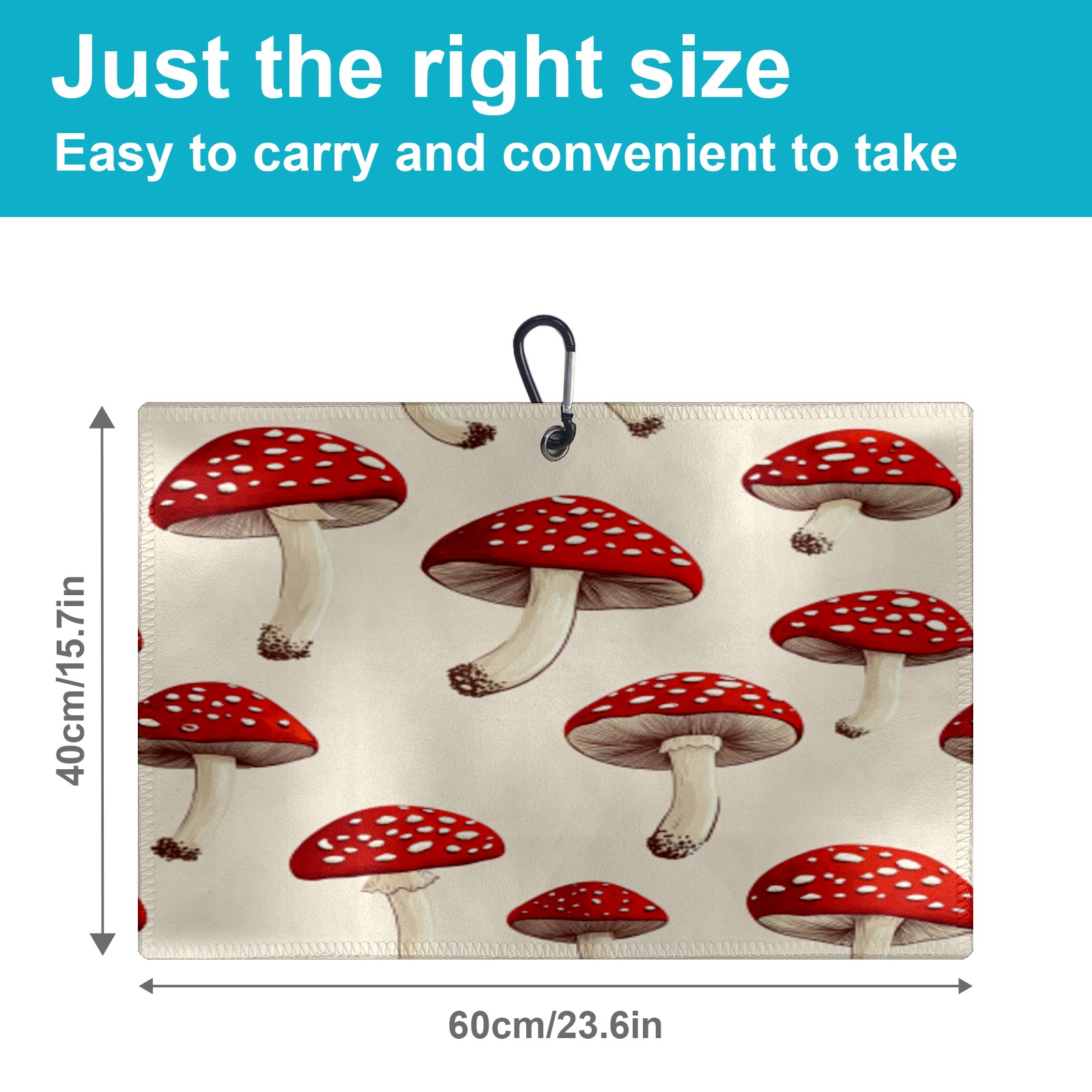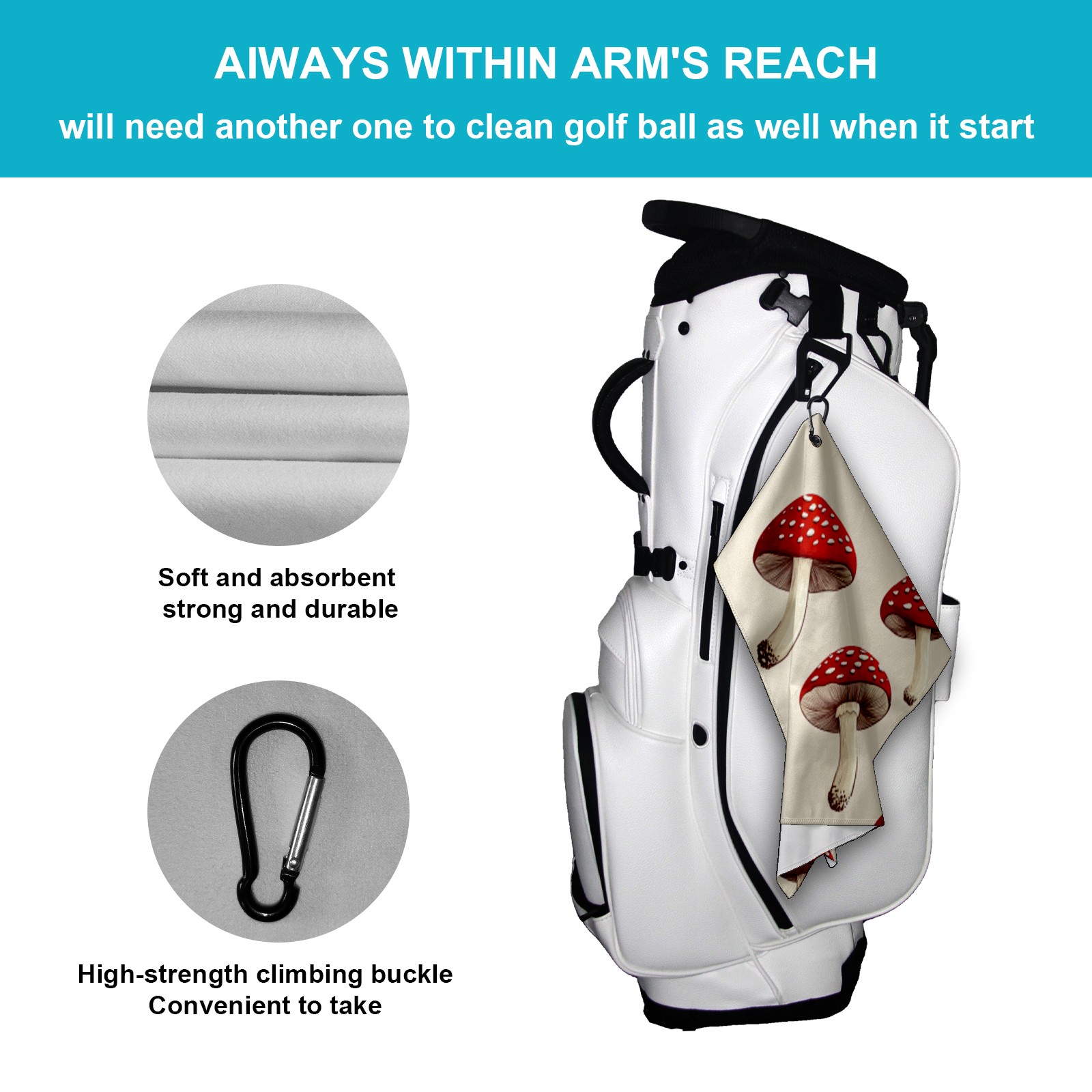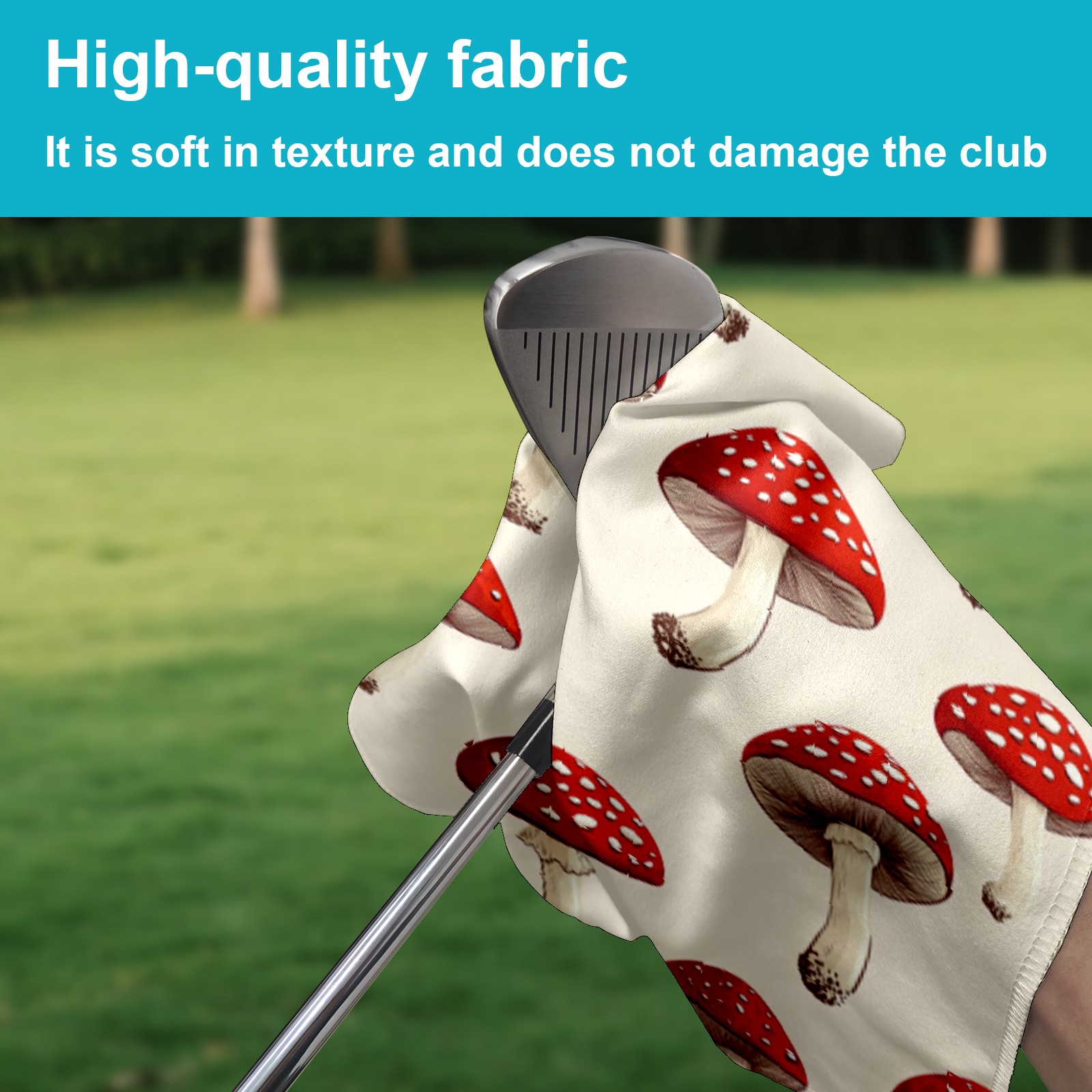 Golf Towel, Funny Printed Fast Drying Towel for Golf Bags with Clip, Golf Gift for Men Women, Birthday, Christmas Gifts Mushroom