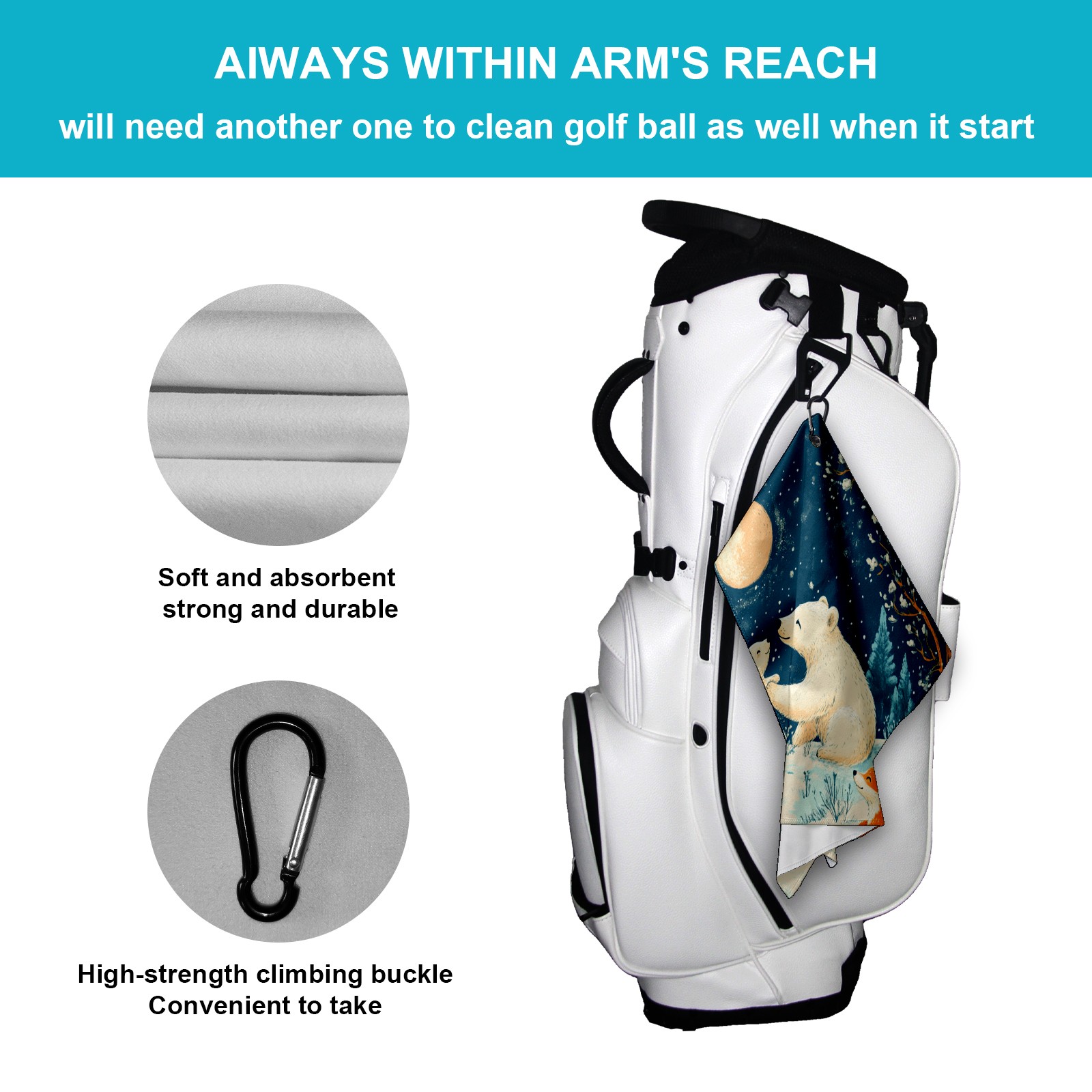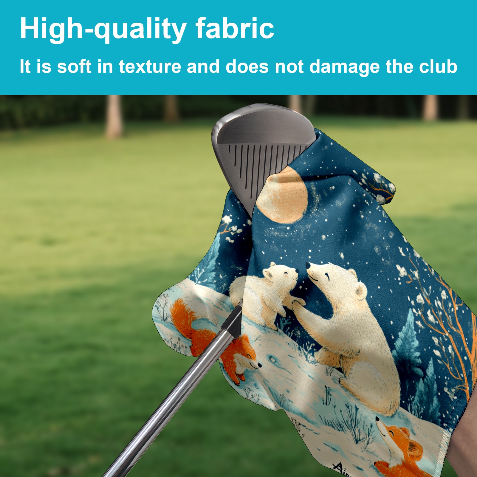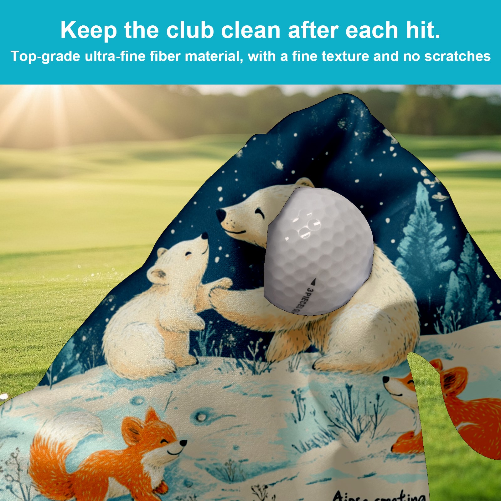 Golf Towel, Funny Printed Fast Drying Towel for Golf Bags with Clip, Golf Gift for Men Women, Birthday, Christmas Gifts Bear
