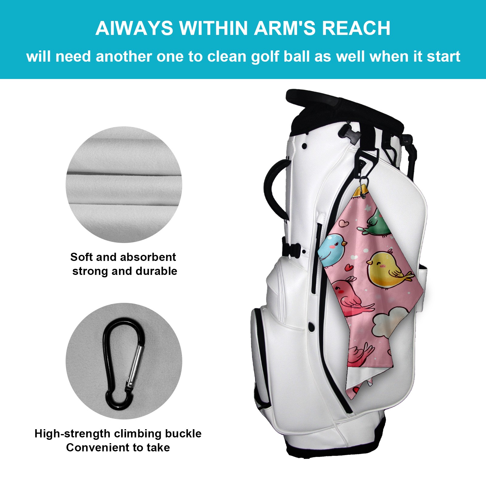 Golf Towel, Funny Printed Fast Drying Towel for Golf Bags with Clip, Golf Gift for Men Women, Birthday, Christmas Gifts Bird