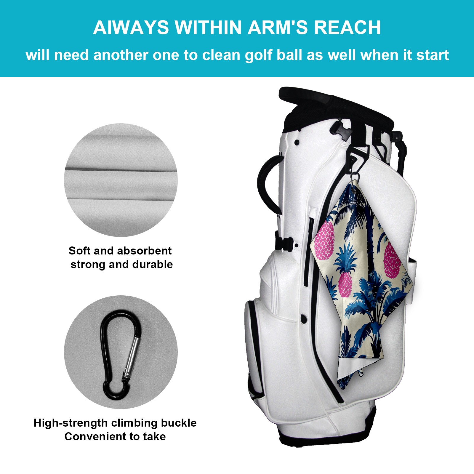 • <p>Designed to care for clubs and balls, this high performance golf towel is a compact and portable 15.7 in x 23.6 in size that cleans precisely without taking up space in your bag.&nbsp;</p> <p>The polyester material creates a dense cleaning network that absorbs dust and grass clippings and removes divot stains in a single wipe.&nbsp;</p> <p>Durable, absorbent fabric stays fluffy through multiple washes and dries quickly when hung, eliminating damp odors. The buckle clip design attaches to the side of the bag for easy access and natural air drying while walking, keeping the towel dry and efficient at all times.&nbsp;</p> <p>Whether it's wiping the ball before teeing off or cleaning the club face on the green side, it's a practical aid for golfers who want to keep their equipment looking fresh and new.</p>