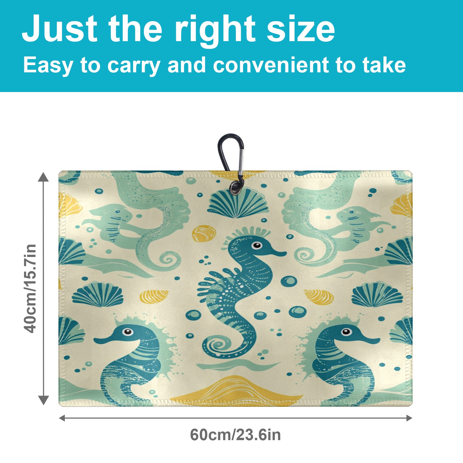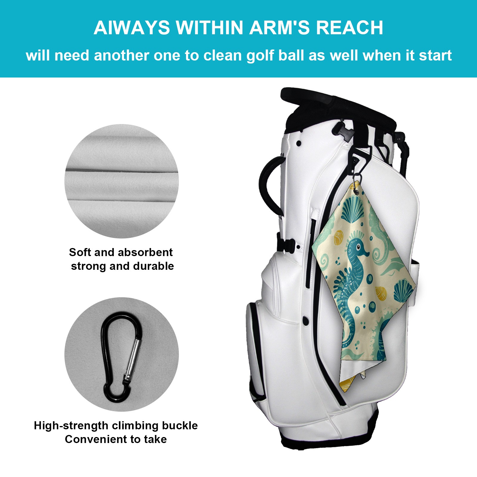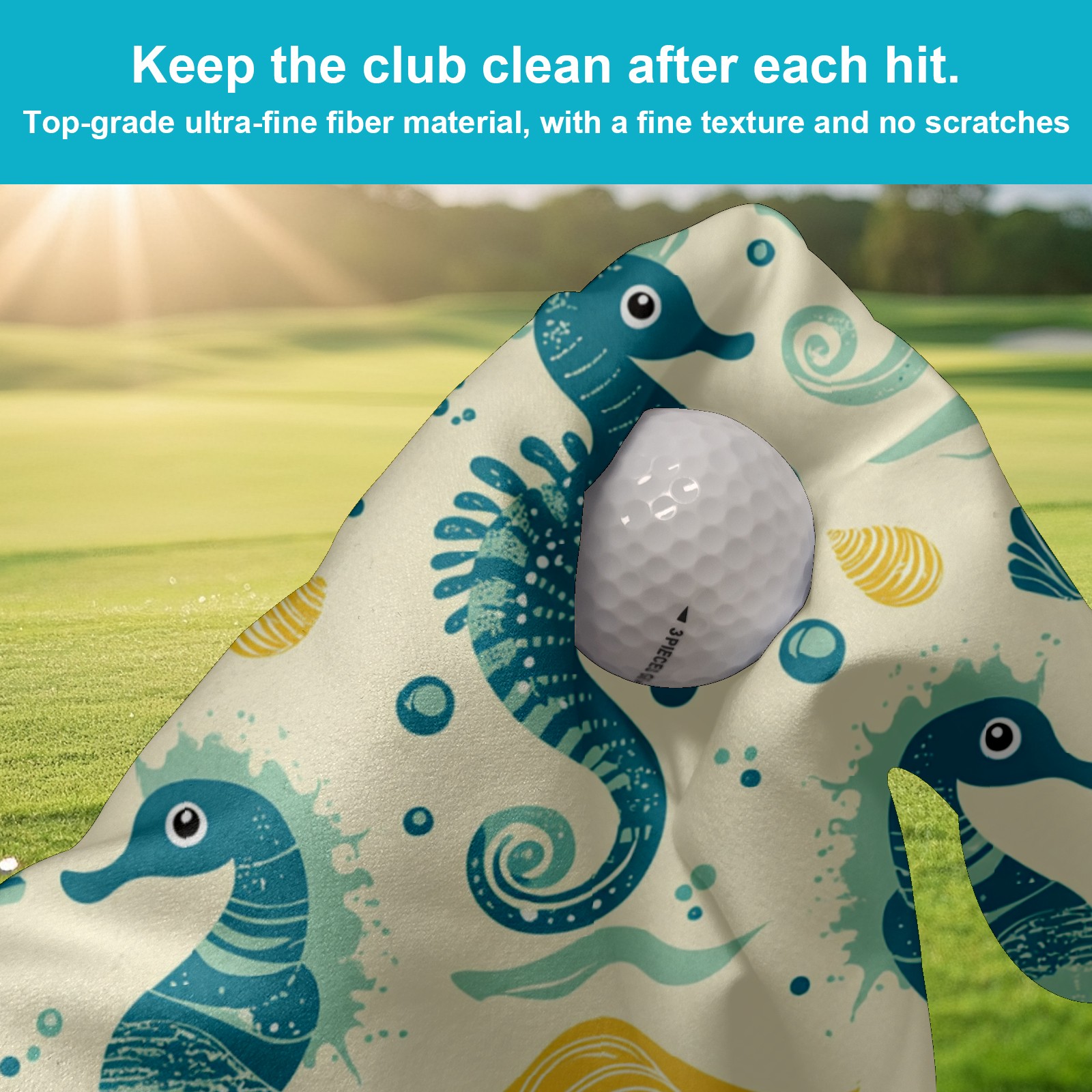 Golf Towel, Funny Printed Fast Drying Towel for Golf Bags with Clip, Golf Gift for Men Women, Birthday, Christmas Gifts Seahorse