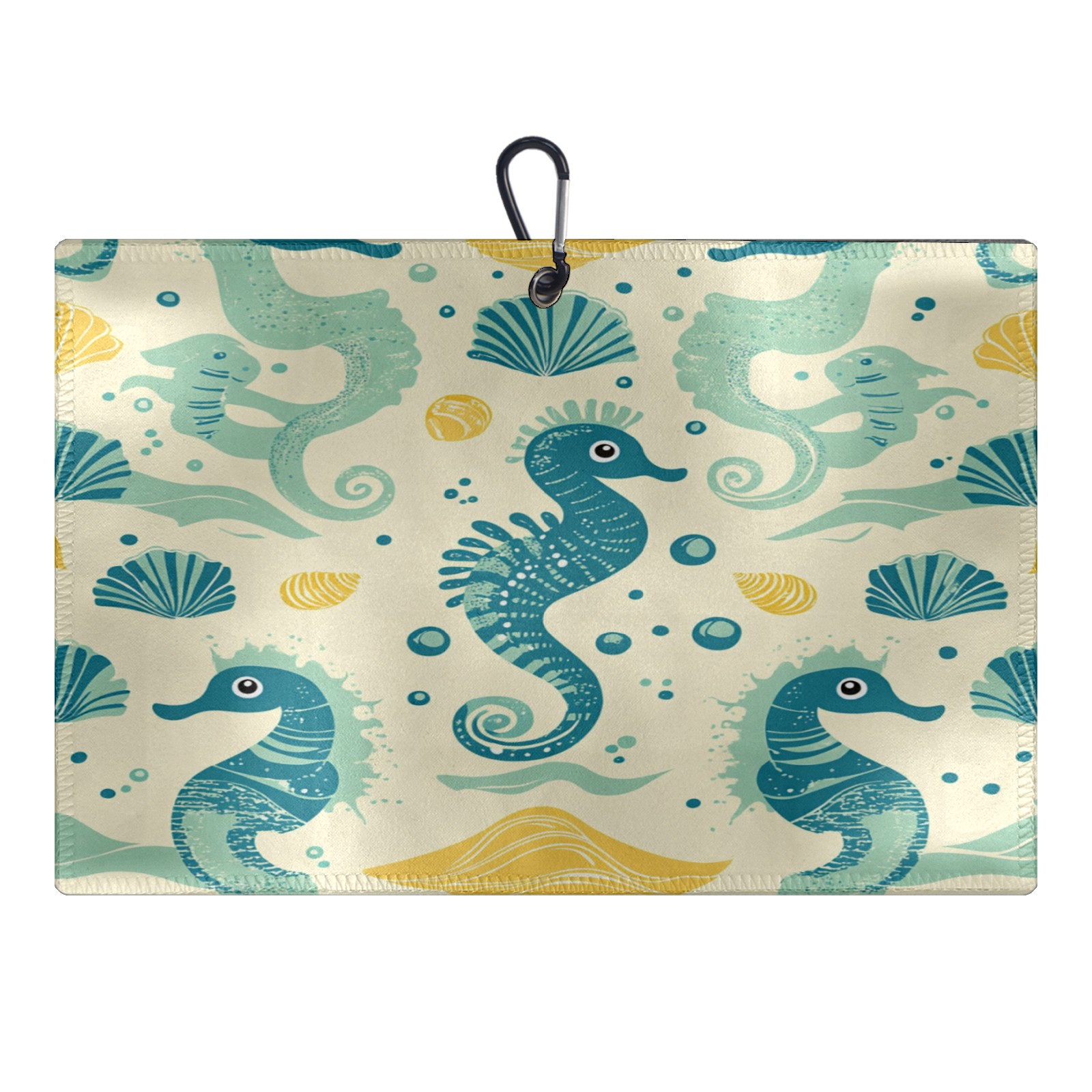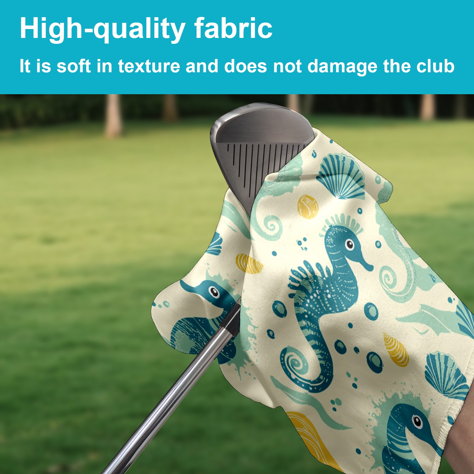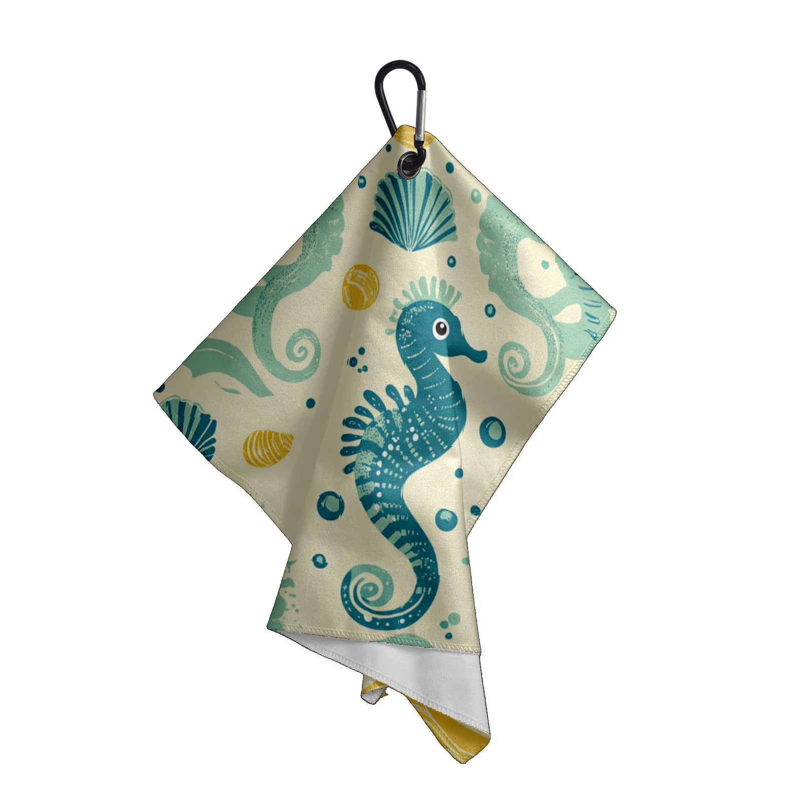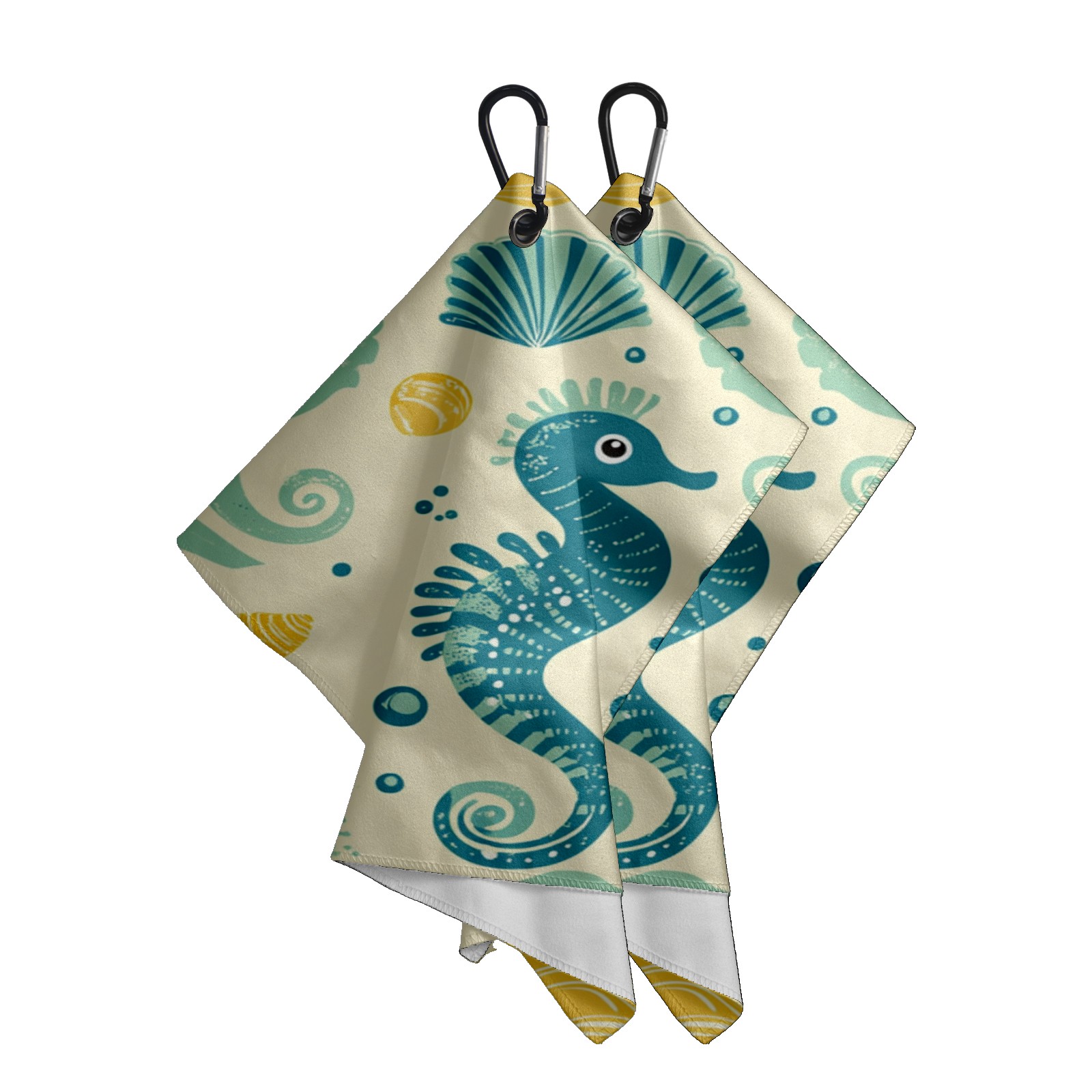 Golf Towel, Funny Printed Fast Drying Towel for Golf Bags with Clip, Golf Gift for Men Women, Birthday, Christmas Gifts Seahorse