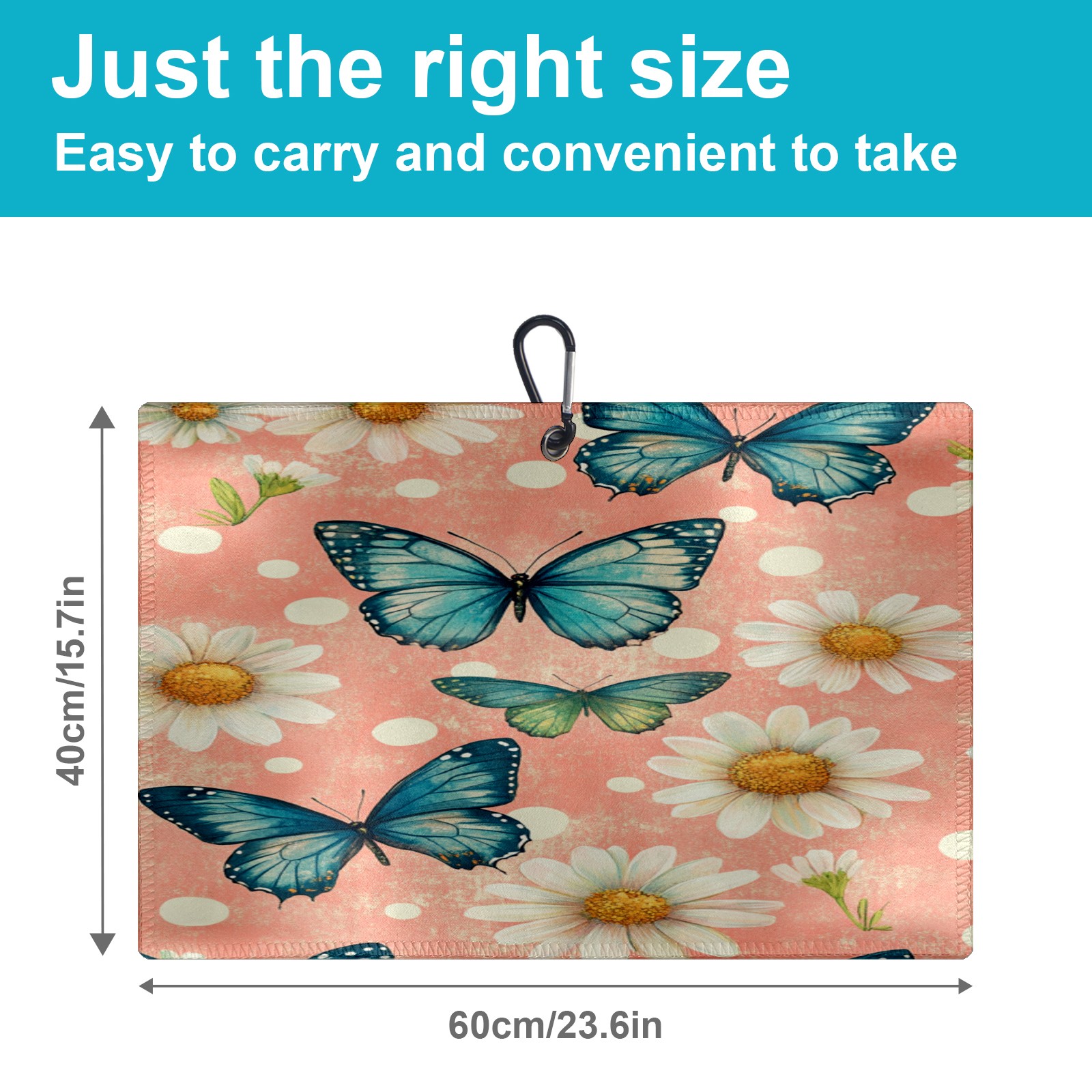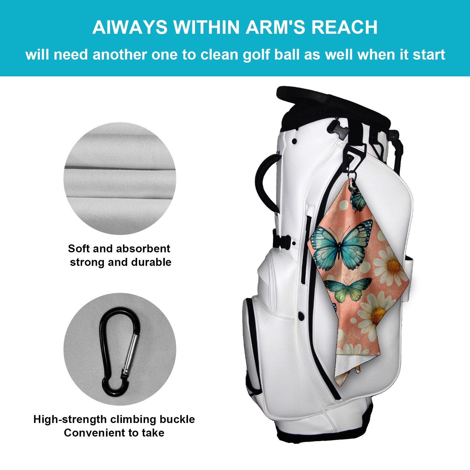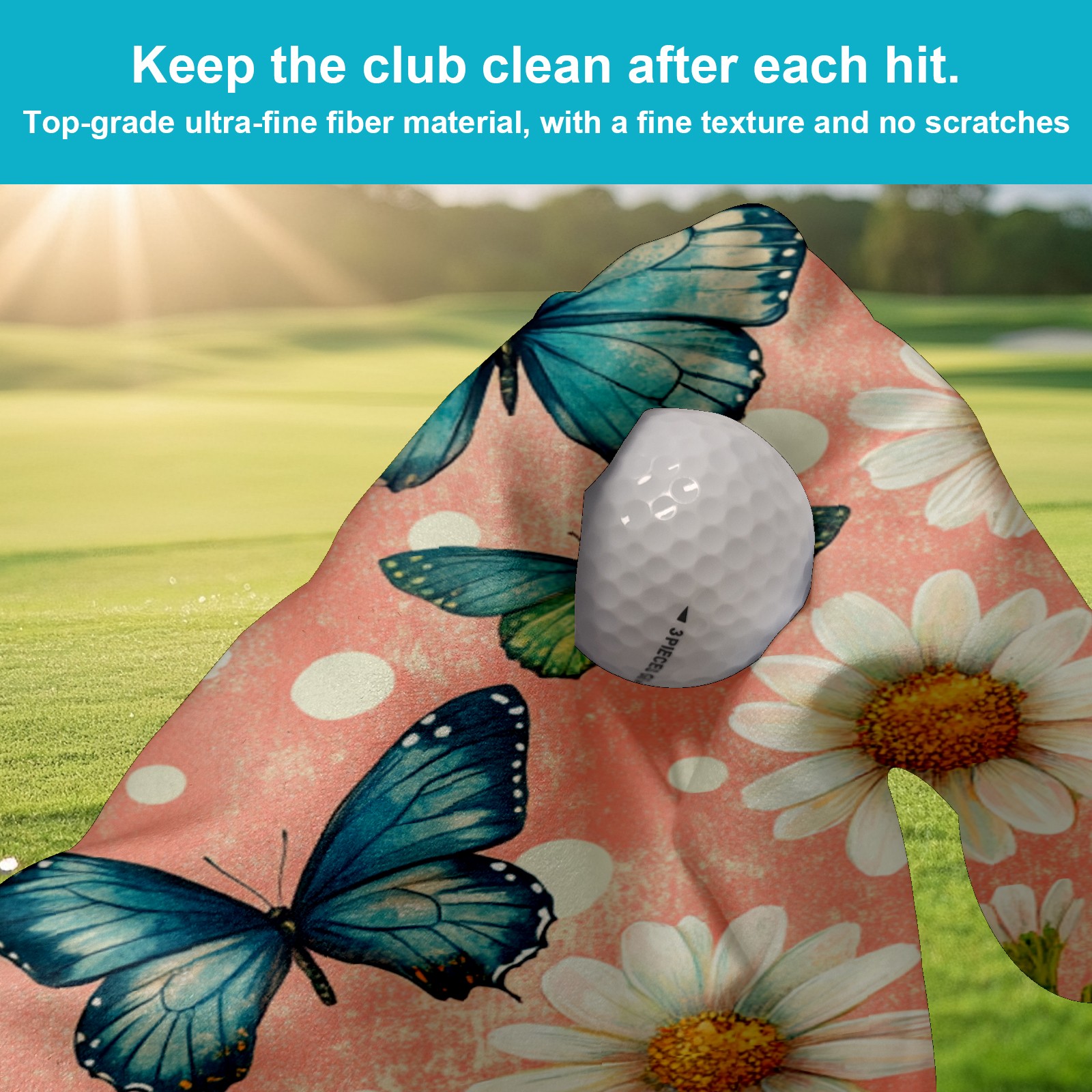Golf Towel, Funny Printed Fast Drying Towel for Golf Bags with Clip, Golf Gift for Men Women, Birthday, Christmas Gifts Butterfly