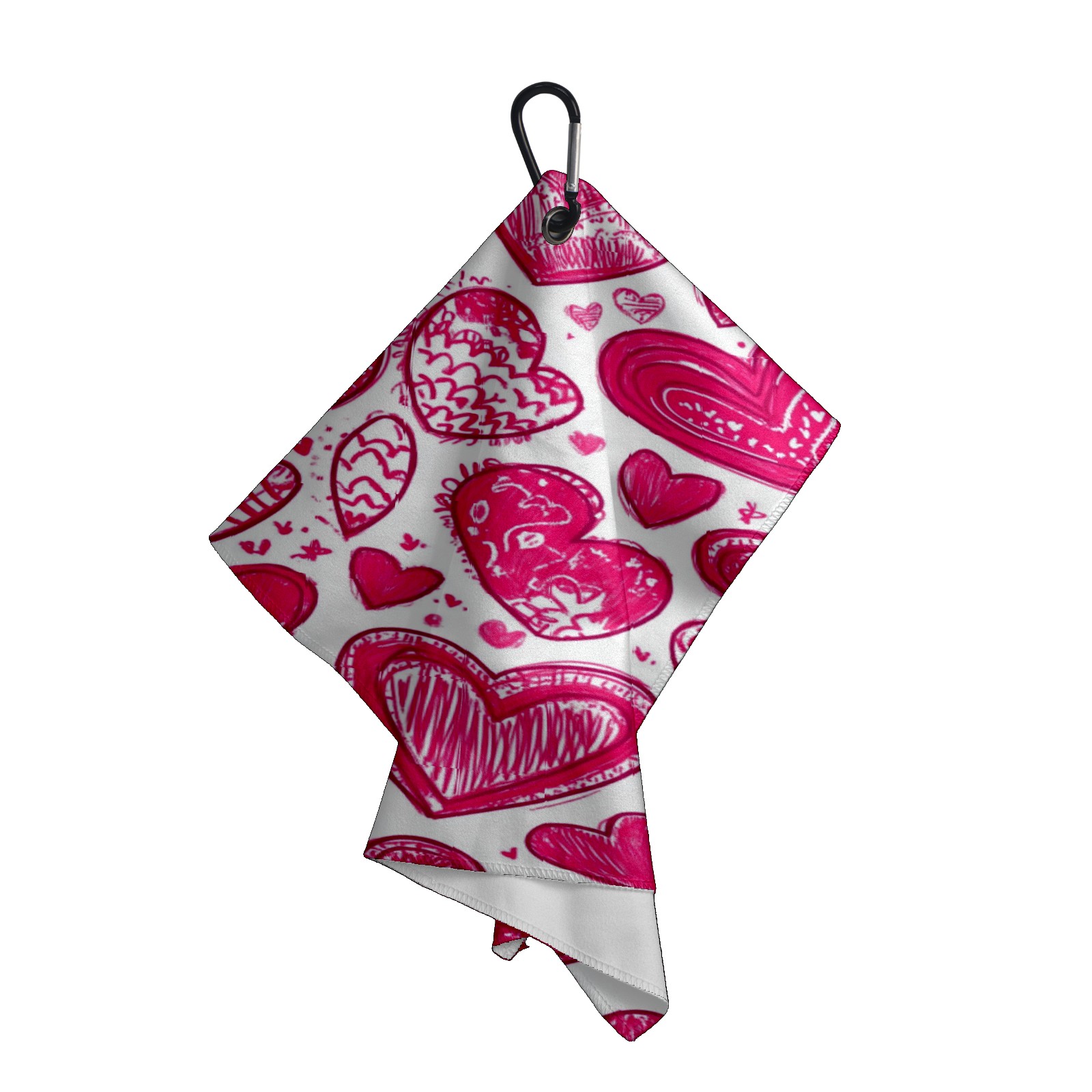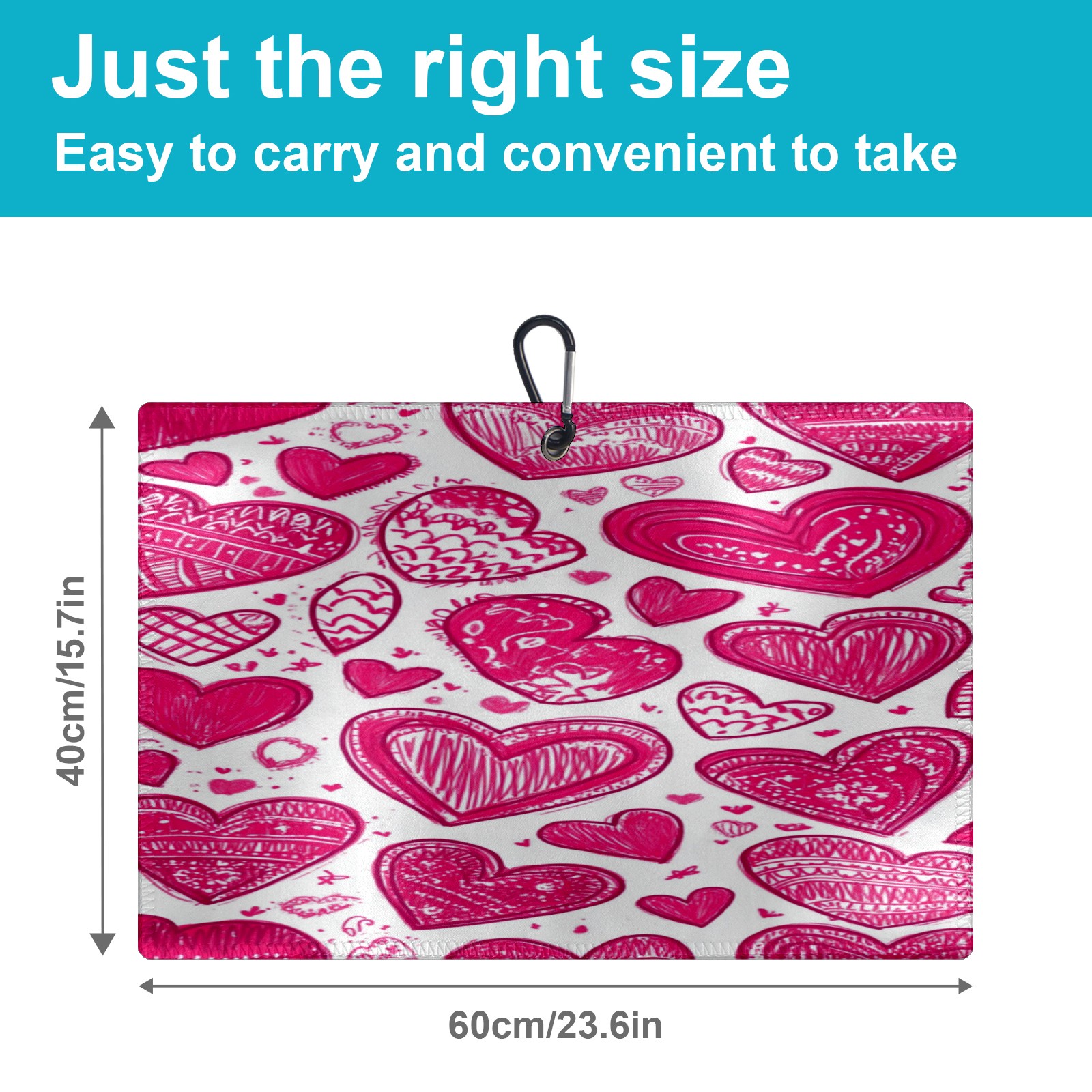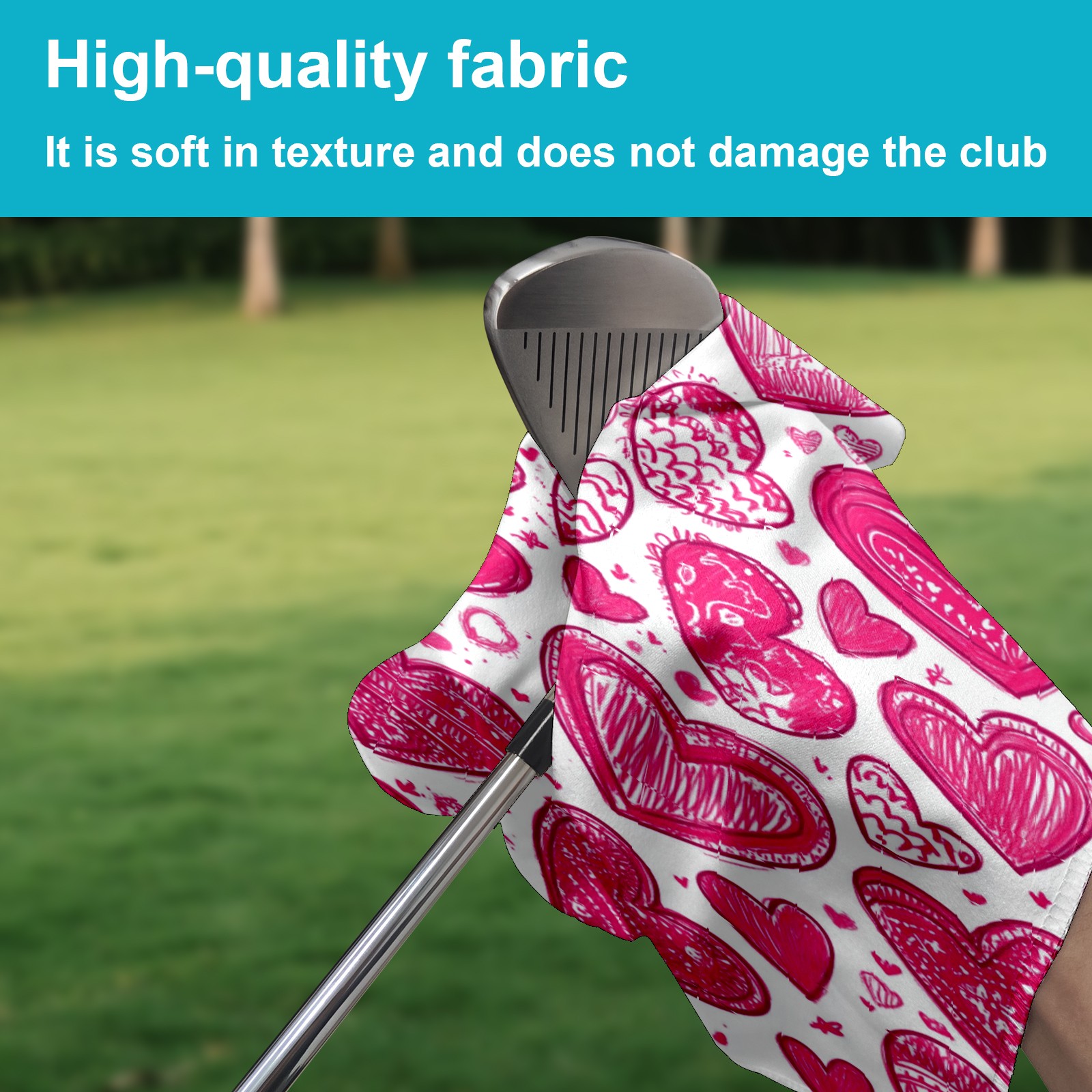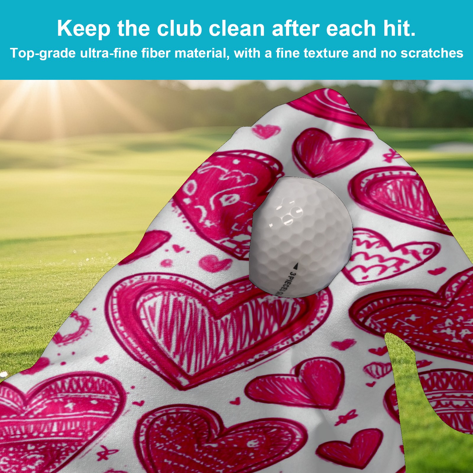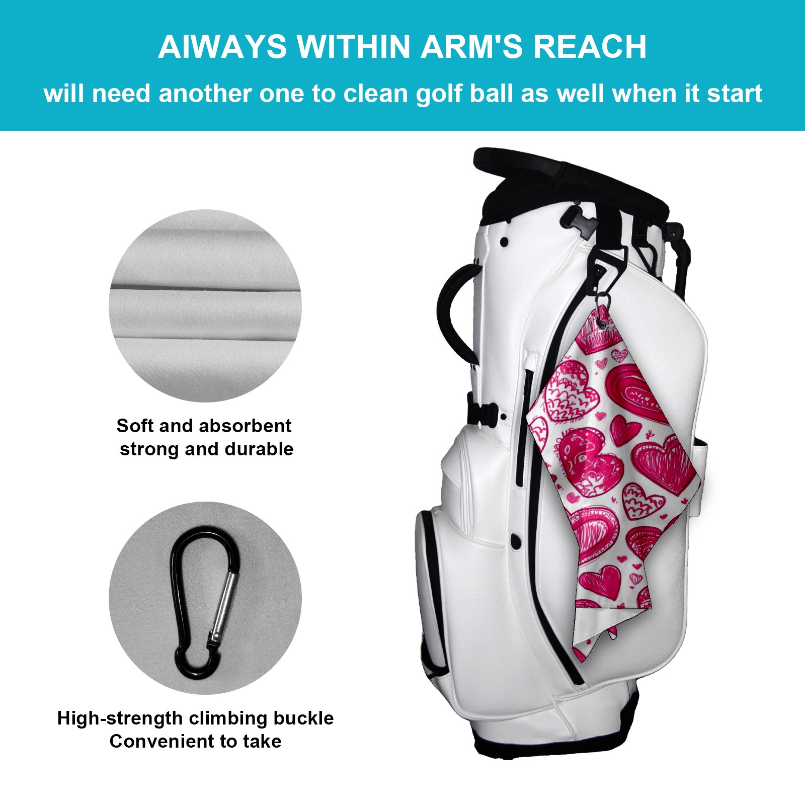 Golf Towel, Funny Printed Fast Drying Towel for Golf Bags with Clip, Golf Gift for Men Women, Birthday, Christmas Gifts Heart