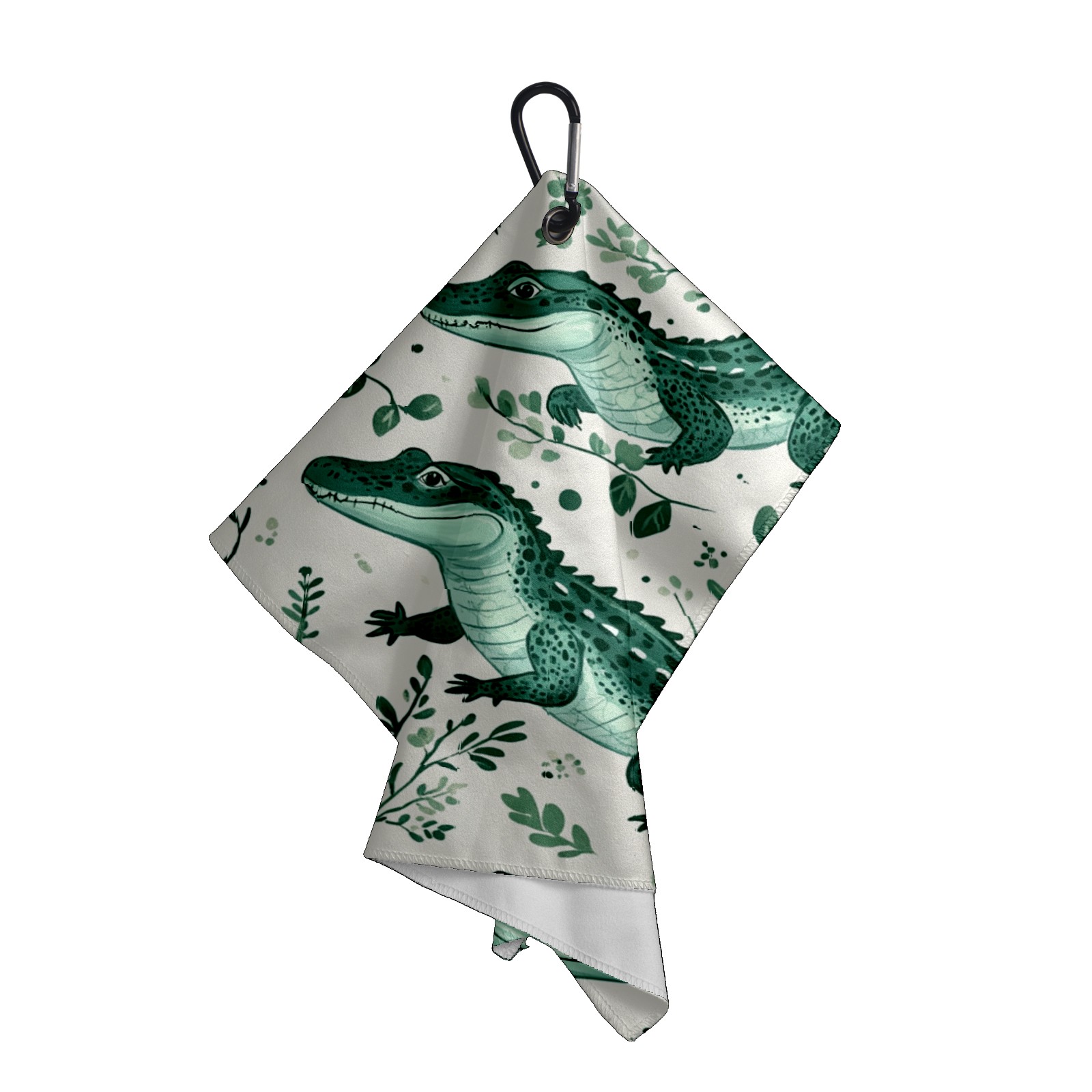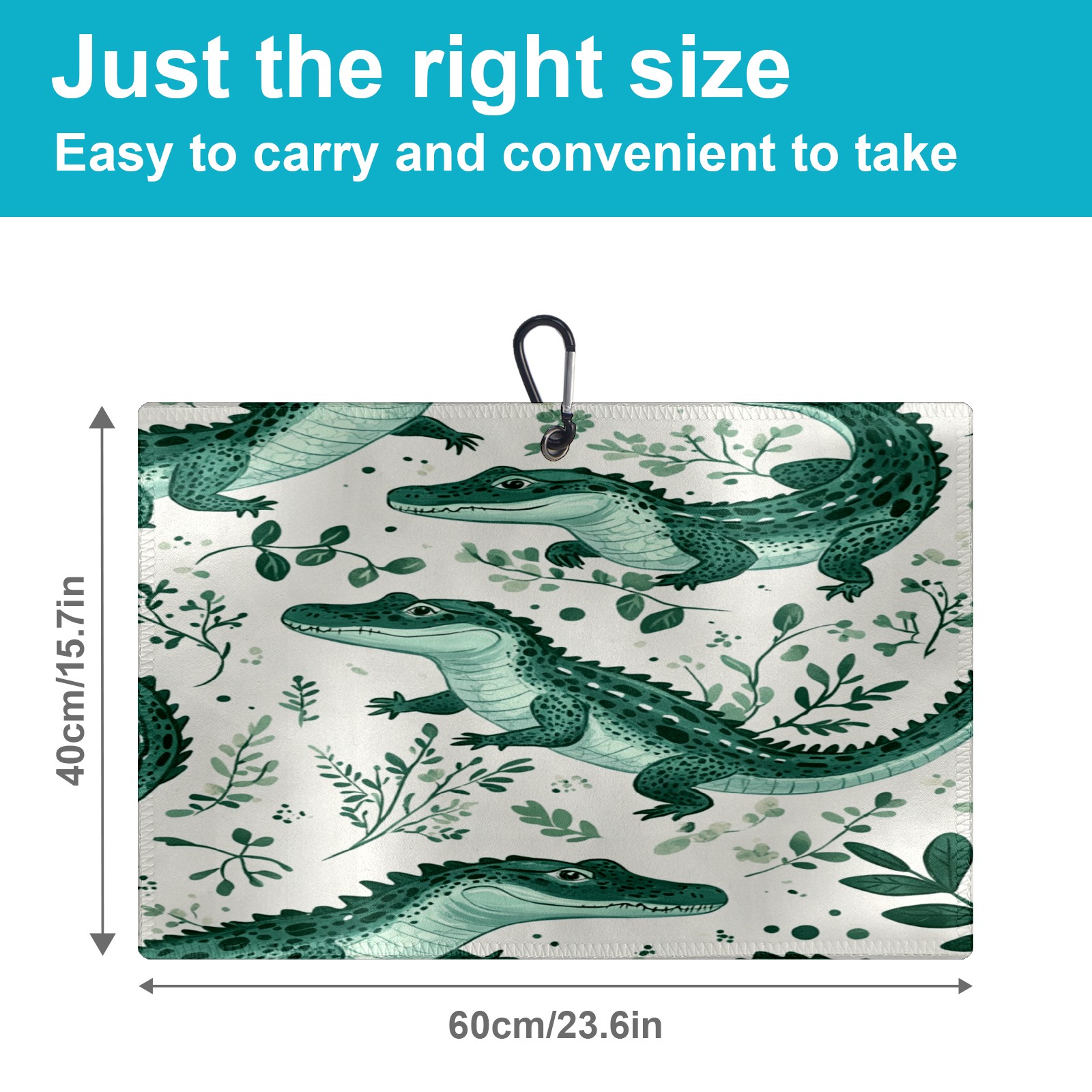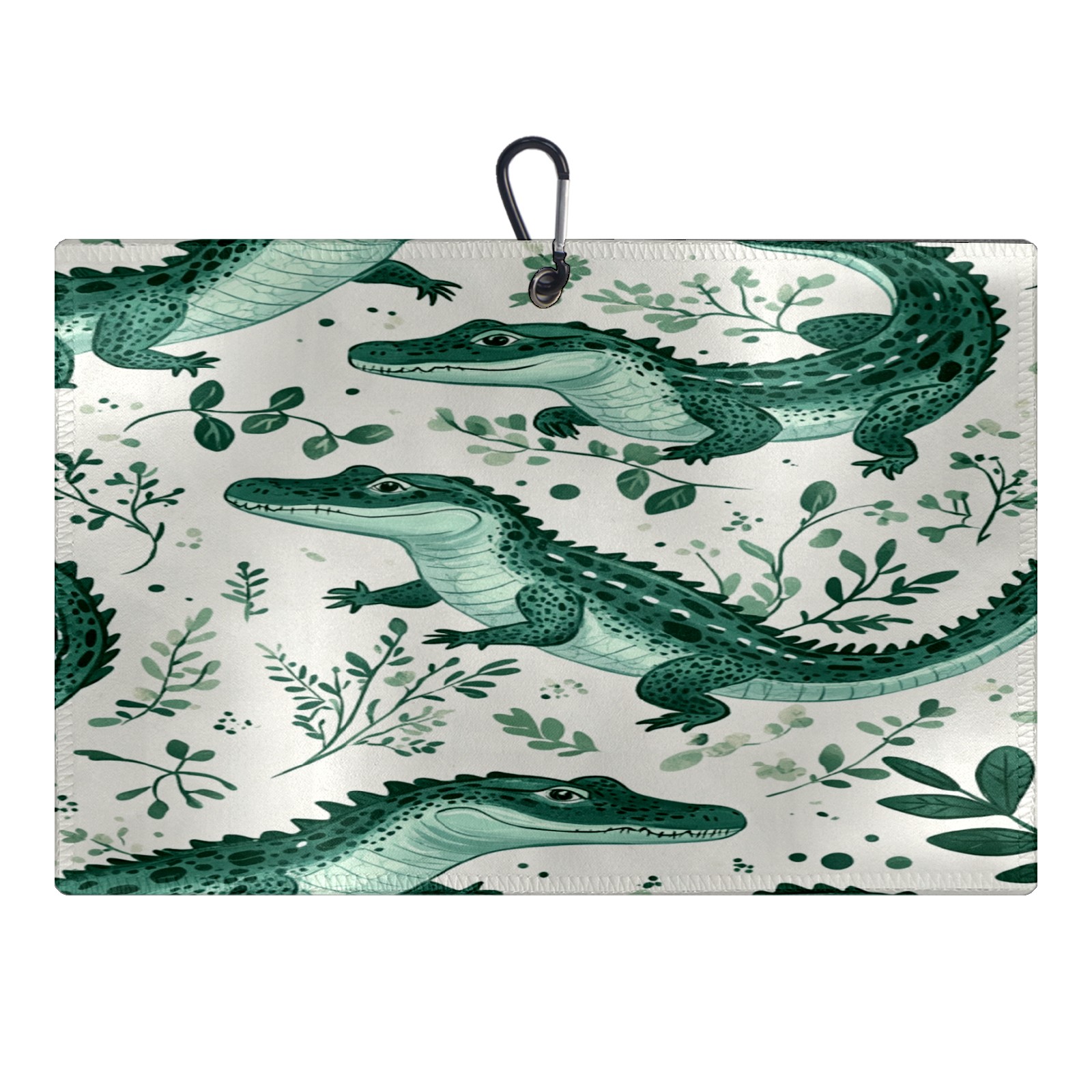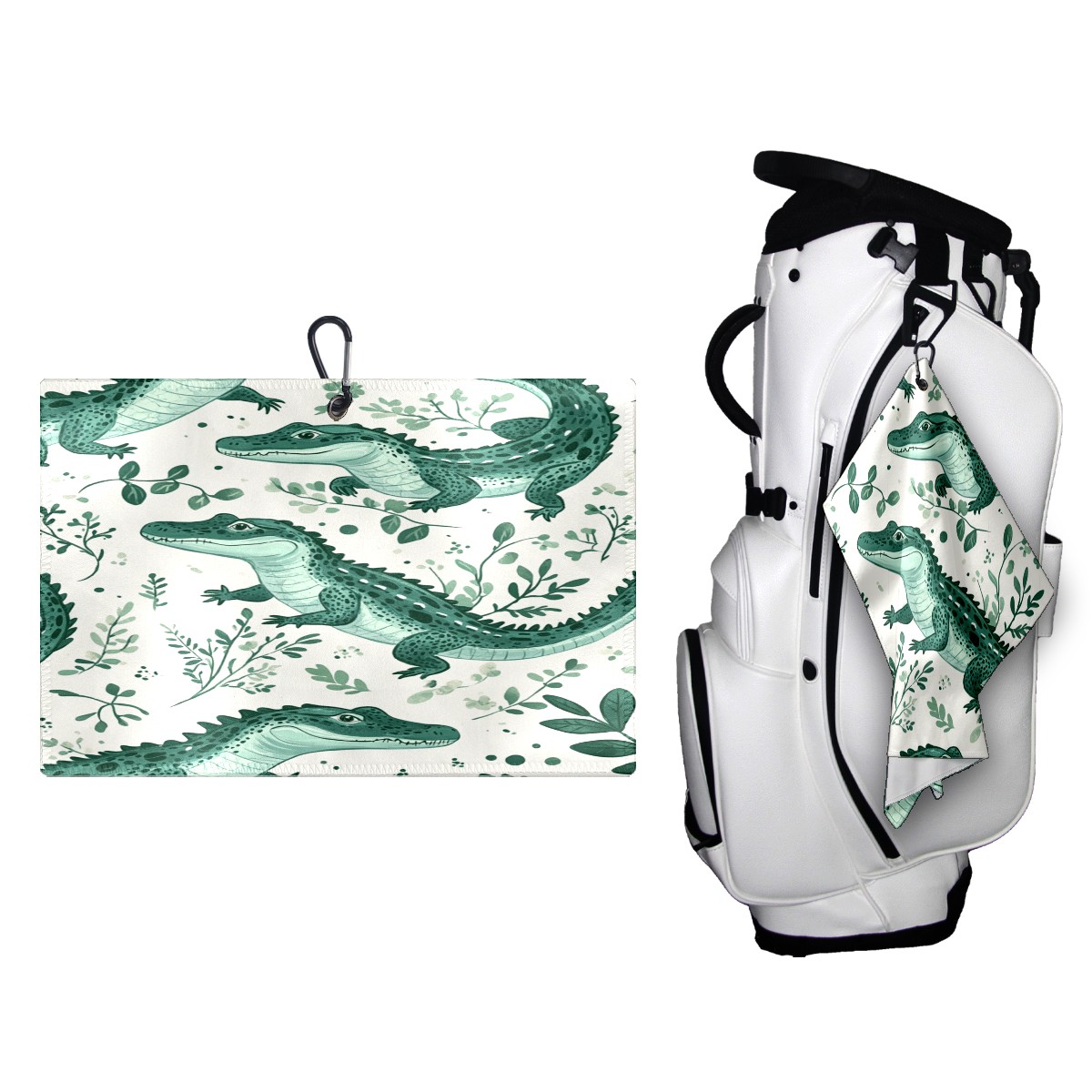 Golf Towel, Funny Printed Fast Drying Towel for Golf Bags with Clip, Golf Gift for Men Women, Birthday, Christmas Gifts Pastel Green Foliage Illustration Of Alligators
