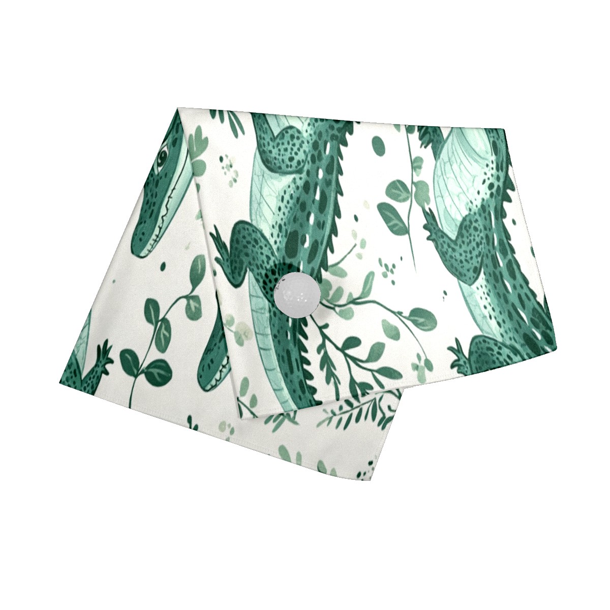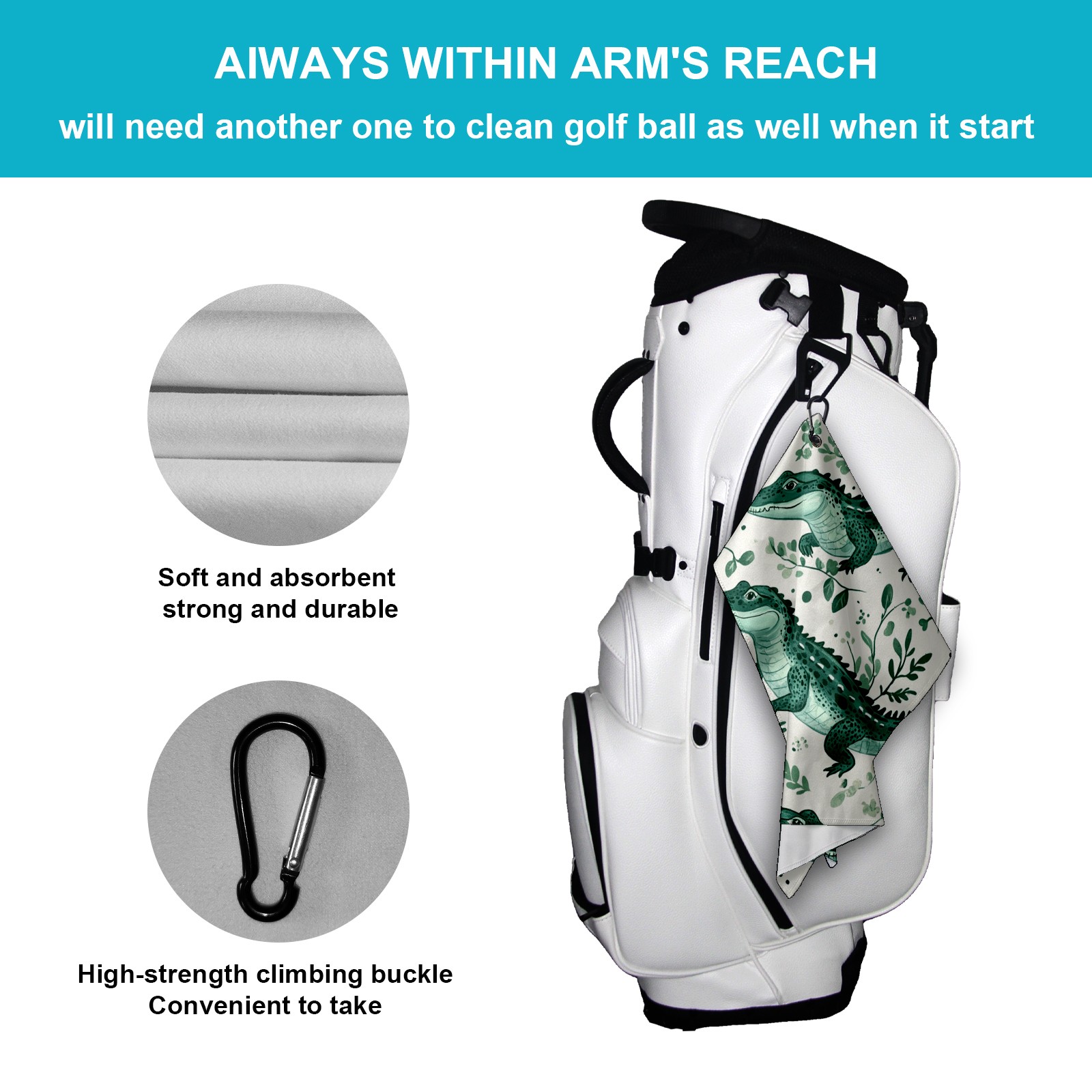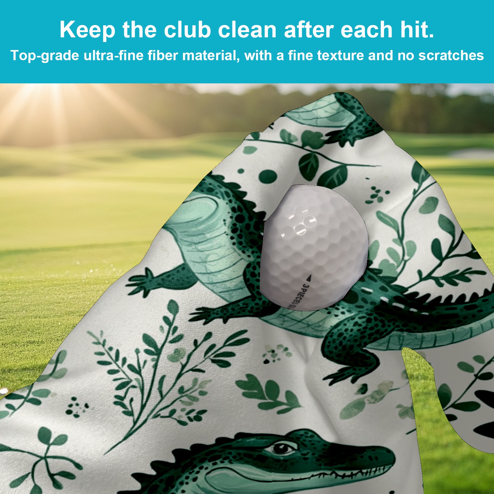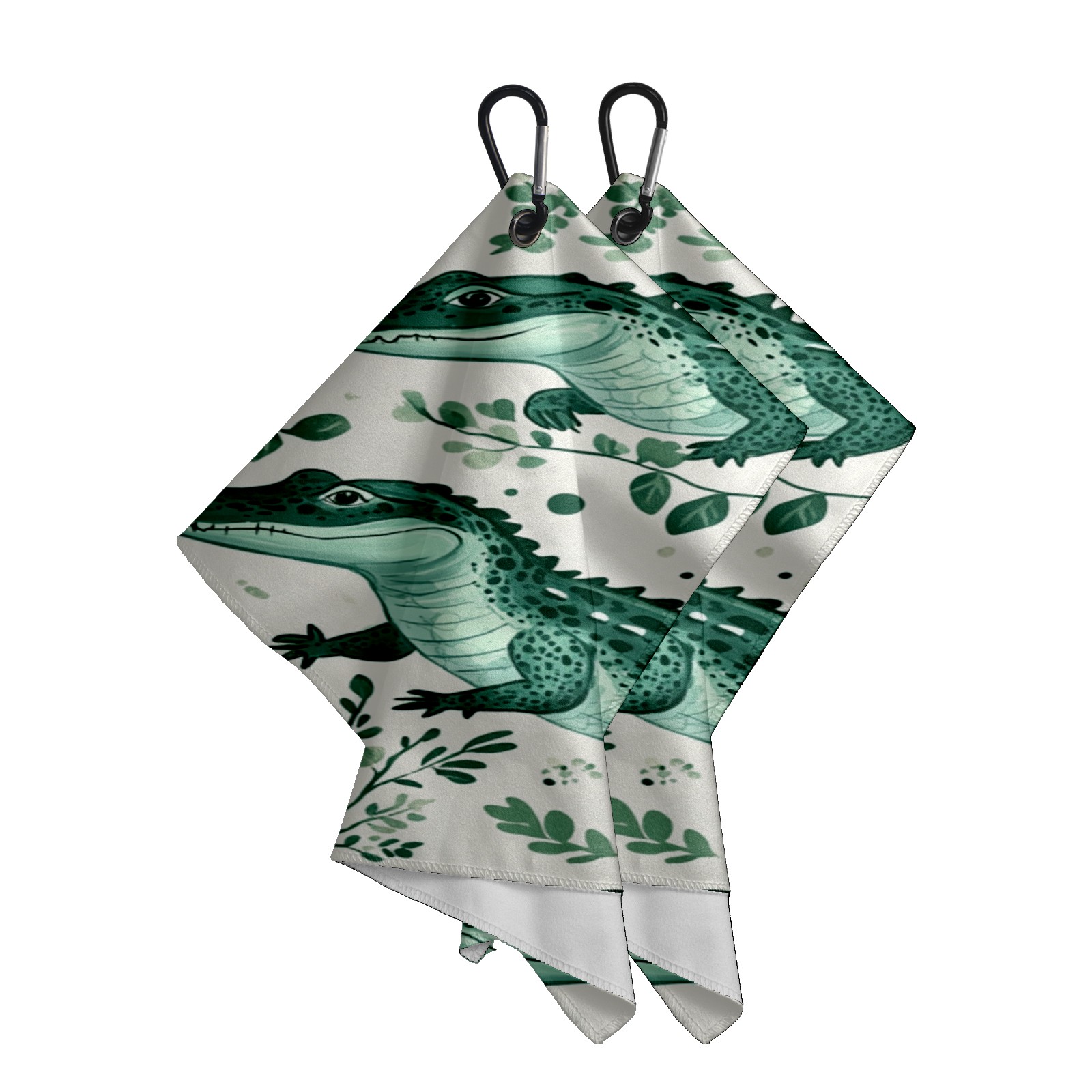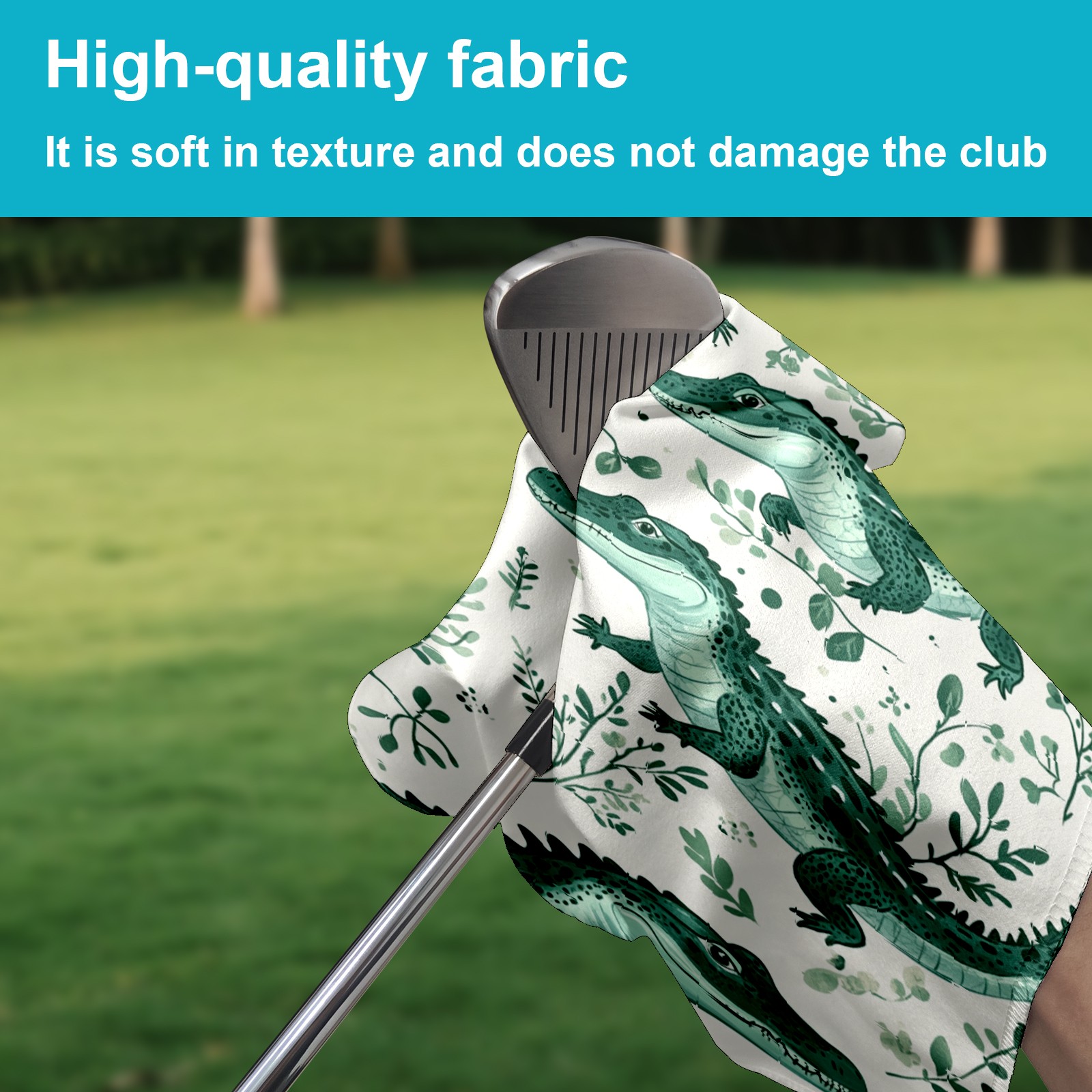 Golf Towel, Funny Printed Fast Drying Towel for Golf Bags with Clip, Golf Gift for Men Women, Birthday, Christmas Gifts Pastel Green Foliage Illustration Of Alligators