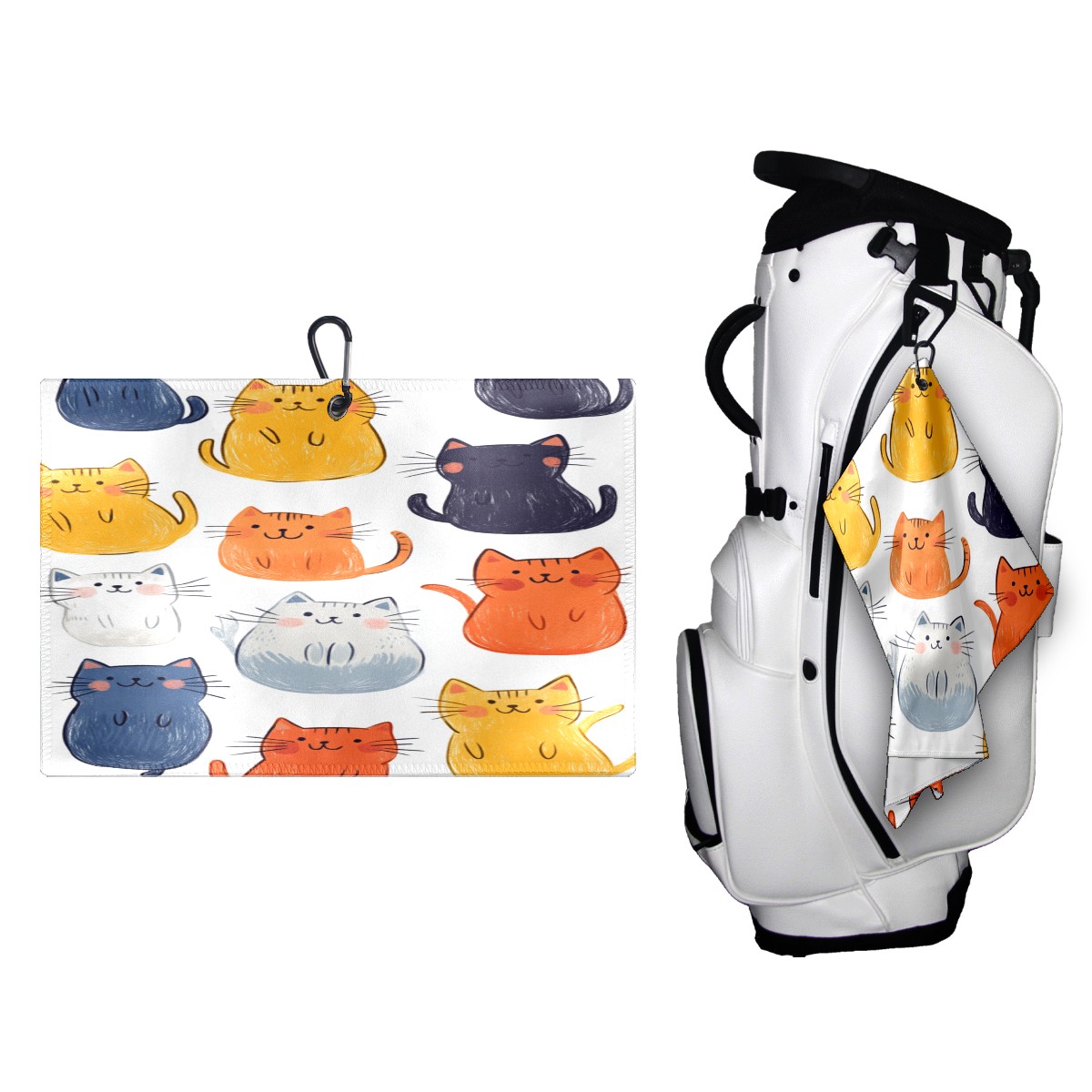 Golf Towel, Funny Printed Fast Drying Towel for Golf Bags with Clip, Golf Gift for Men Women, Birthday, Christmas Gifts Simple Line Cat