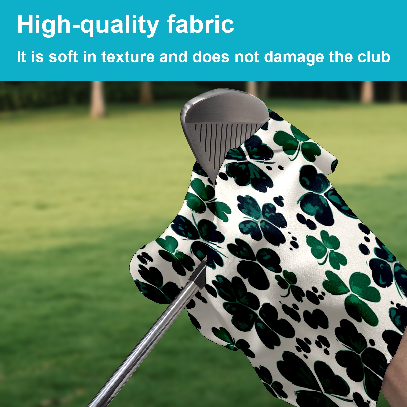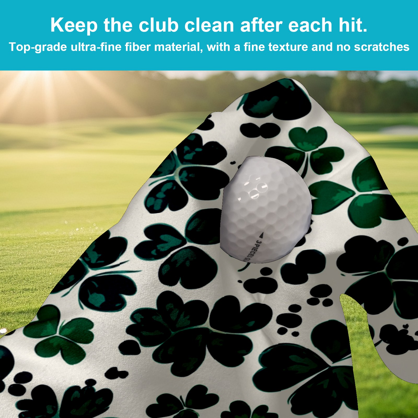 Golf Towel, Funny Printed Fast Drying Towel for Golf Bags with Clip, Golf Gift for Men Women, Birthday, Christmas Gifts Four-leaf Clover