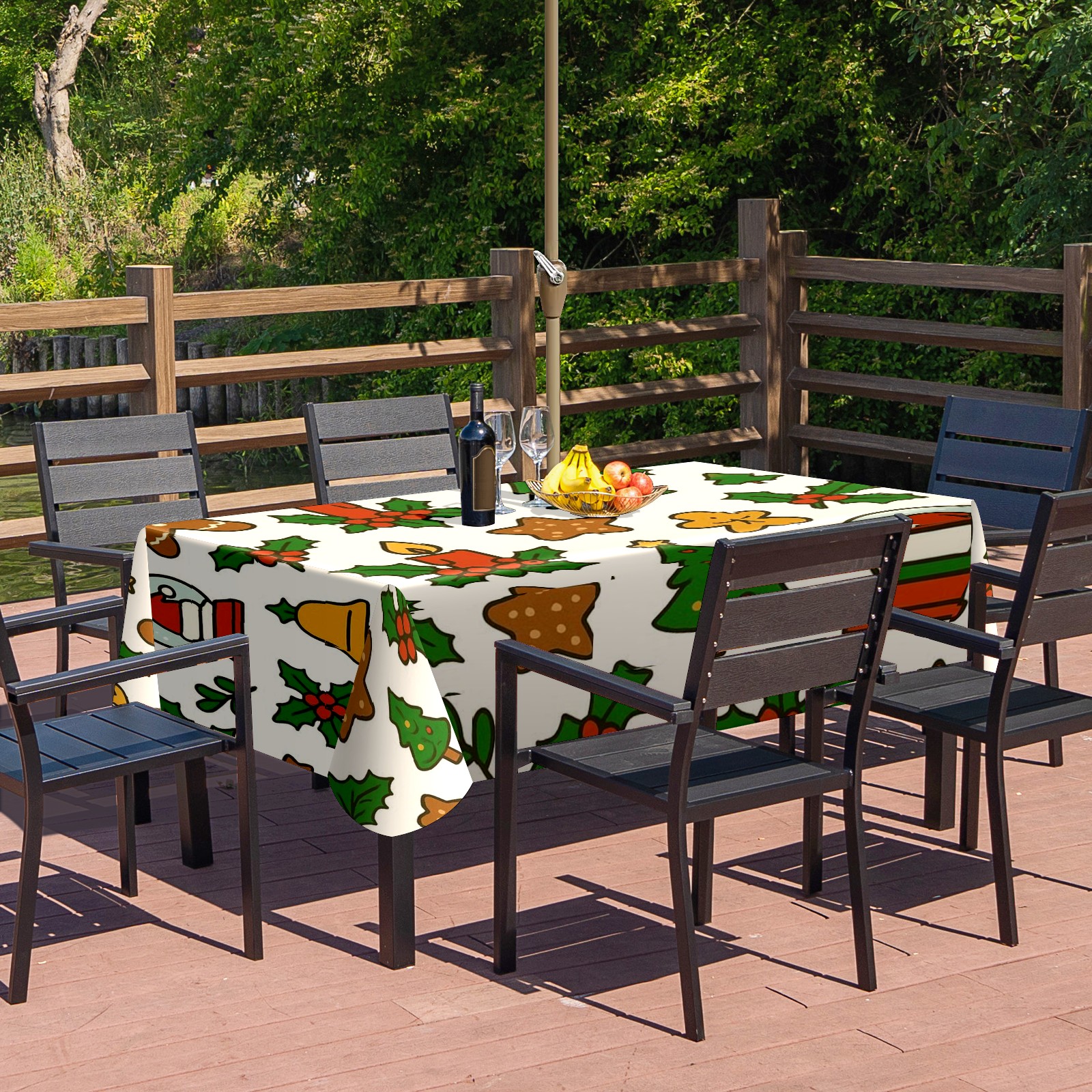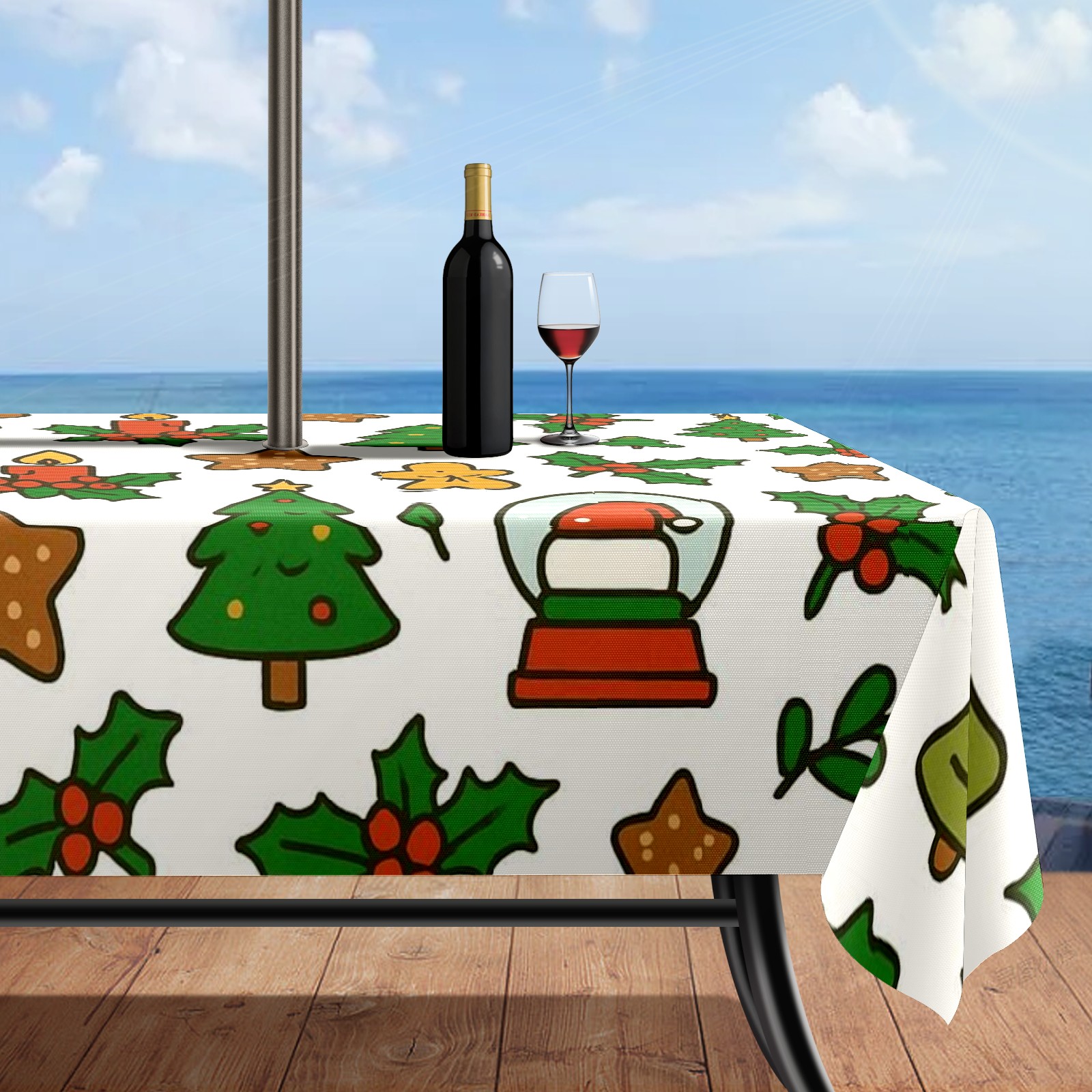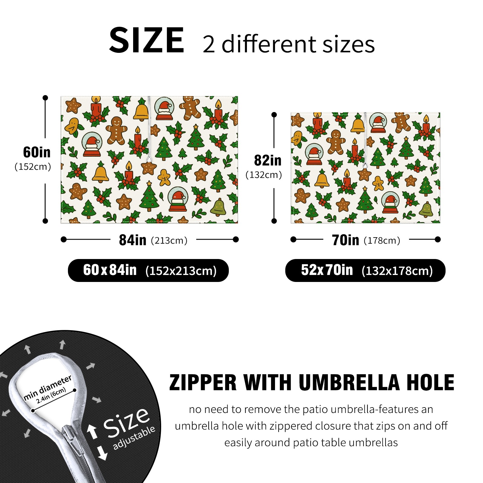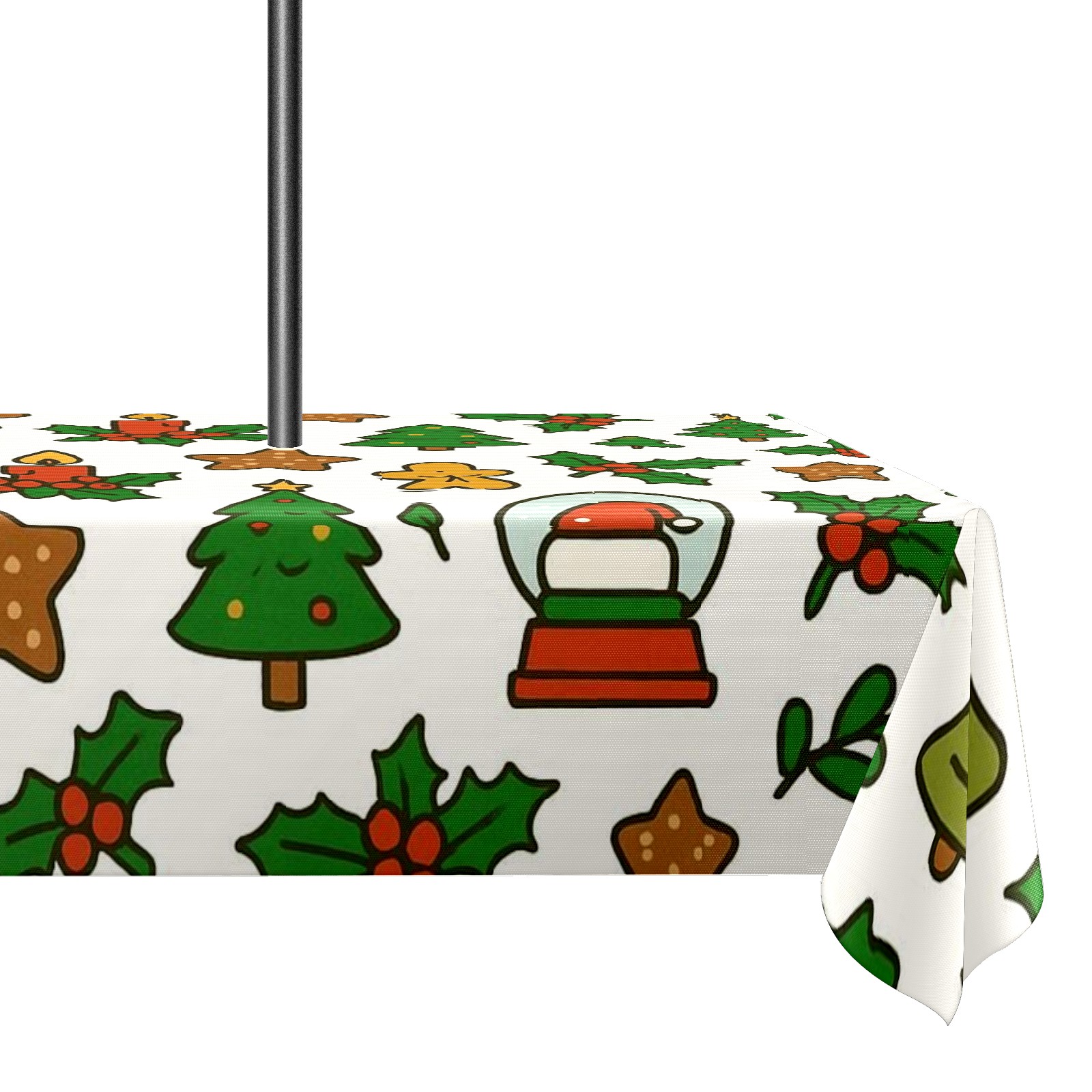 Zipper Square Tablecloth with Xmas Mix RedGreen Floral | Waterproof Outdoor Patio Cover for 6-8 Seater Table, 52x70 Inch, Easy to Clean & Setup