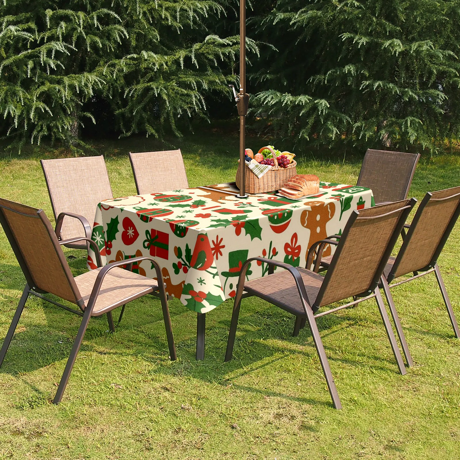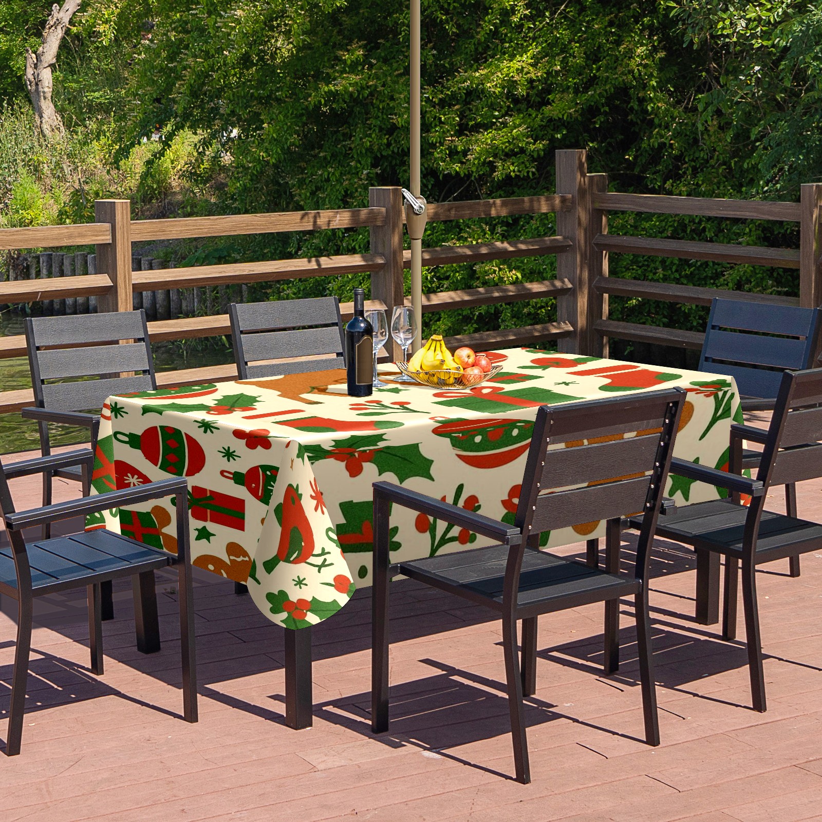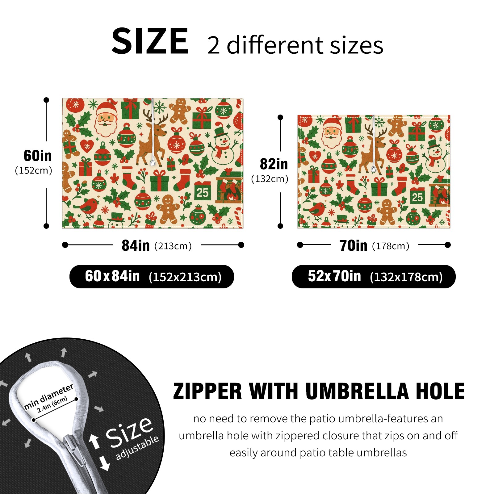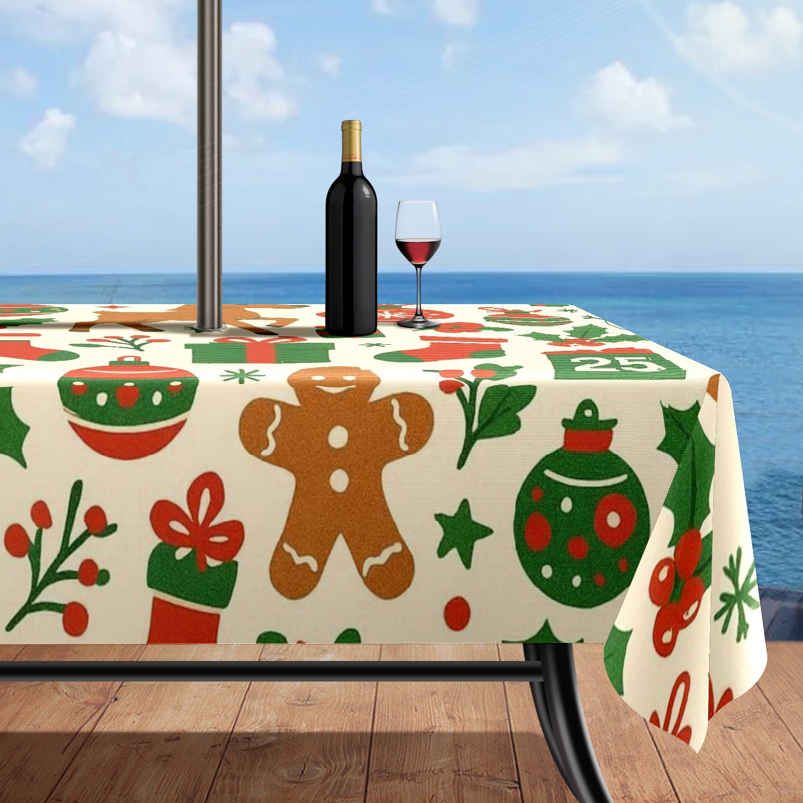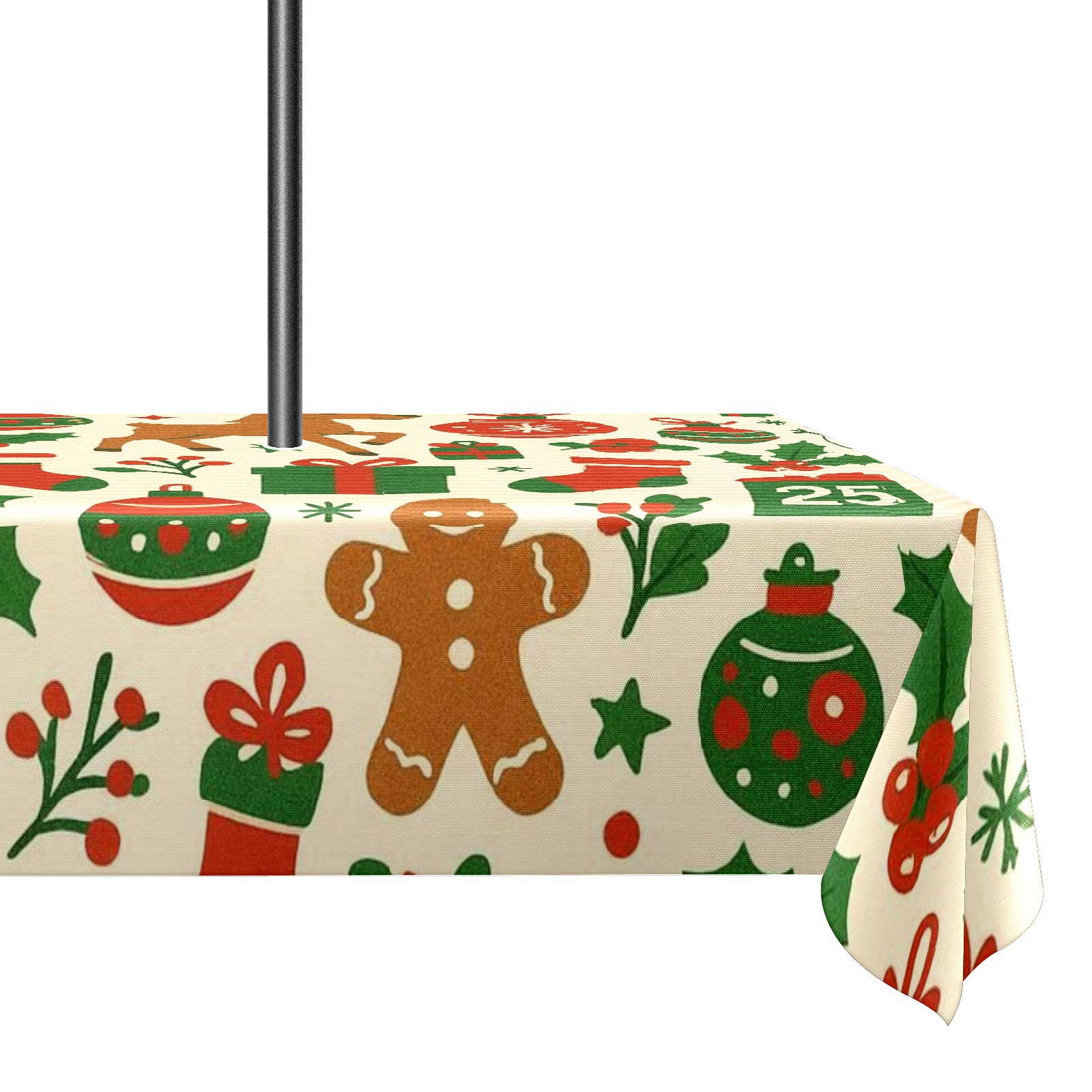 Zipper Square Tablecloth with Gingerbread Man Red Green Floral | Waterproof Outdoor Patio Cover for 6-8 Seater Table, 52x70 Inch, Easy to Clean & Setup