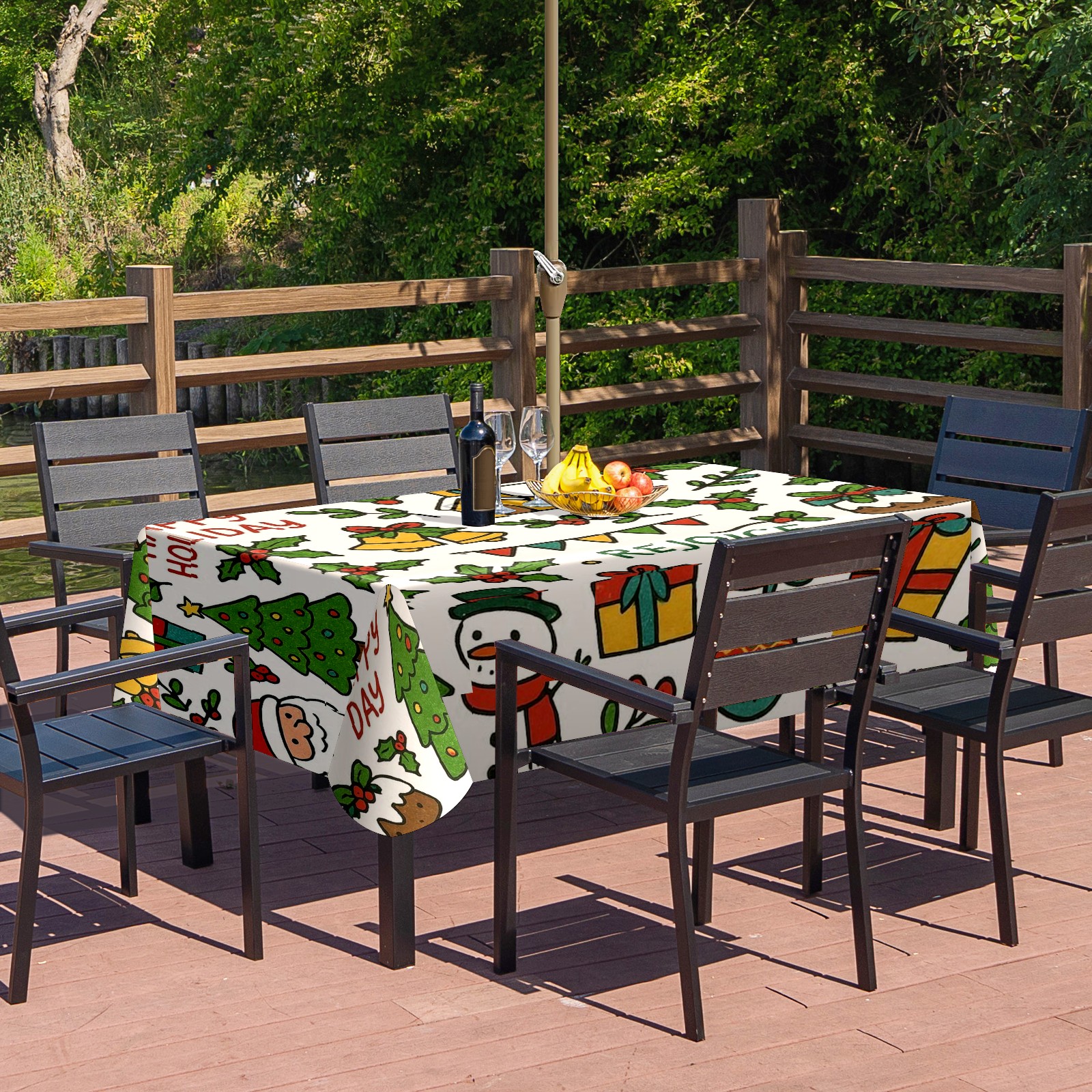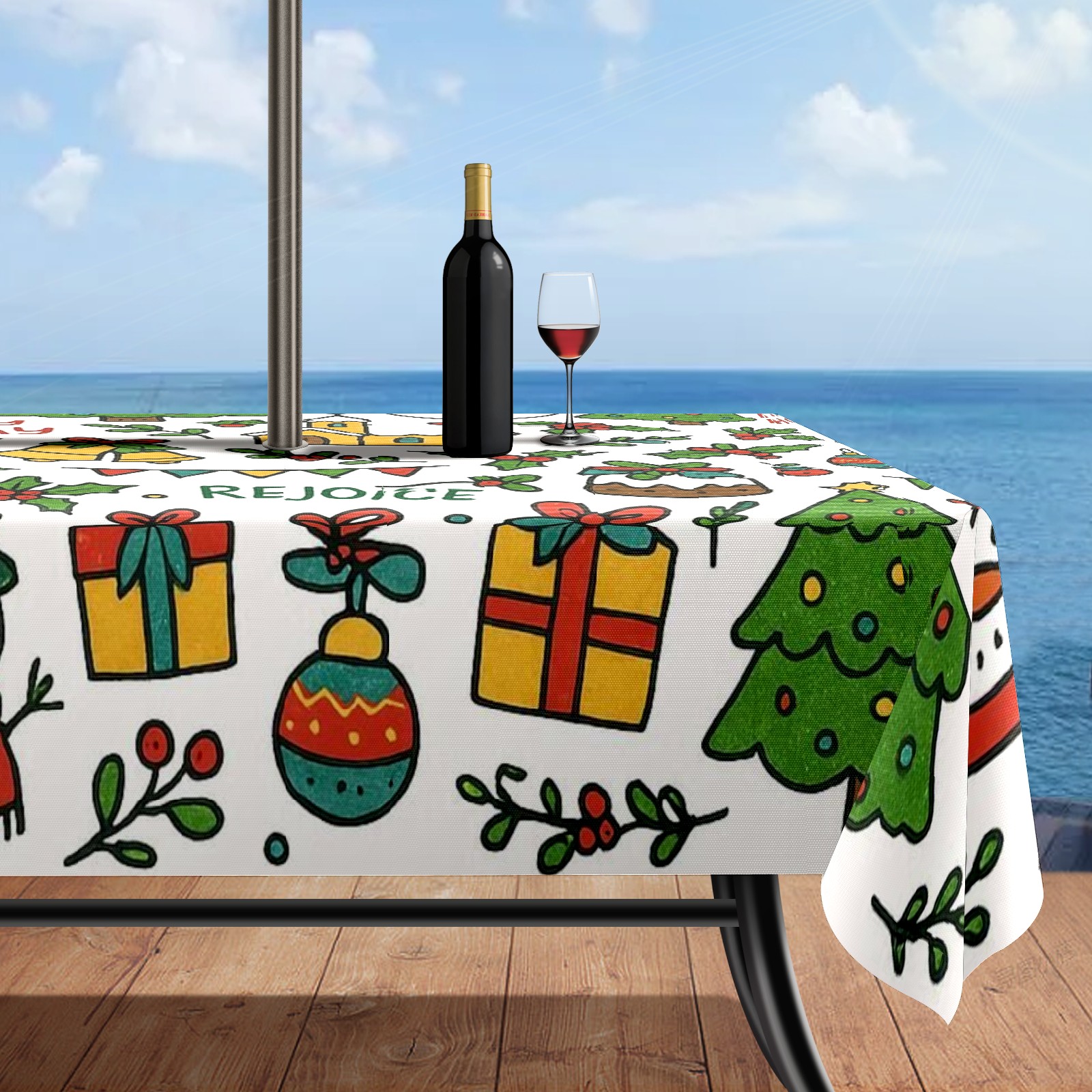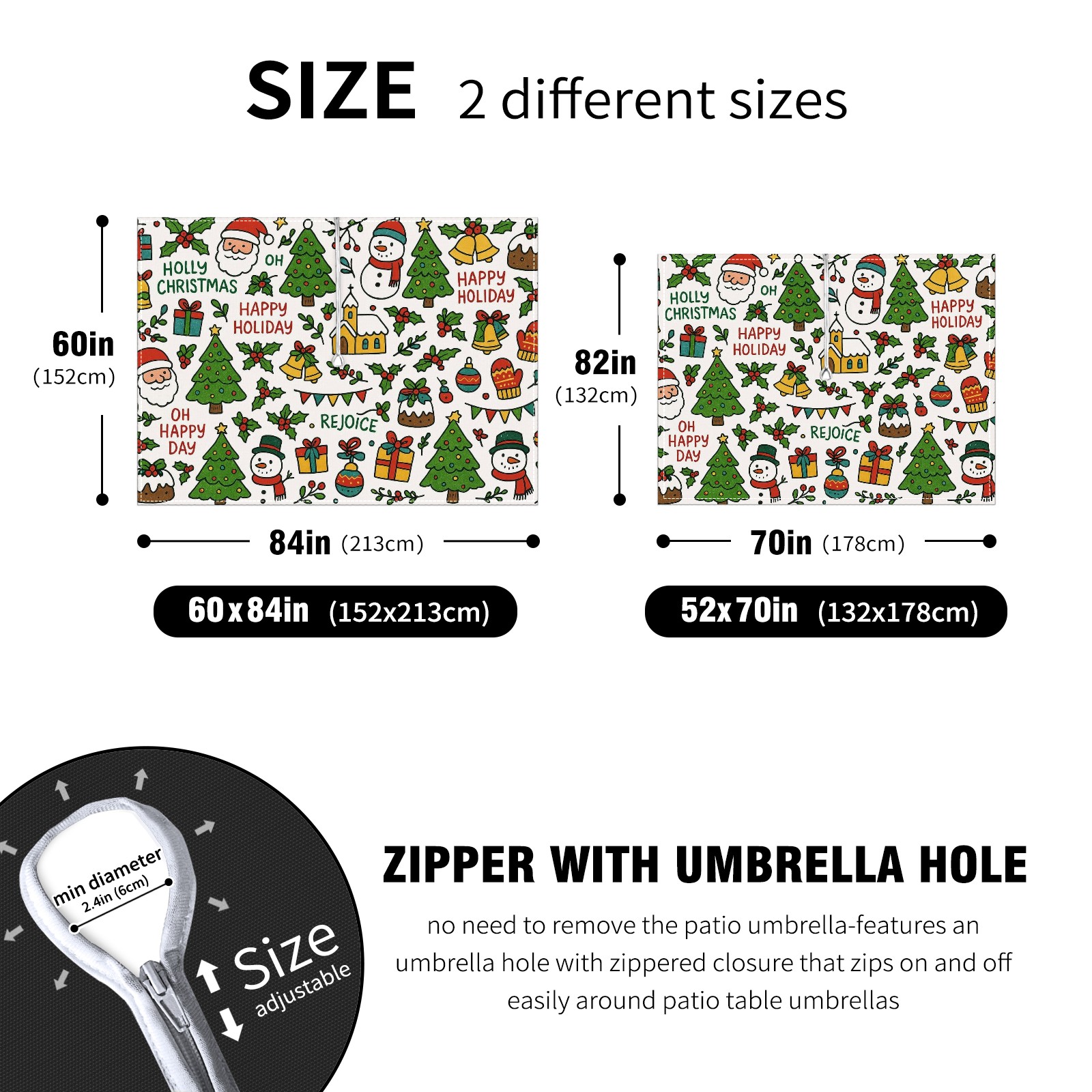 Zipper Square Tablecloth with Xmas Scene RedGreen Floral | Waterproof Outdoor Patio Cover for 6-8 Seater Table, 52x70 Inch, Easy to Clean & Setup