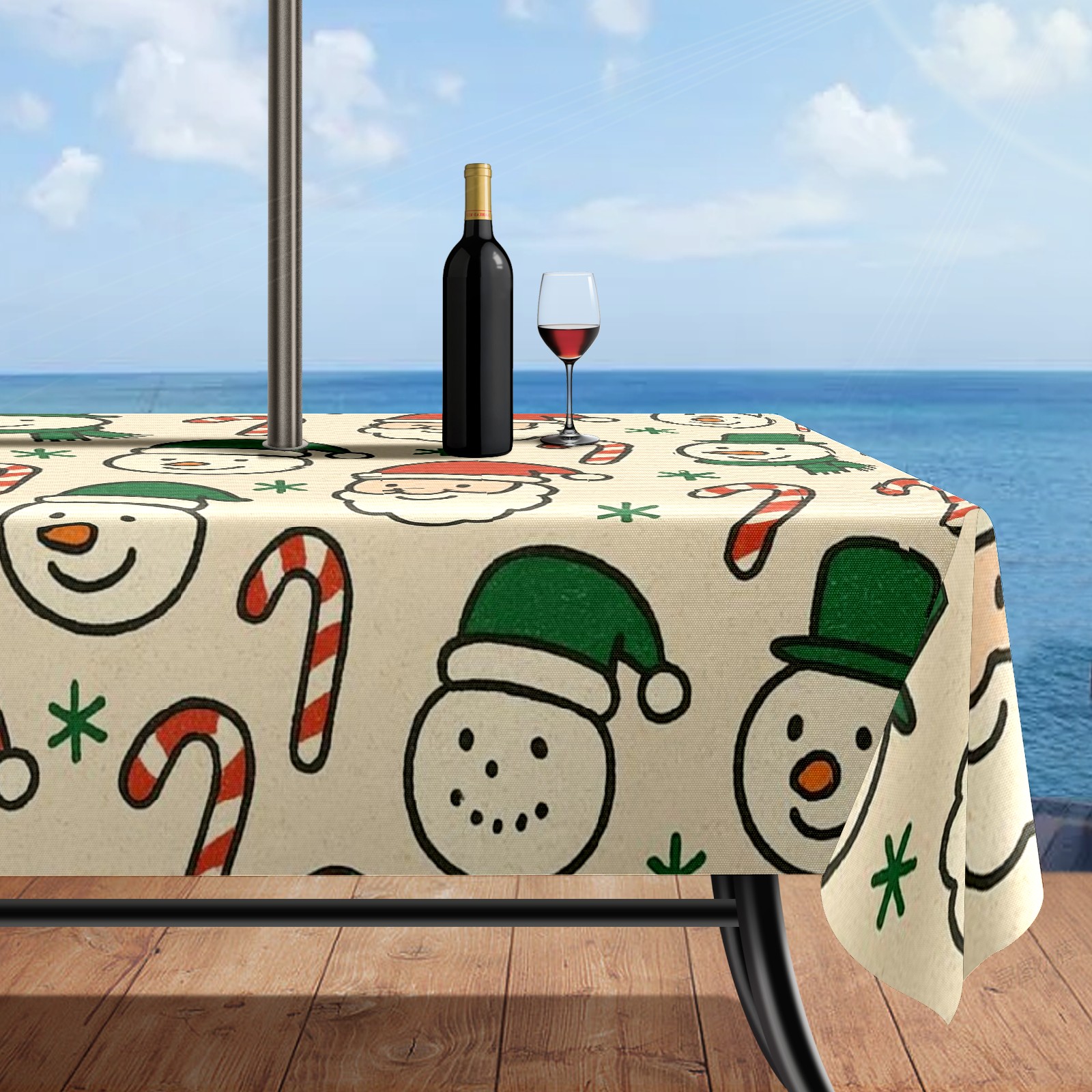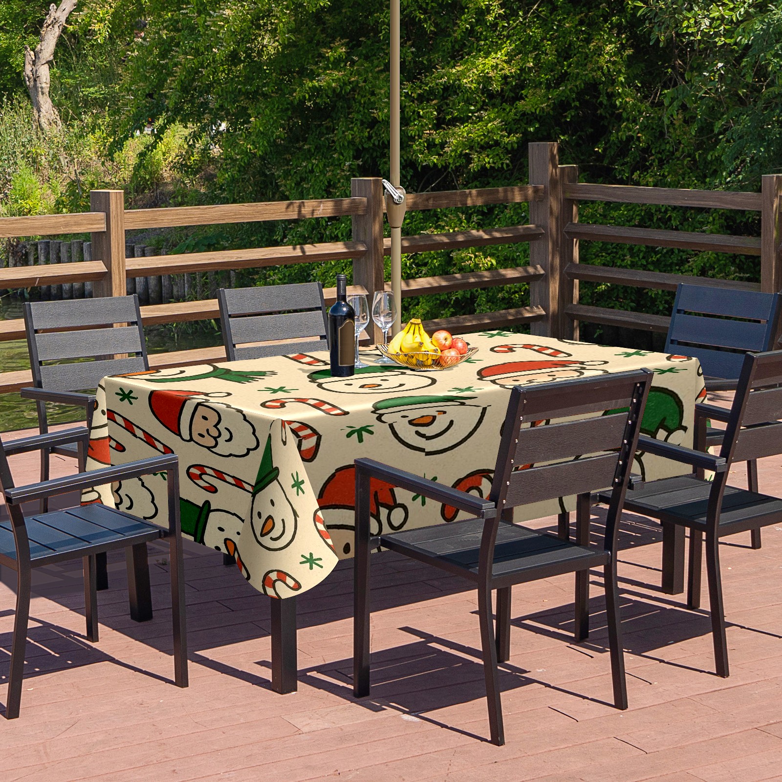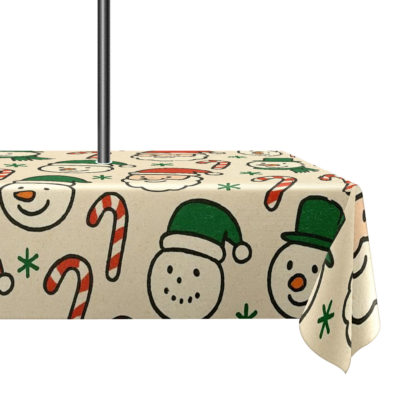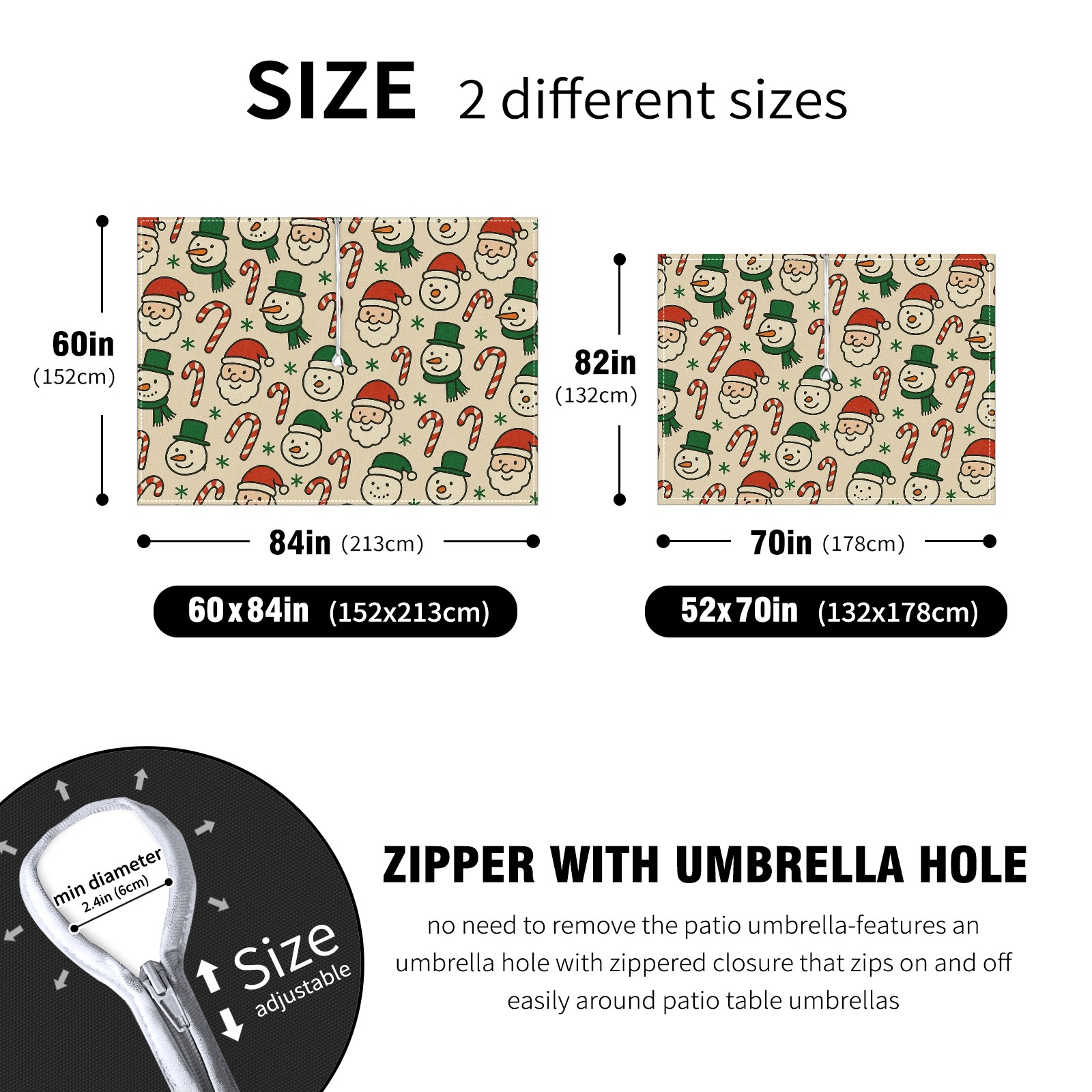 Zipper Square Tablecloth with Santa Claus RedWhite Floral | Waterproof Outdoor Patio Cover for 6-8 Seater Table, 52x70 Inch, Easy to Clean & Setup