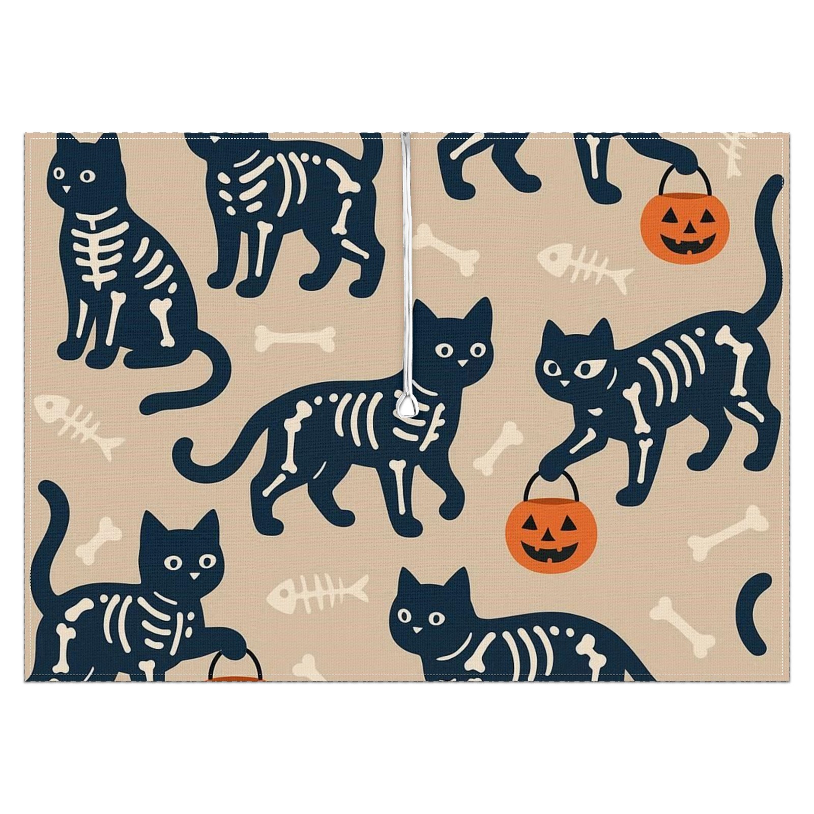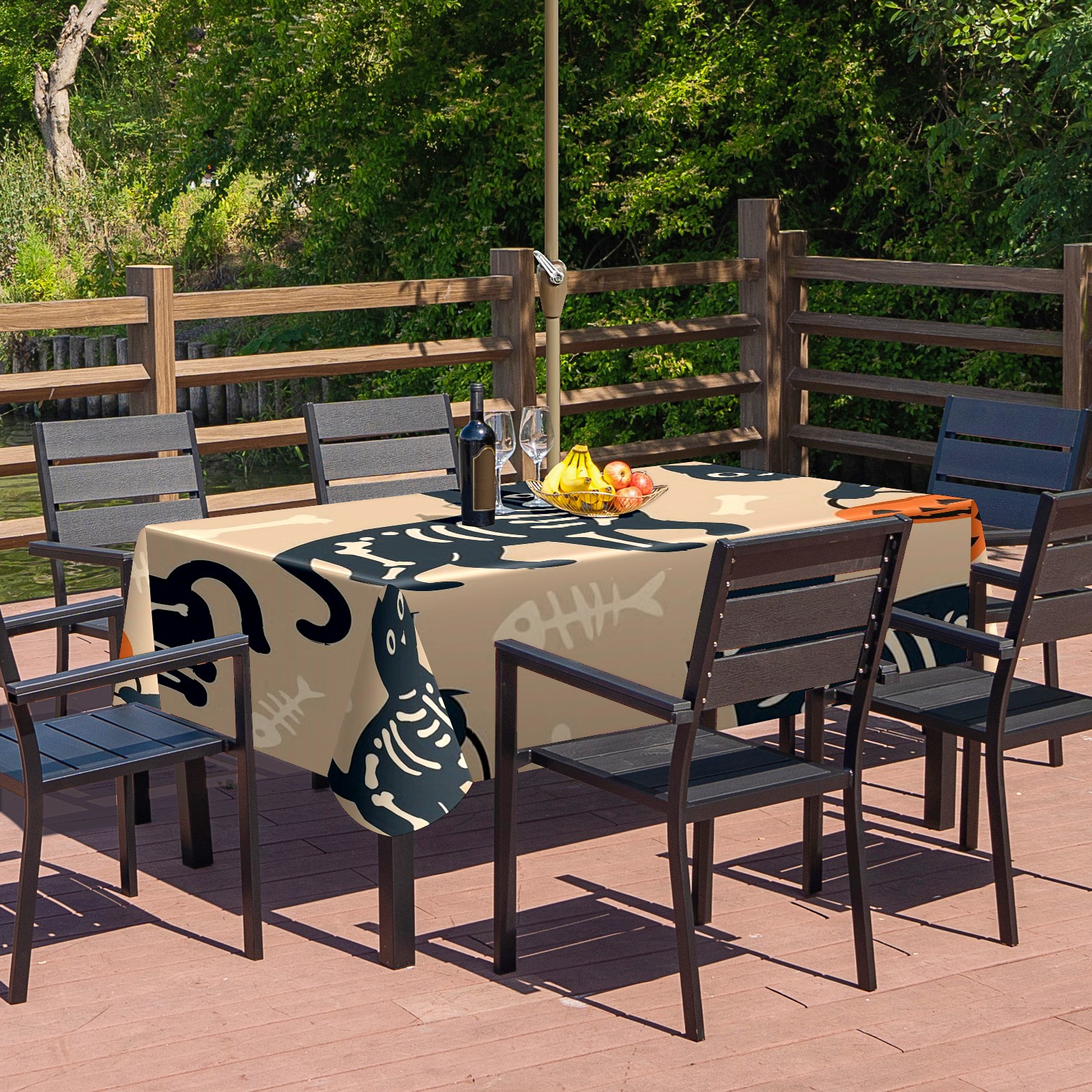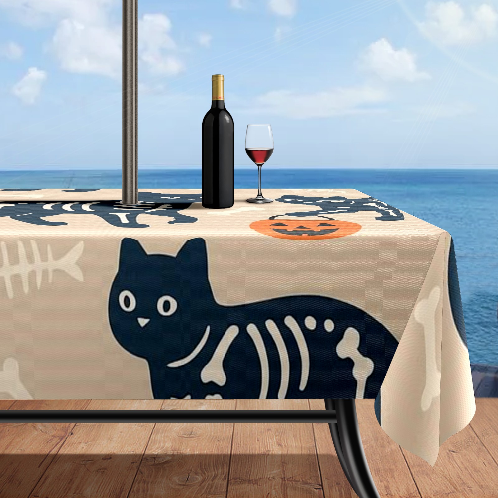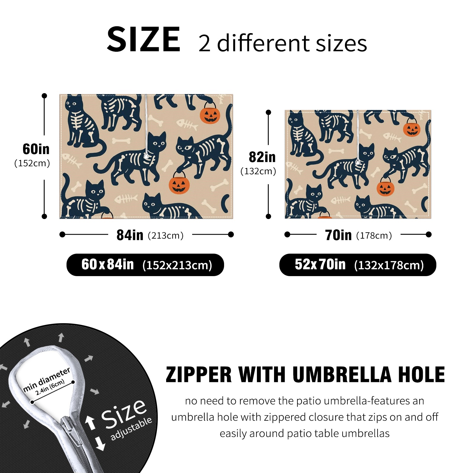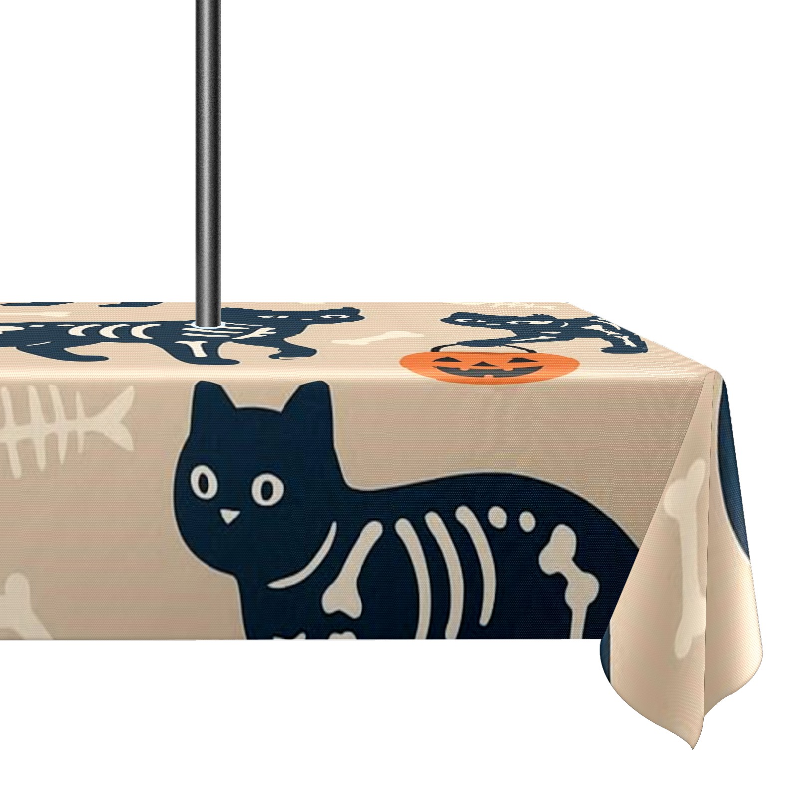 Zipper Square Tablecloth with Halloween SkeletonCat BrownBlack Floral | Waterproof Outdoor Patio Cover for 6-8 Seater Table, 52x70 Inch, Easy to Clean & Setup