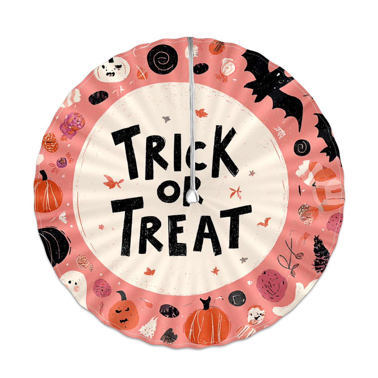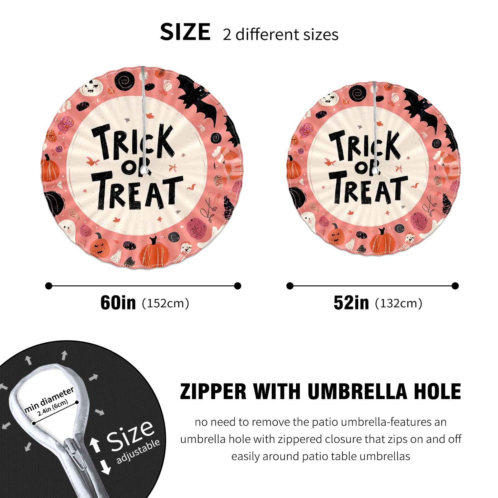 Round Tablecloth Halloween Ghost Pink Floral with Umbrella Hole & Zipper, All-Weather Waterproof Outdoor Patio Cover, 60 Inch Fits 4-6 Seater, Easy Installation, Halloween Ghost Pink Floral