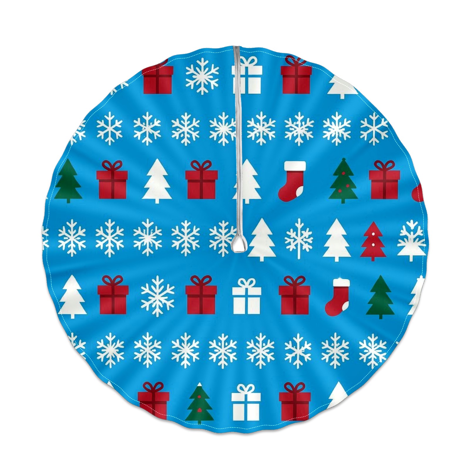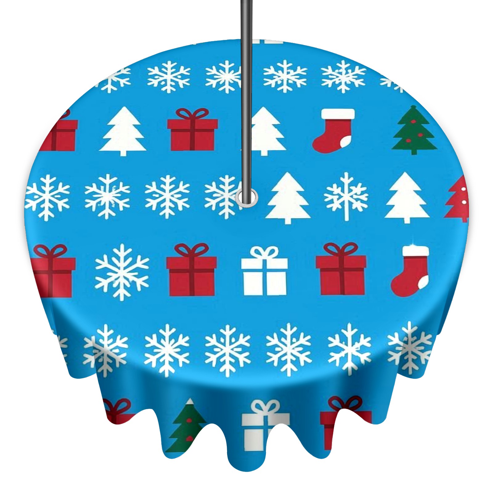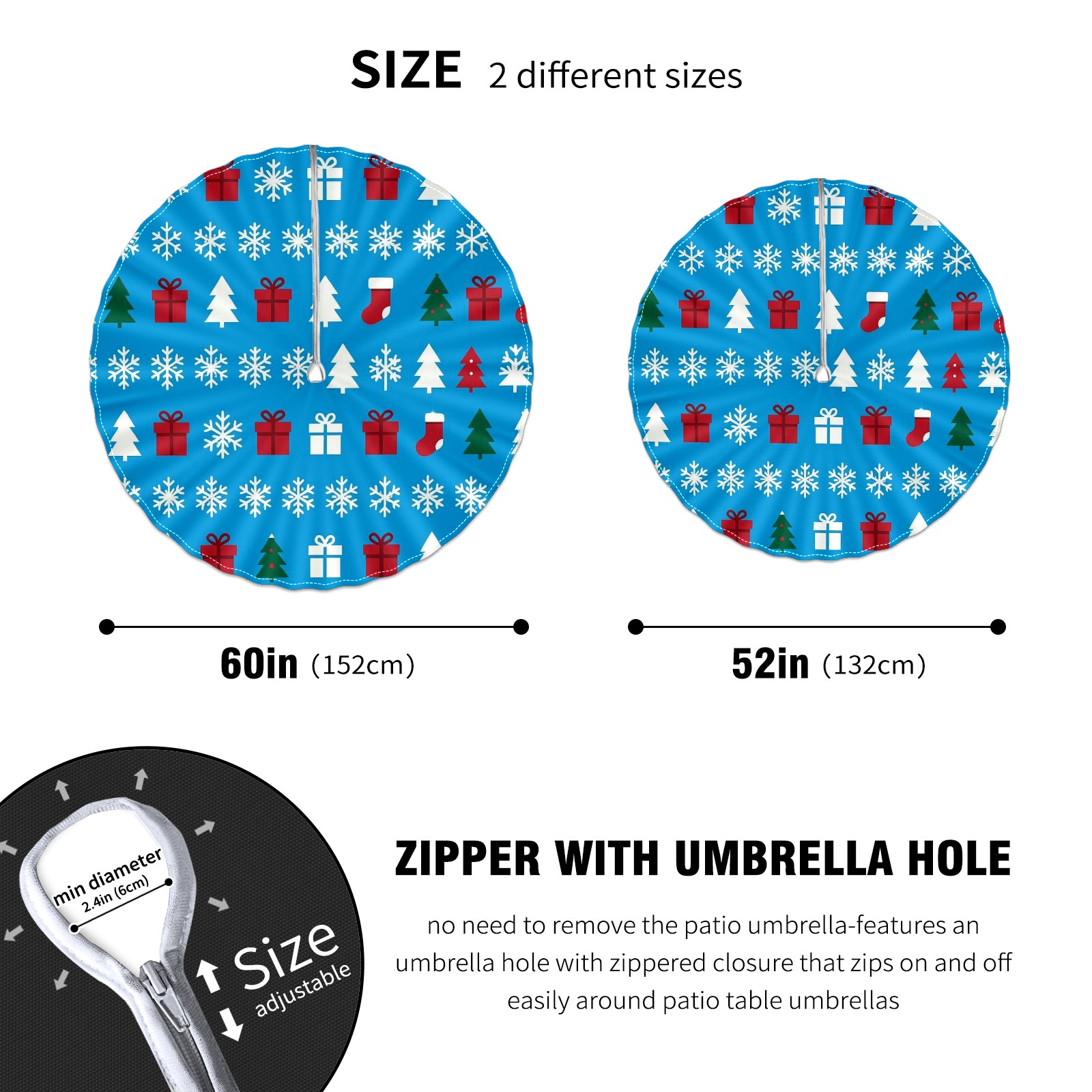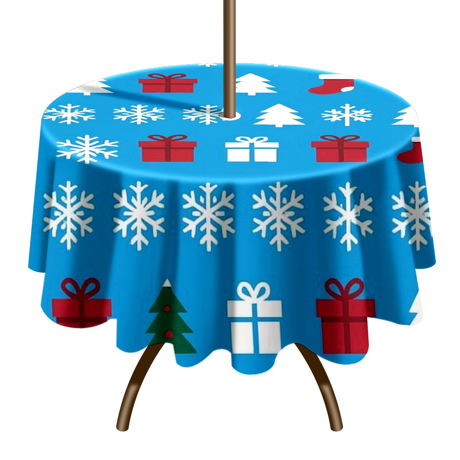 Round Tablecloth Xmas Snowflake BlueWhite Floral with Umbrella Hole & Zipper, All-Weather Waterproof Outdoor Patio Cover, 60 Inch Fits 4-6 Seater, Easy Installation, Xmas Snowflake BlueWhite Floral