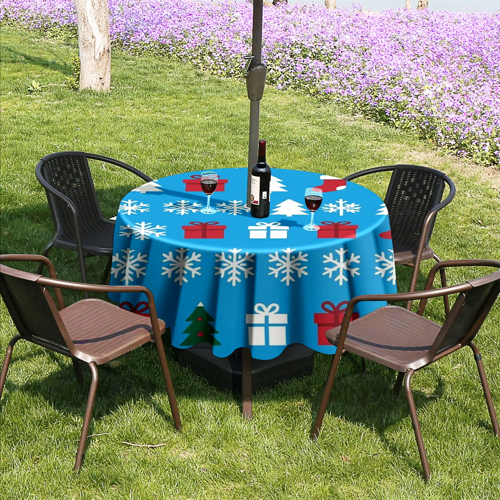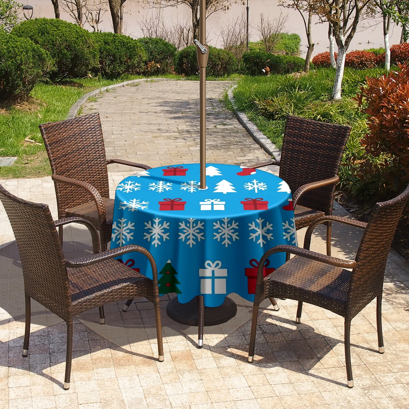 • <p><strong>Instant Patio Perfection, Made Simple.</strong></p><p>Revolutionize your outdoor dining with our Round Tablecloth. The <strong>smart zippered umbrella hole</strong> means you can <strong>dress your table in under 10 seconds</strong>—no umbrella disassembly required!</p><p>• <strong>INSTANT ZIP-ON SETUP</strong>: The easiest way to cover your round table.<br /> • <strong>BUILT TO LAST</strong>: Water-resistant, heavy-duty fabric for lasting beauty.<br /> • <strong>IDEAL FOR HOMES &amp; BUSINESSES</strong>: Transforms gardens, balconies, and cafe terraces.</p><p><strong>Order Now and Enjoy Alfresco Dining, the Easy Way!</strong></p>