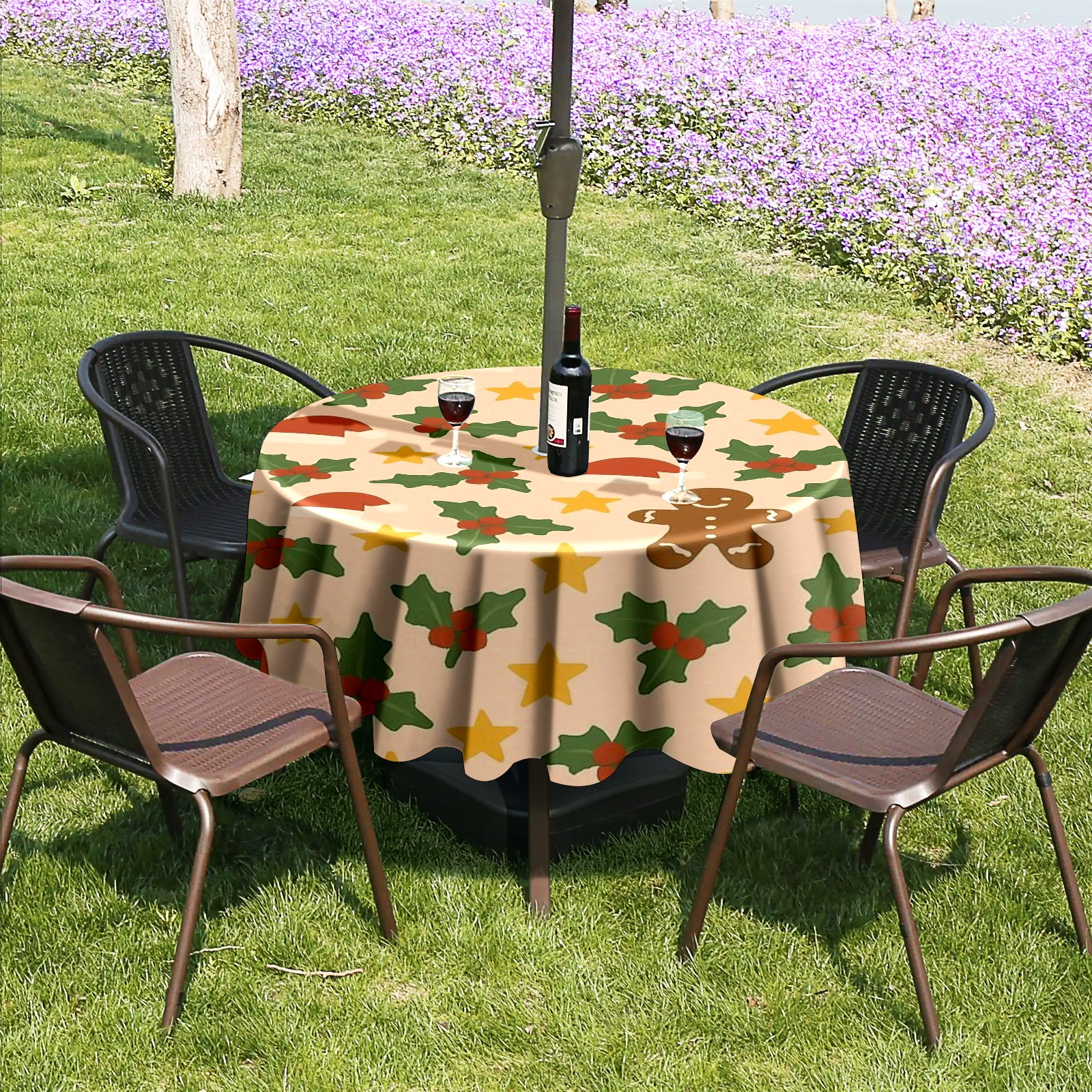 • <p><strong>Instant Patio Perfection, Made Simple.</strong></p><p>Revolutionize your outdoor dining with our Round Tablecloth. The <strong>smart zippered umbrella hole</strong> means you can <strong>dress your table in under 10 seconds</strong>—no umbrella disassembly required!</p><p>• <strong>INSTANT ZIP-ON SETUP</strong>: The easiest way to cover your round table.<br /> • <strong>BUILT TO LAST</strong>: Water-resistant, heavy-duty fabric for lasting beauty.<br /> • <strong>IDEAL FOR HOMES &amp; BUSINESSES</strong>: Transforms gardens, balconies, and cafe terraces.</p><p><strong>Order Now and Enjoy Alfresco Dining, the Easy Way!</strong></p>