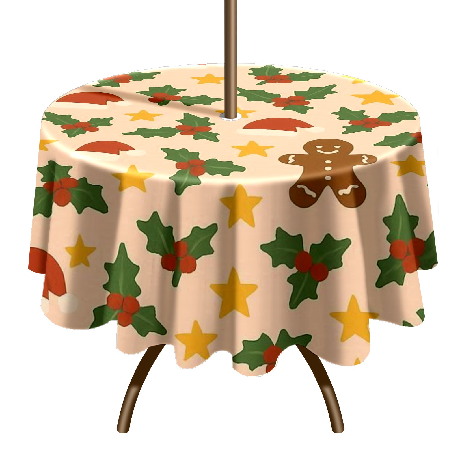 Round Tablecloth Gingerbread BrownYellow Floral with Umbrella Hole & Zipper, All-Weather Waterproof Outdoor Patio Cover, 60 Inch Fits 4-6 Seater, Easy Installation, Gingerbread BrownYellow Floral