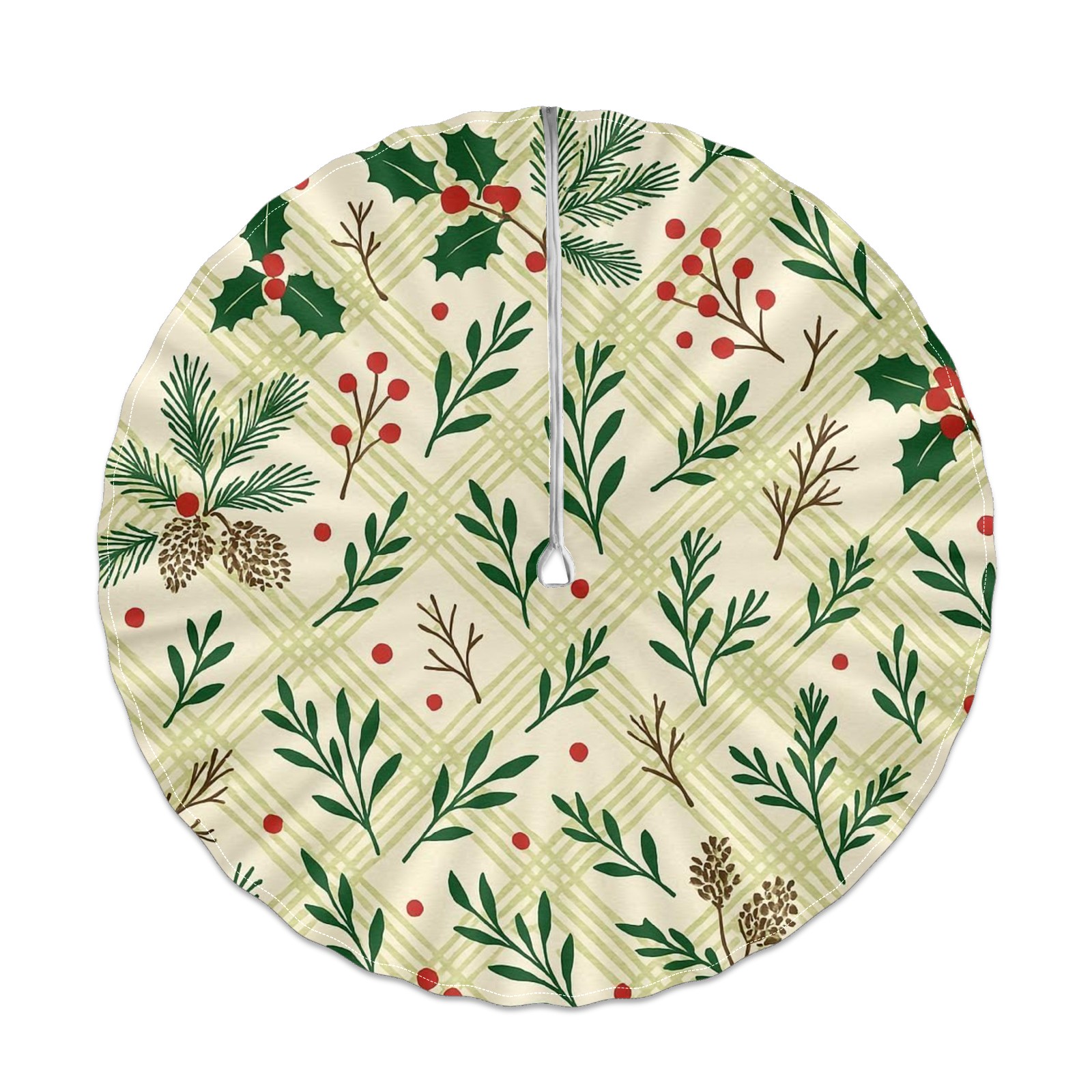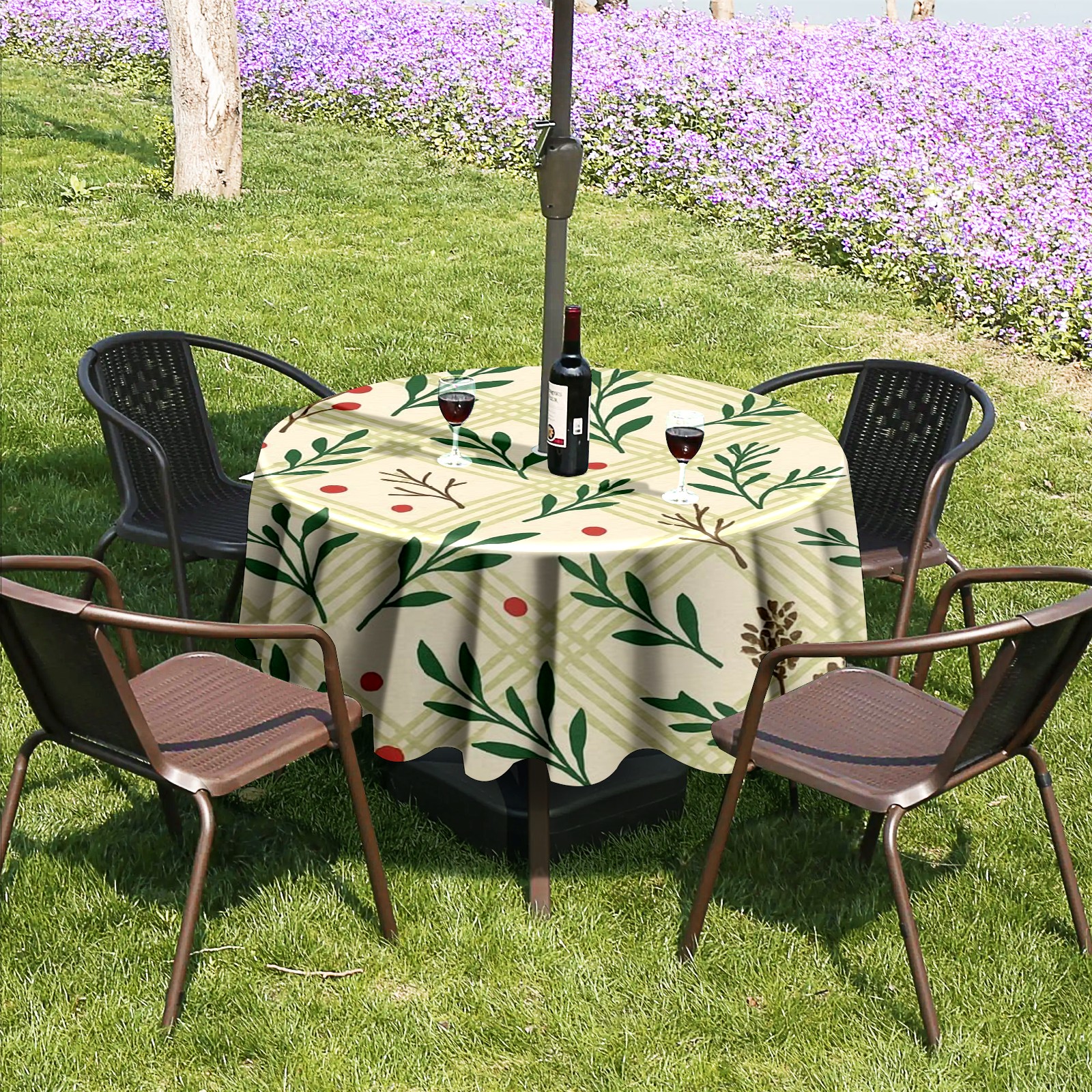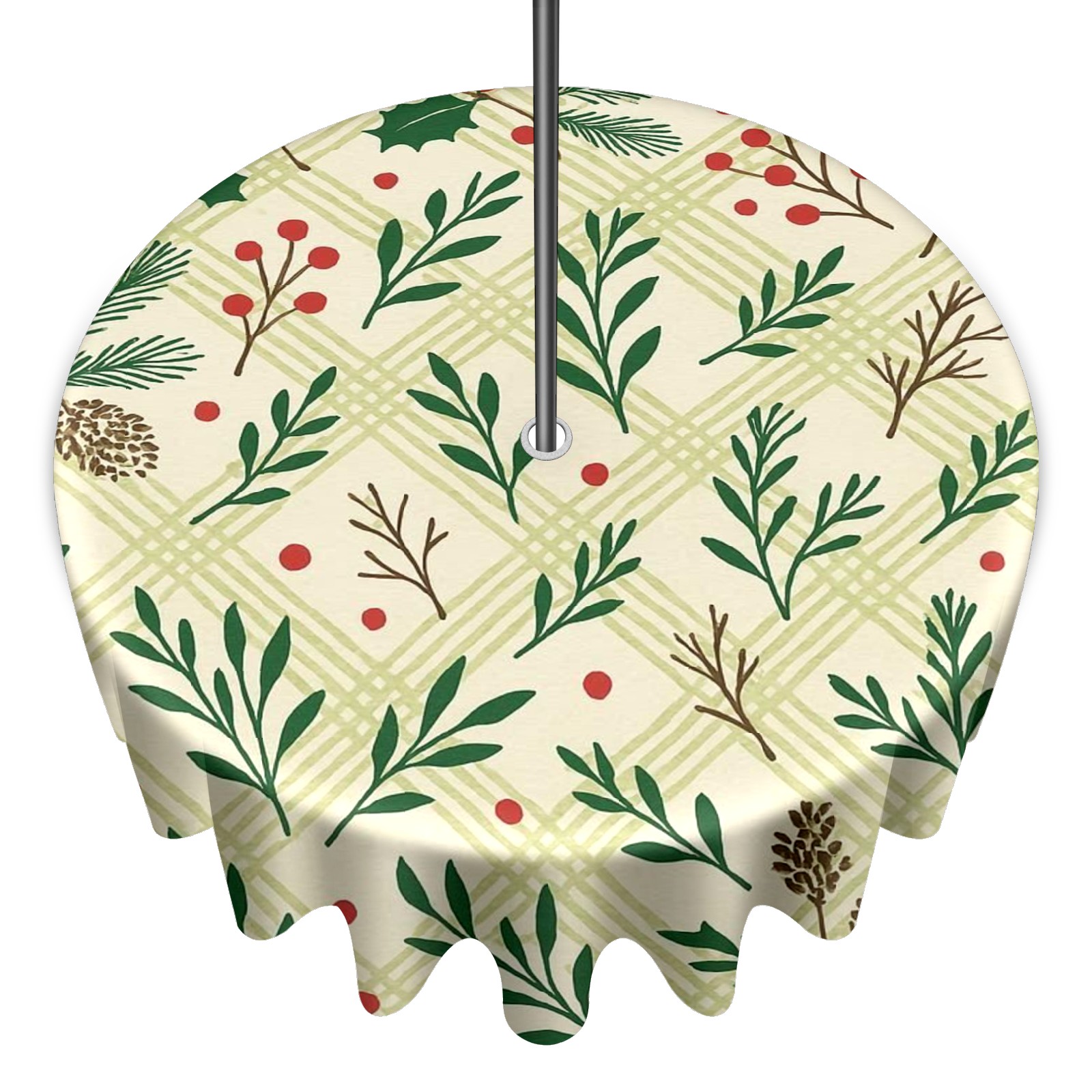 Round Tablecloth Holly Leaf Green Floral with Umbrella Hole & Zipper, All-Weather Waterproof Outdoor Patio Cover, 60 Inch Fits 4-6 Seater, Easy Installation, Holly Leaf Green Floral
