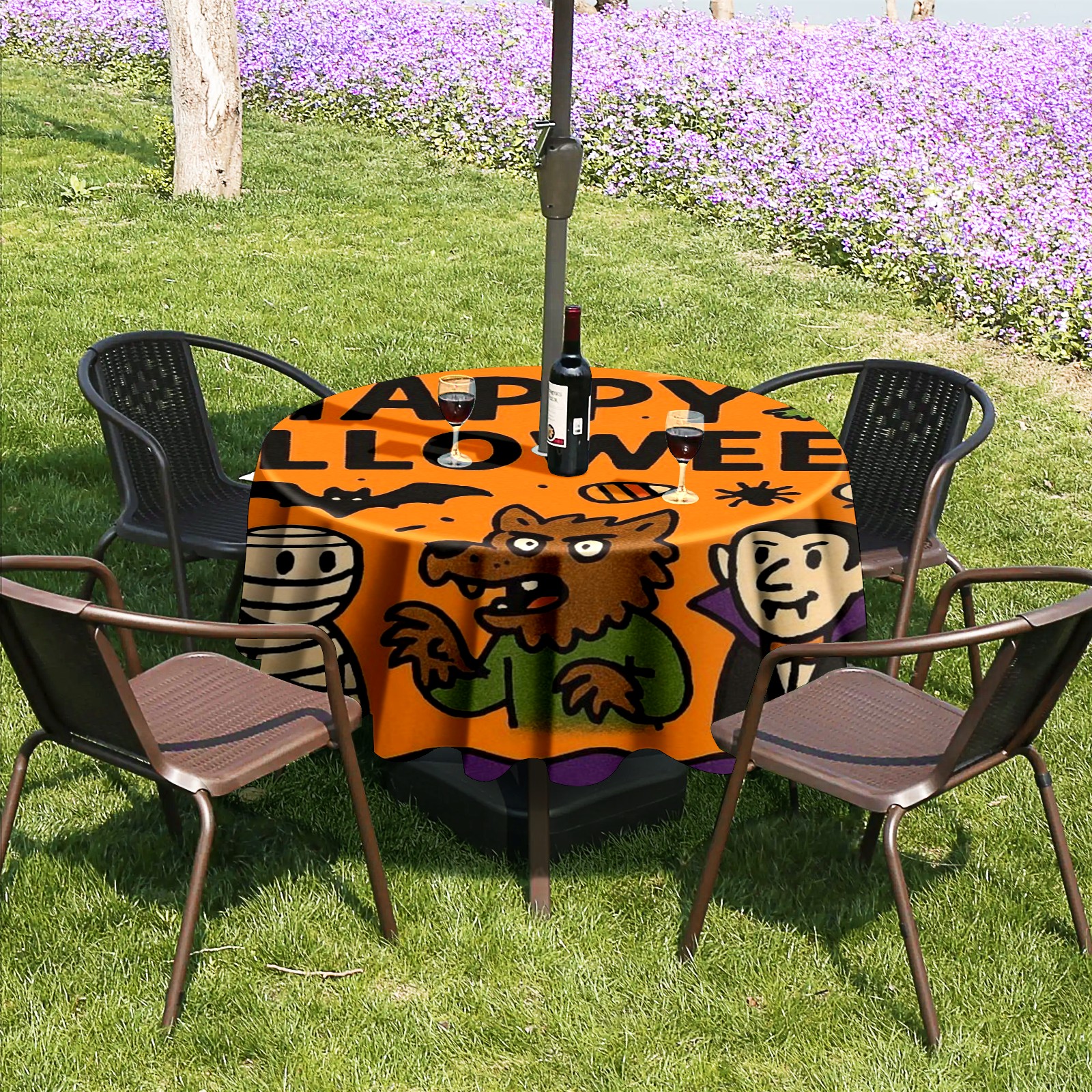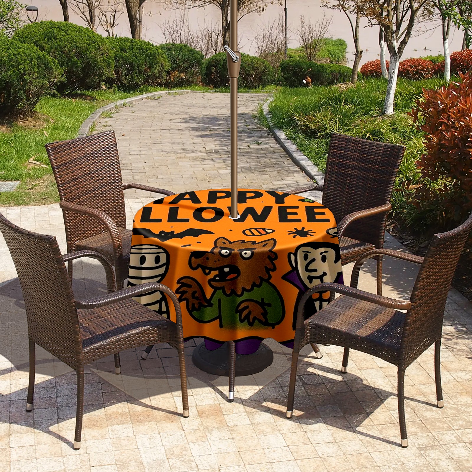 • <p><strong>Instant Patio Perfection, Made Simple.</strong></p><p>Revolutionize your outdoor dining with our Round Tablecloth. The <strong>smart zippered umbrella hole</strong> means you can <strong>dress your table in under 10 seconds</strong>—no umbrella disassembly required!</p><p>• <strong>INSTANT ZIP-ON SETUP</strong>: The easiest way to cover your round table.<br /> • <strong>BUILT TO LAST</strong>: Water-resistant, heavy-duty fabric for lasting beauty.<br /> • <strong>IDEAL FOR HOMES &amp; BUSINESSES</strong>: Transforms gardens, balconies, and cafe terraces.</p><p><strong>Order Now and Enjoy Alfresco Dining, the Easy Way!</strong></p>