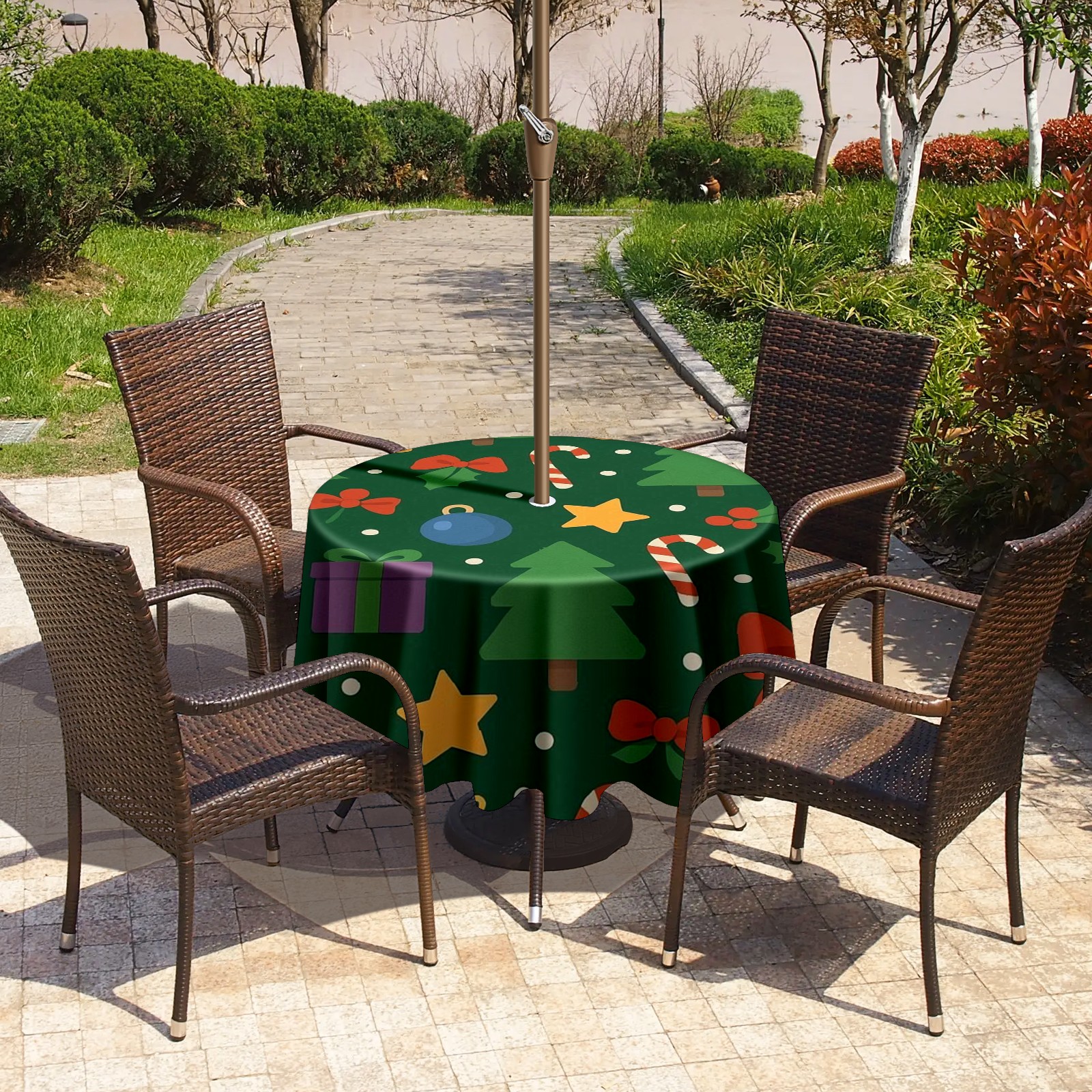 <p><strong>Instant Patio Perfection, Made Simple.</strong></p><p>Revolutionize your outdoor dining with our Round Tablecloth. The <strong>smart zippered umbrella hole</strong> means you can <strong>dress your table in under 10 seconds</strong>—no umbrella disassembly required!</p><p>• <strong>INSTANT ZIP-ON SETUP</strong>: The easiest way to cover your round table.<br /> • <strong>BUILT TO LAST</strong>: Water-resistant, heavy-duty fabric for lasting beauty.<br /> • <strong>IDEAL FOR HOMES & BUSINESSES</strong>: Transforms gardens, balconies, and cafe terraces.</p><p><strong>Order Now and Enjoy Alfresco Dining, the Easy Way!</strong></p>