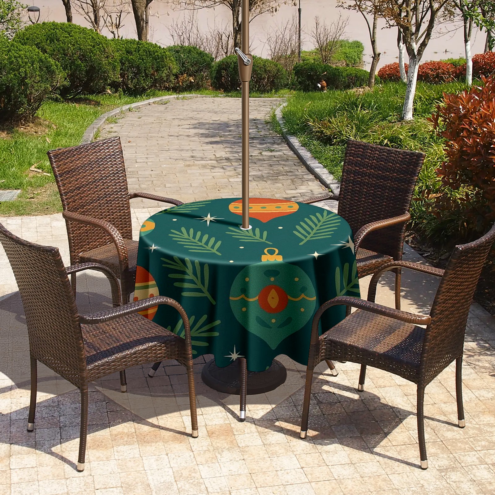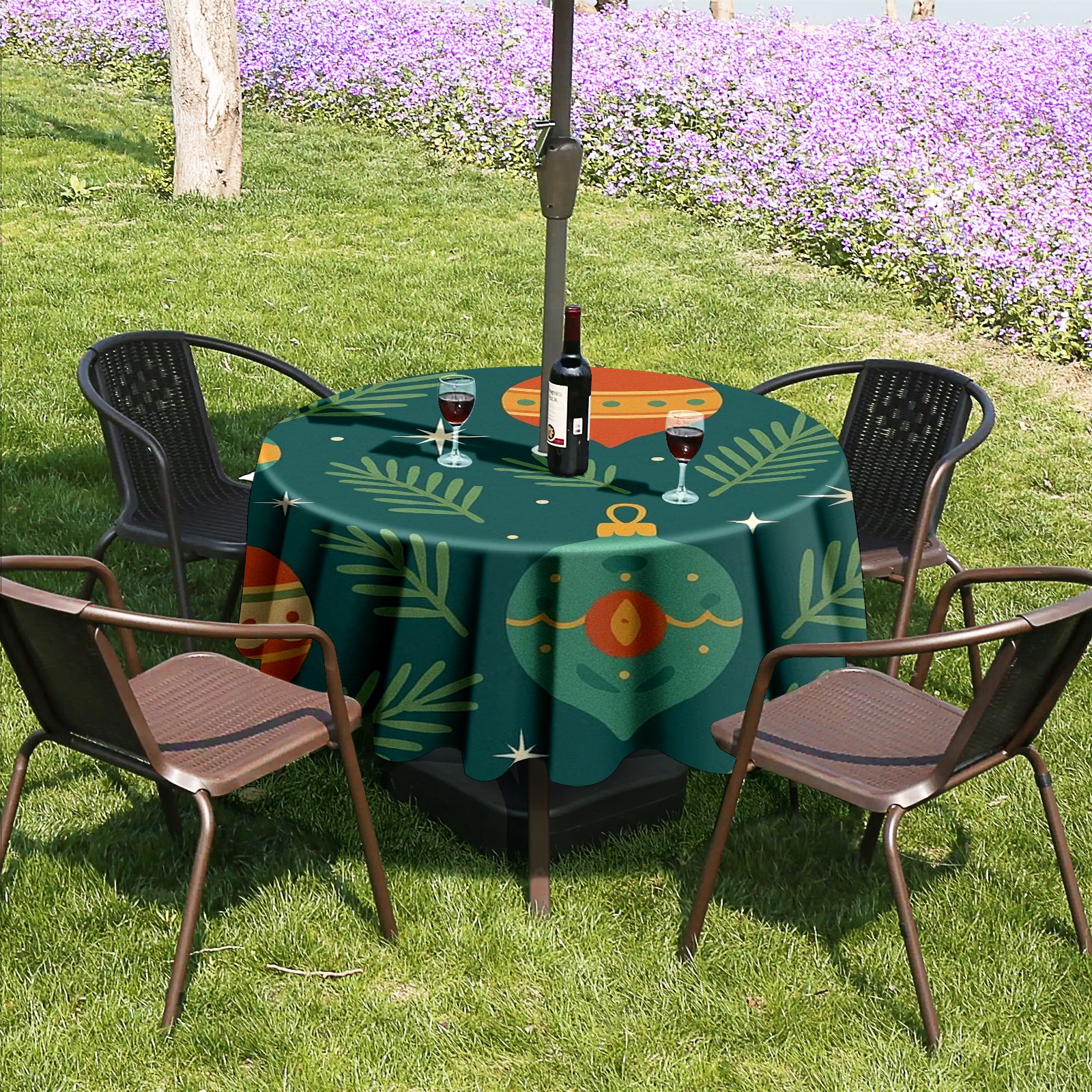 • <p><strong>Instant Patio Perfection, Made Simple.</strong></p><p>Revolutionize your outdoor dining with our Round Tablecloth. The <strong>smart zippered umbrella hole</strong> means you can <strong>dress your table in under 10 seconds</strong>—no umbrella disassembly required!</p><p>• <strong>INSTANT ZIP-ON SETUP</strong>: The easiest way to cover your round table.<br /> • <strong>BUILT TO LAST</strong>: Water-resistant, heavy-duty fabric for lasting beauty.<br /> • <strong>IDEAL FOR HOMES &amp; BUSINESSES</strong>: Transforms gardens, balconies, and cafe terraces.</p><p><strong>Order Now and Enjoy Alfresco Dining, the Easy Way!</strong></p>