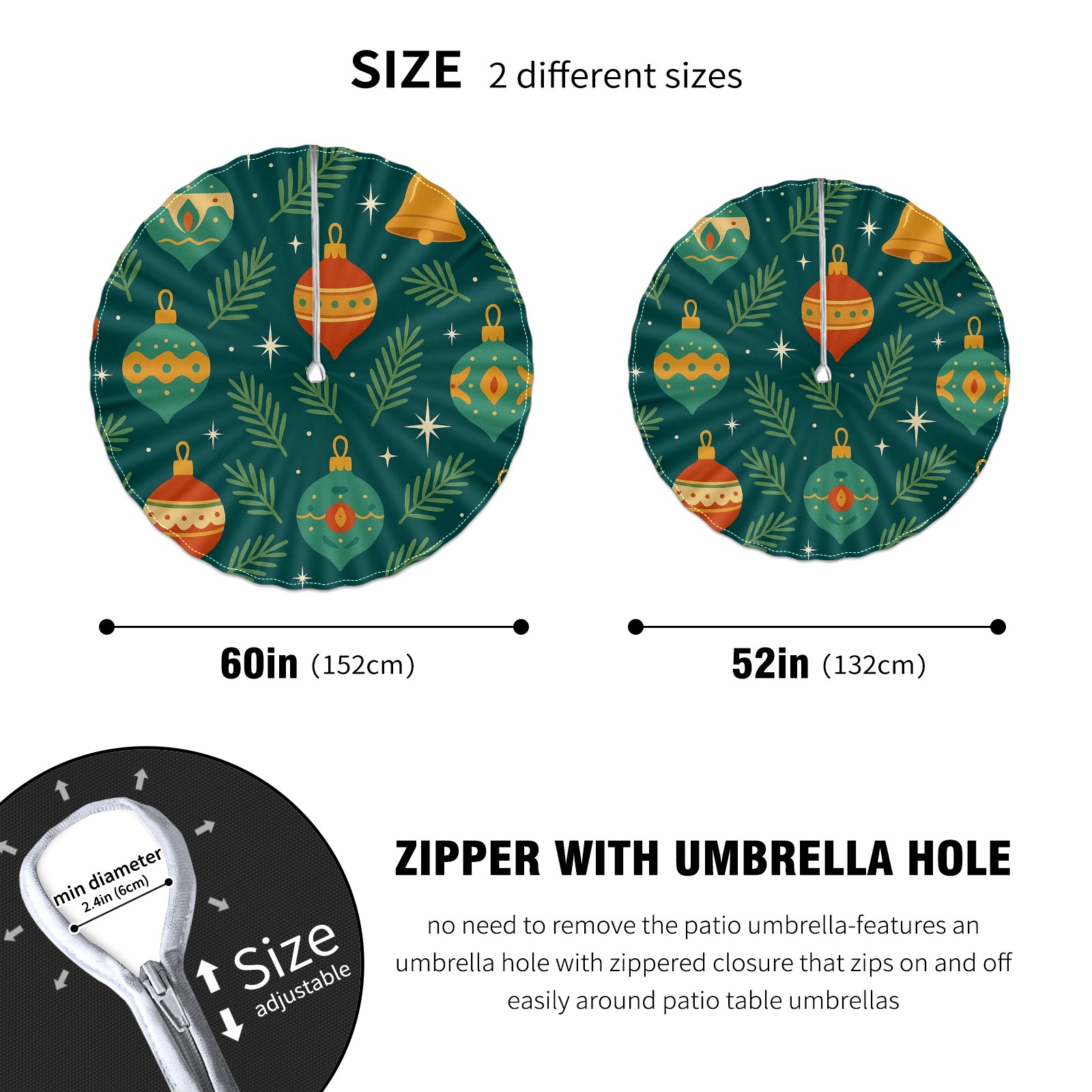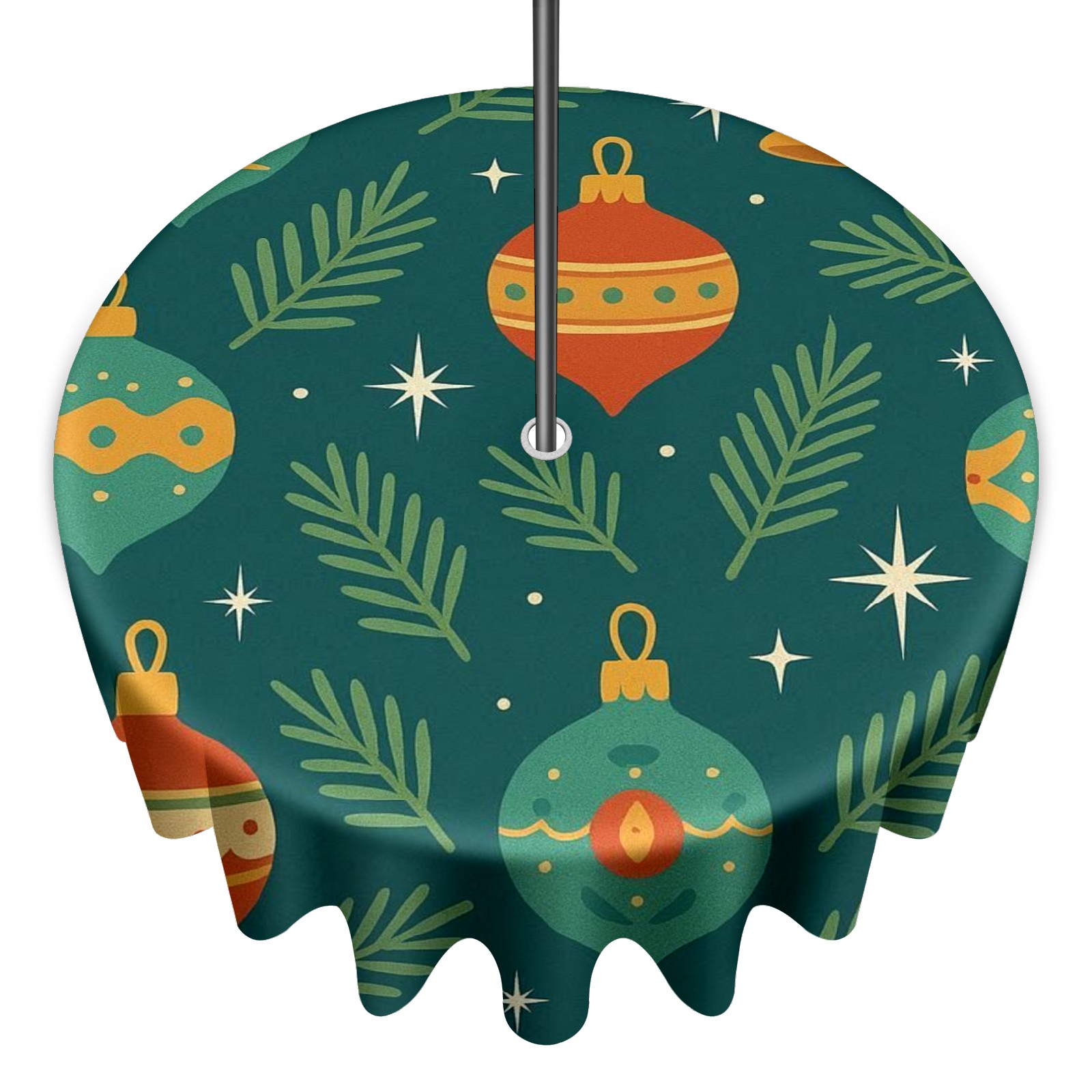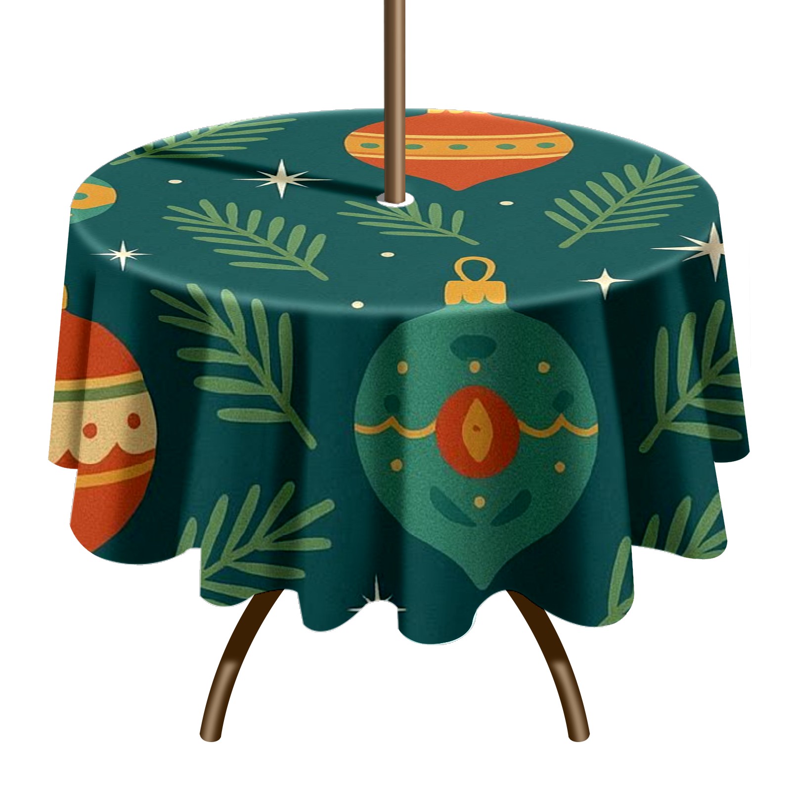Round Tablecloth Christmas Ornament Blue Orange Floral with Umbrella Hole & Zipper, All-Weather Waterproof Outdoor Patio Cover, 60 Inch Fits 4-6 Seater, Easy Installation, Christmas Ornament Blue Orange Floral