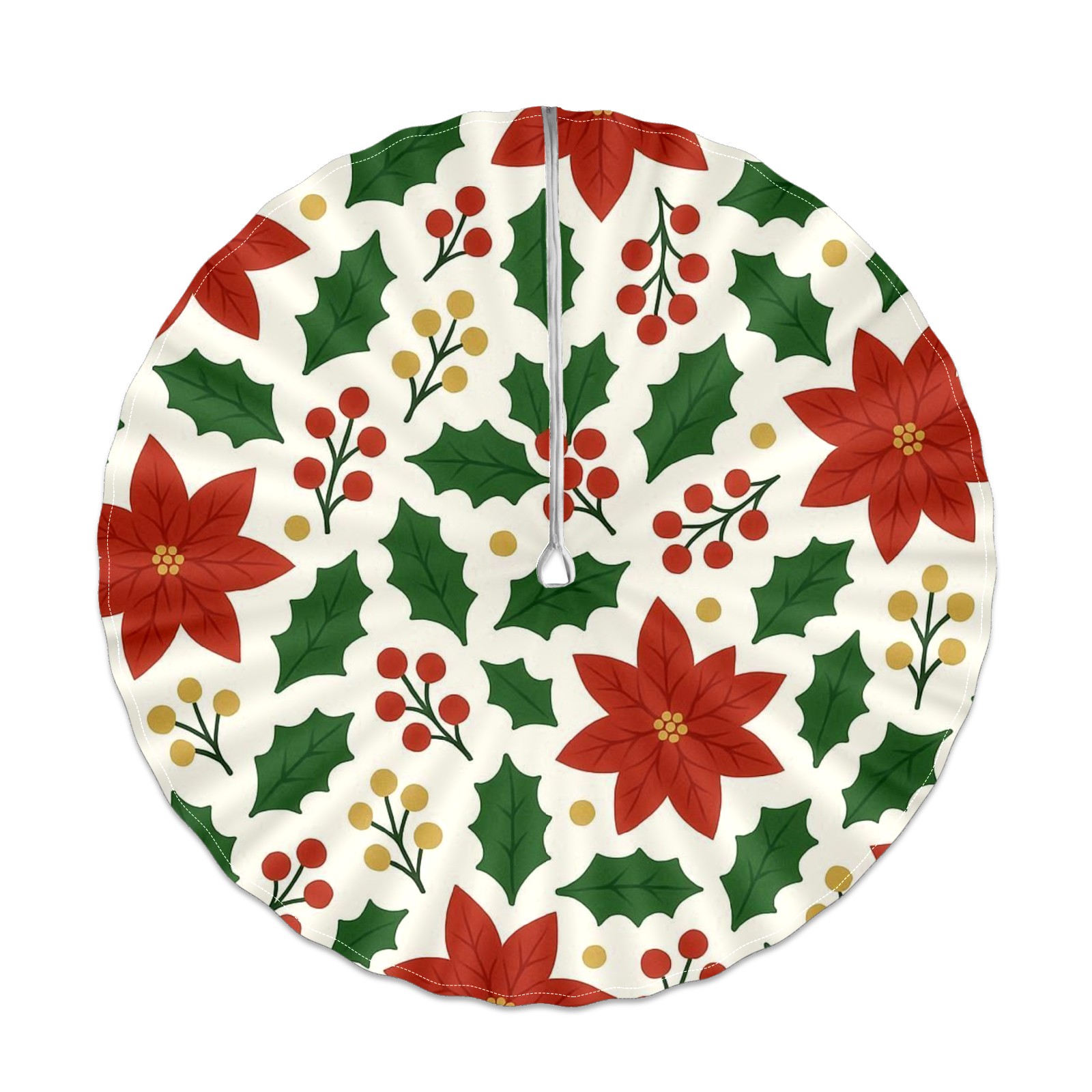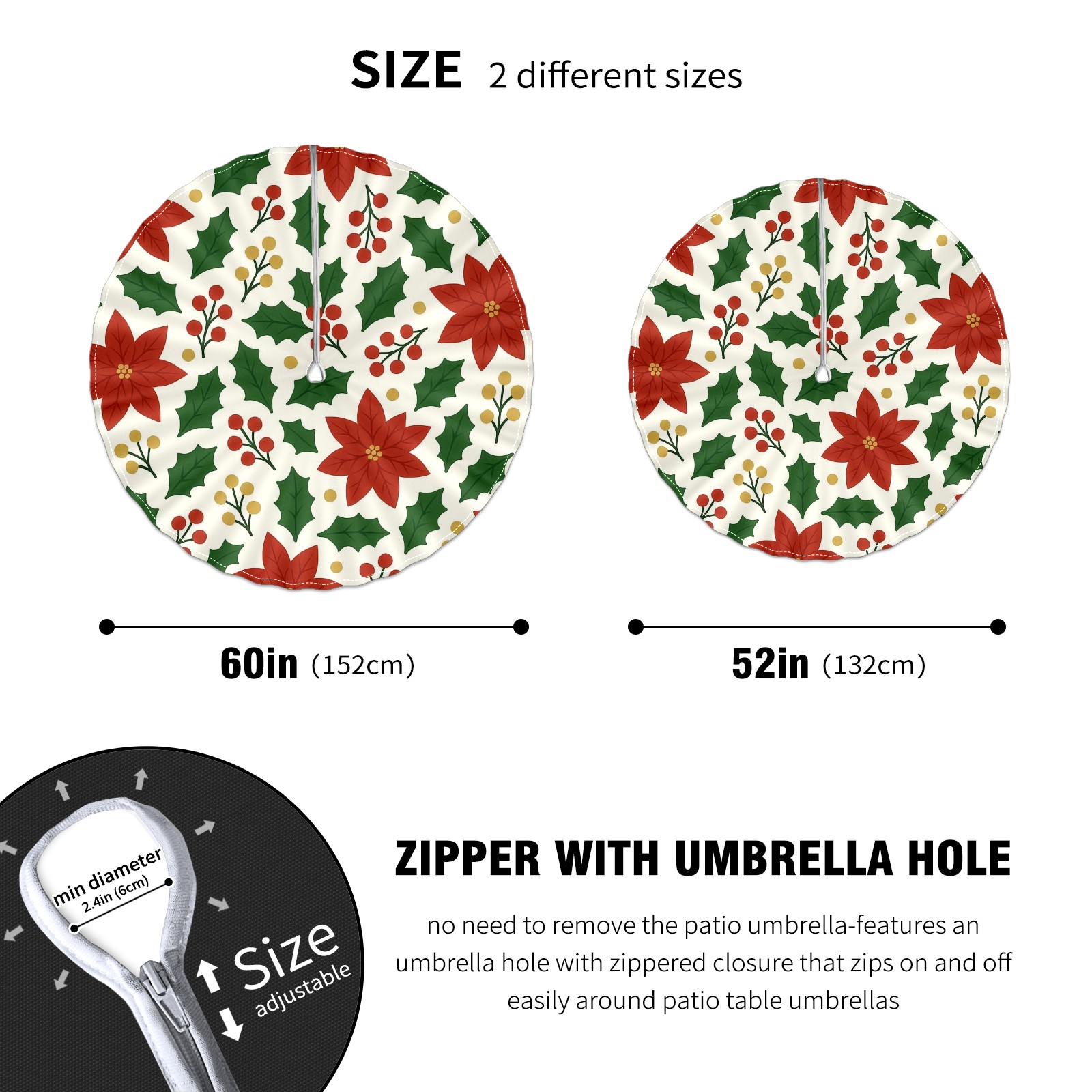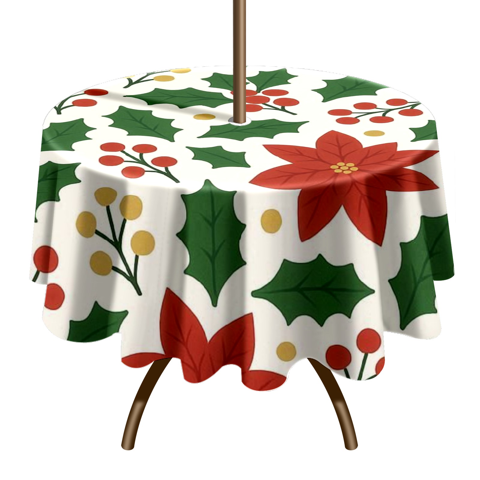Round Tablecloth Poinsettia Red Green Floral with Umbrella Hole & Zipper, All-Weather Waterproof Outdoor Patio Cover, 60 Inch Fits 4-6 Seater, Easy Installation, Poinsettia Red Green Floral