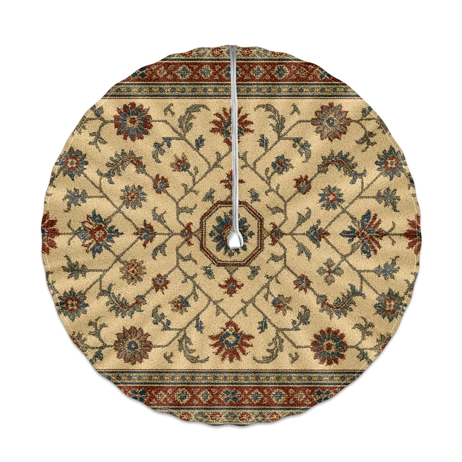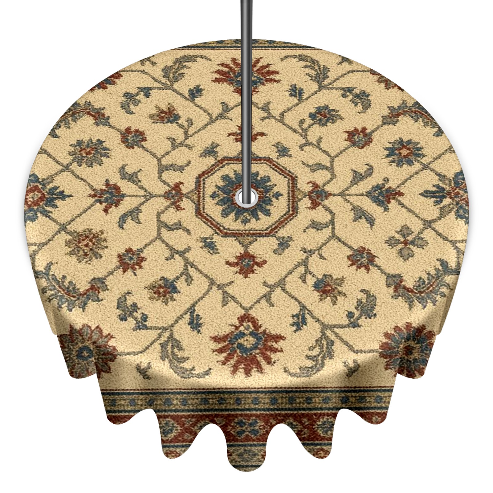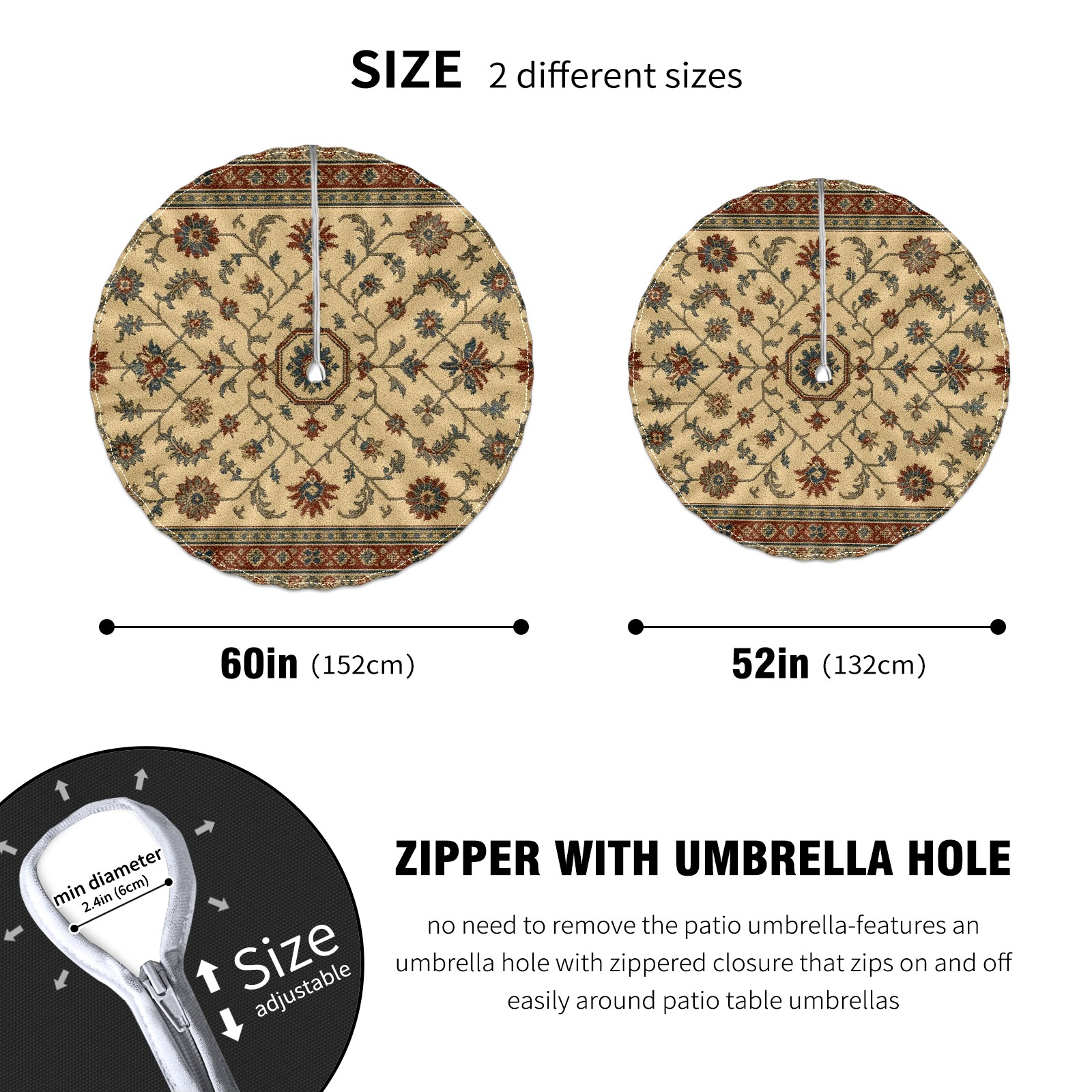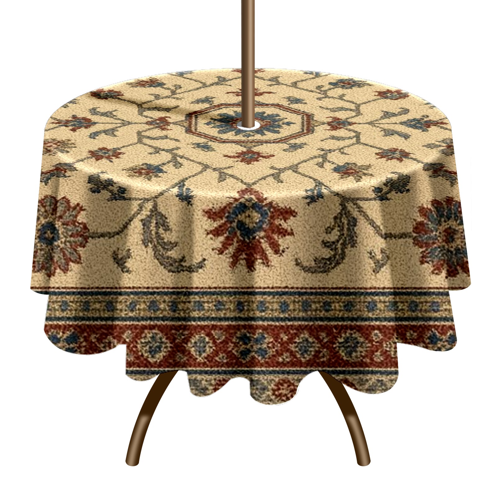 Round Tablecloth Carpet Pattern Beige Brown Paisley with Umbrella Hole & Zipper, All-Weather Waterproof Outdoor Patio Cover, 60 Inch Fits 4-6 Seater, Easy Installation, Carpet Pattern Beige Brown Paisley