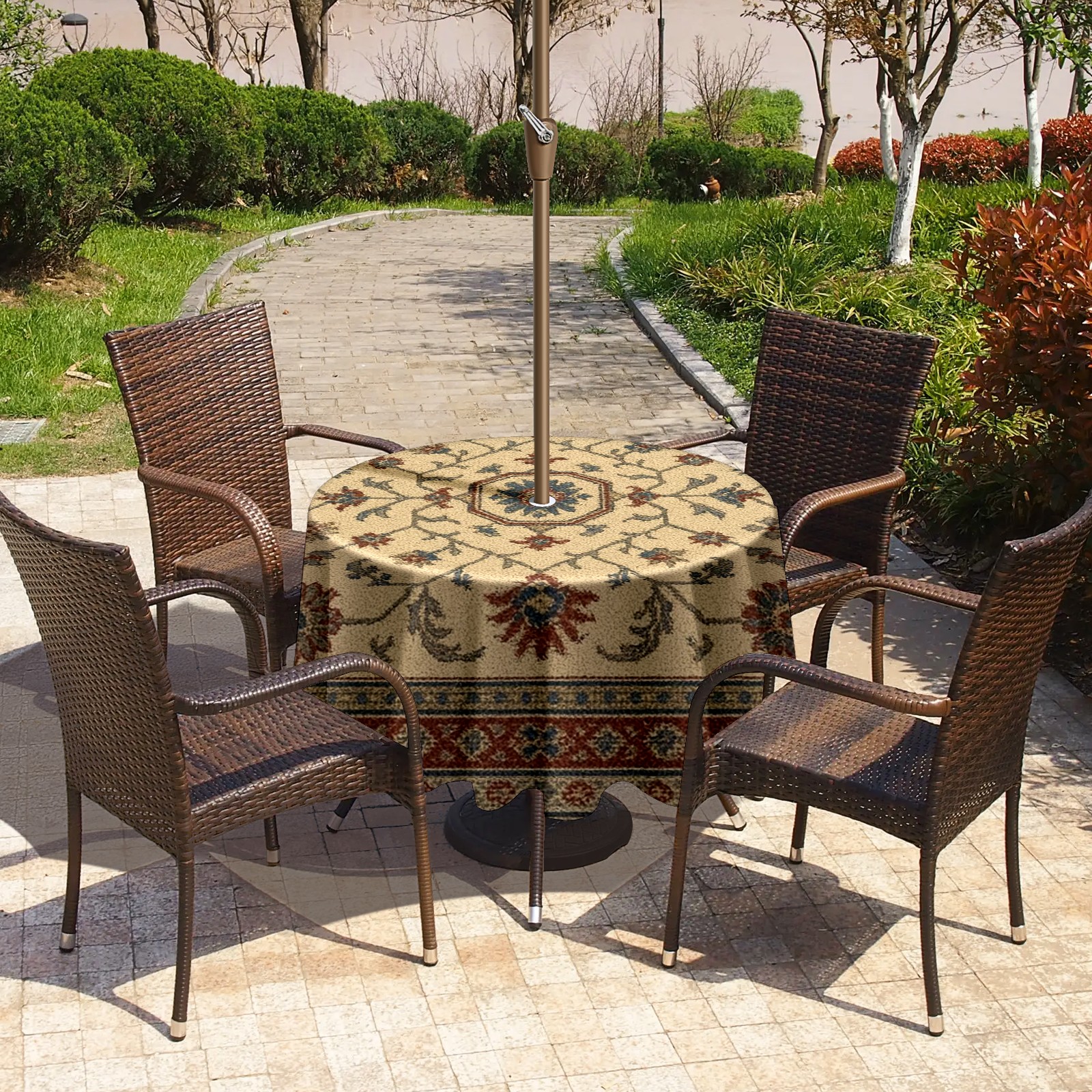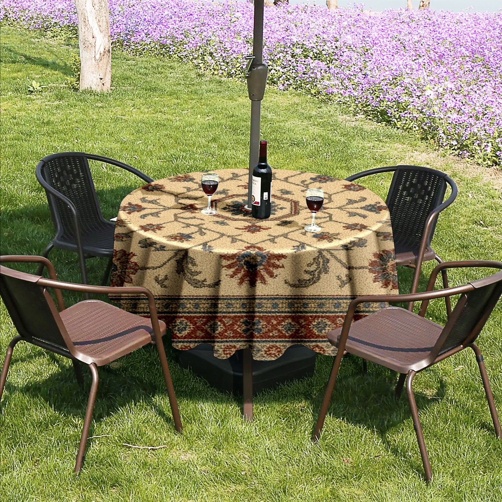 • <p><strong>Instant Patio Perfection, Made Simple.</strong></p><p>Revolutionize your outdoor dining with our Round Tablecloth. The <strong>smart zippered umbrella hole</strong> means you can <strong>dress your table in under 10 seconds</strong>—no umbrella disassembly required!</p><p>• <strong>INSTANT ZIP-ON SETUP</strong>: The easiest way to cover your round table.<br /> • <strong>BUILT TO LAST</strong>: Water-resistant, heavy-duty fabric for lasting beauty.<br /> • <strong>IDEAL FOR HOMES &amp; BUSINESSES</strong>: Transforms gardens, balconies, and cafe terraces.</p><p><strong>Order Now and Enjoy Alfresco Dining, the Easy Way!</strong></p>