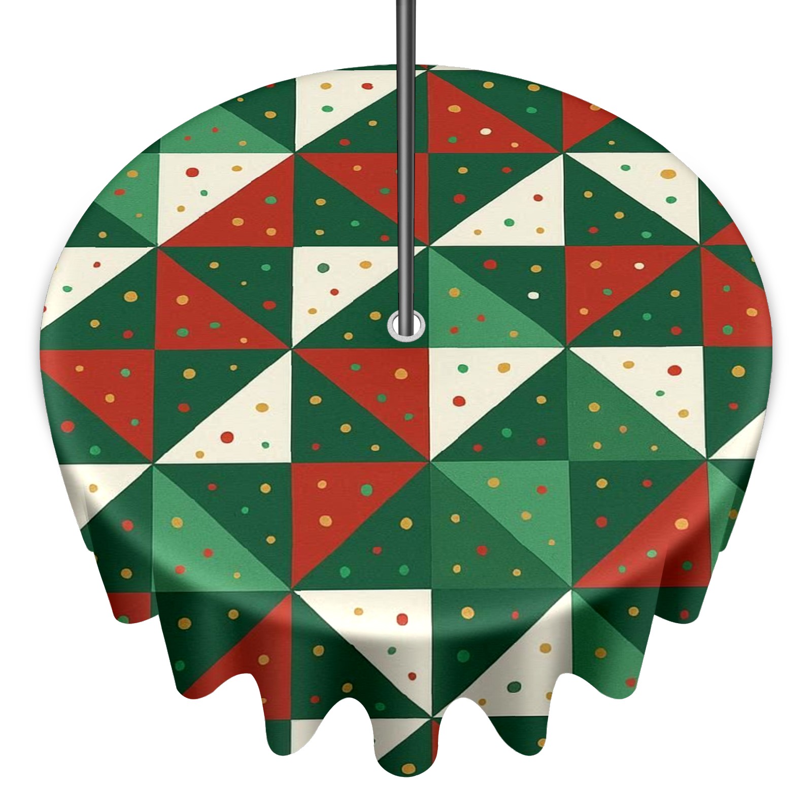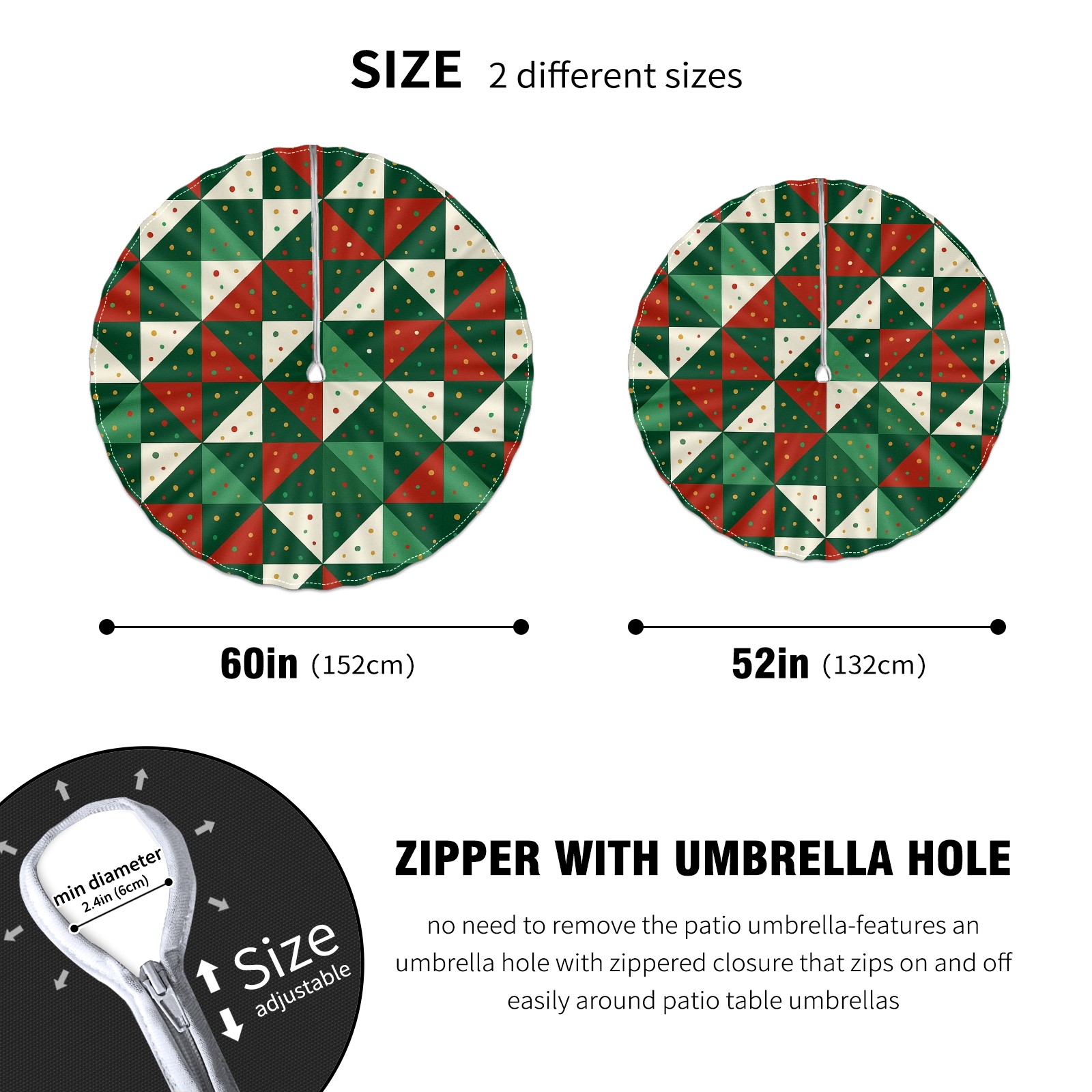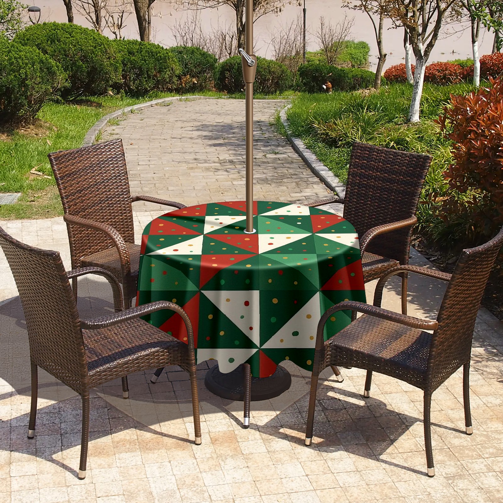 Round Tablecloth Geometric Triangle Red Green Geometric with Umbrella Hole & Zipper, All-Weather Waterproof Outdoor Patio Cover, 60 Inch Fits 4-6 Seater, Easy Installation, Geometric Triangle Red Green Geometric