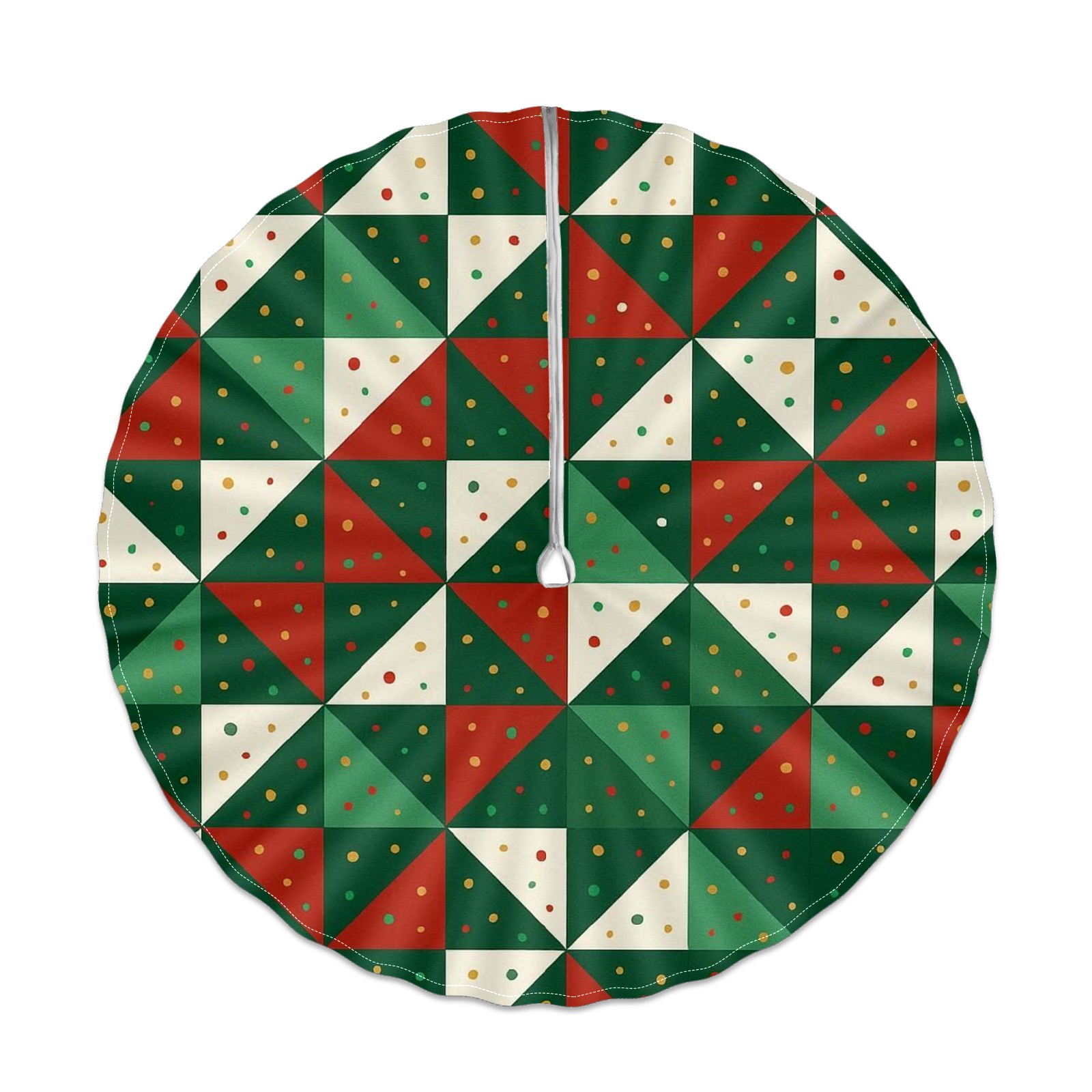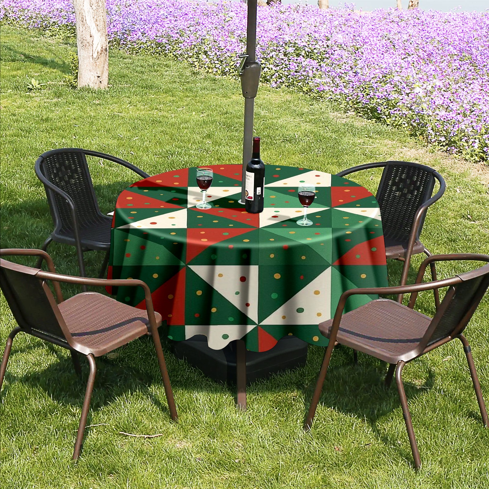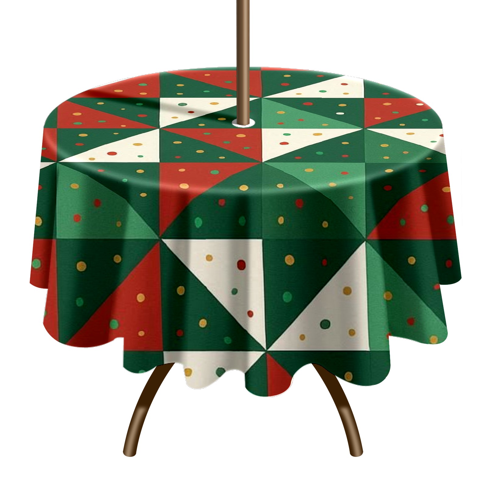 Round Tablecloth Geometric Triangle Red Green Geometric with Umbrella Hole & Zipper, All-Weather Waterproof Outdoor Patio Cover, 60 Inch Fits 4-6 Seater, Easy Installation, Geometric Triangle Red Green Geometric
