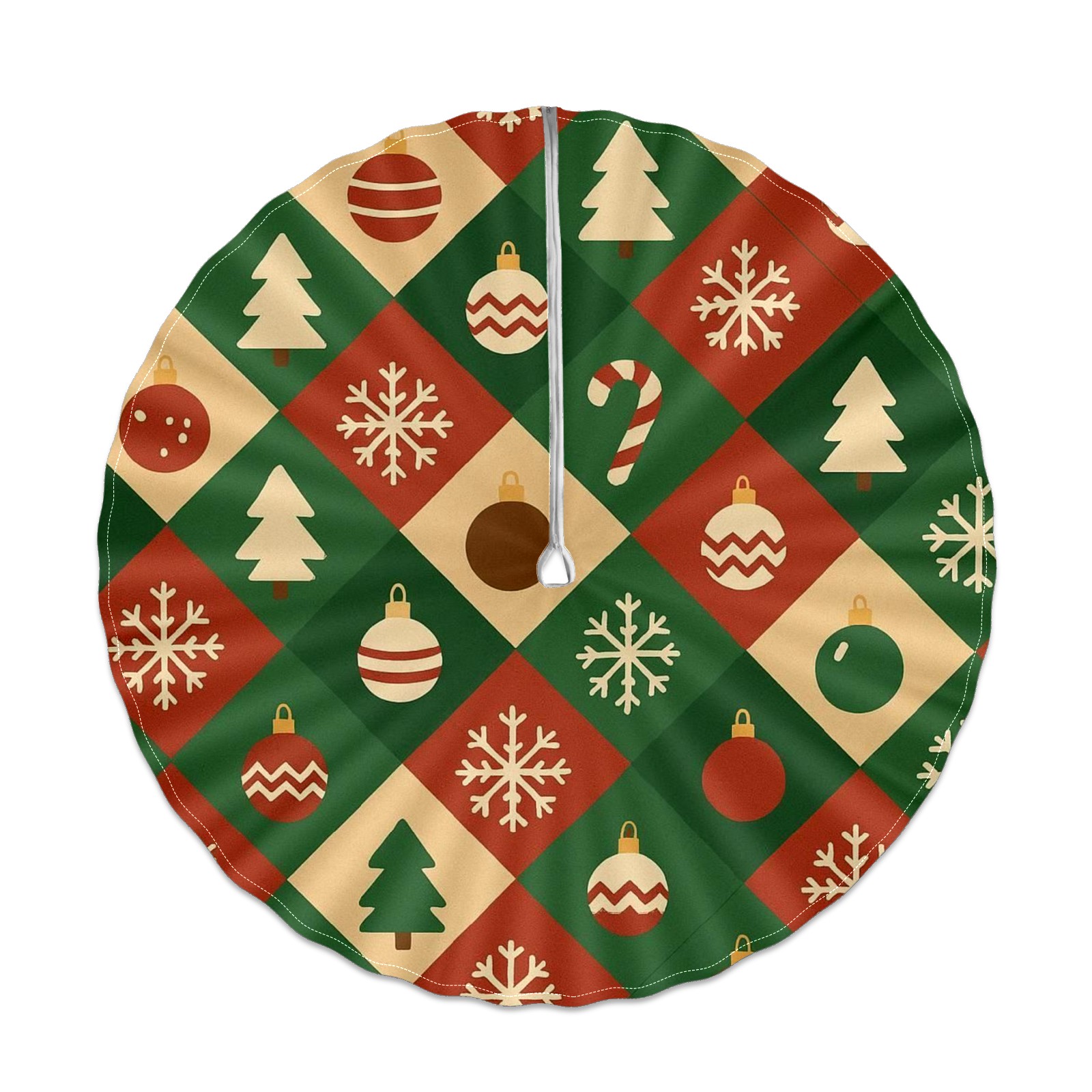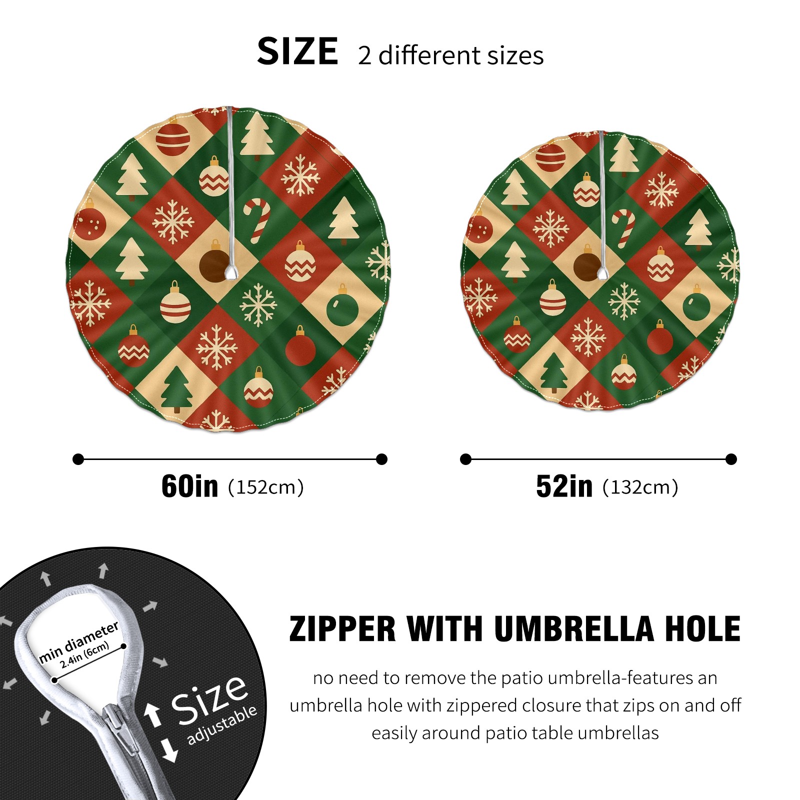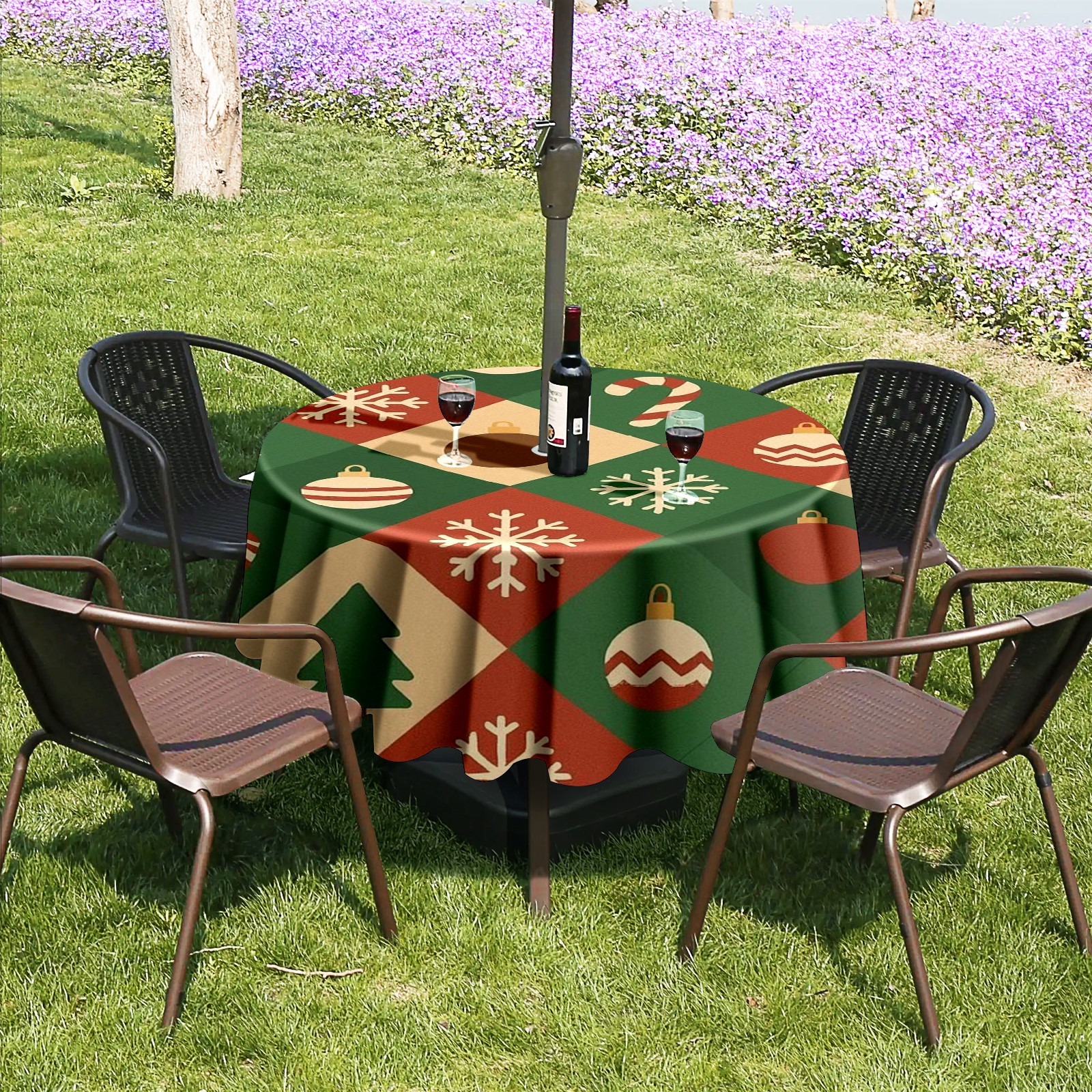 Round Tablecloth Christmas Diamond Red Green Patchwork with Umbrella Hole & Zipper, All-Weather Waterproof Outdoor Patio Cover, 60 Inch Fits 4-6 Seater, Easy Installation, Christmas Diamond Red Green Patchwork