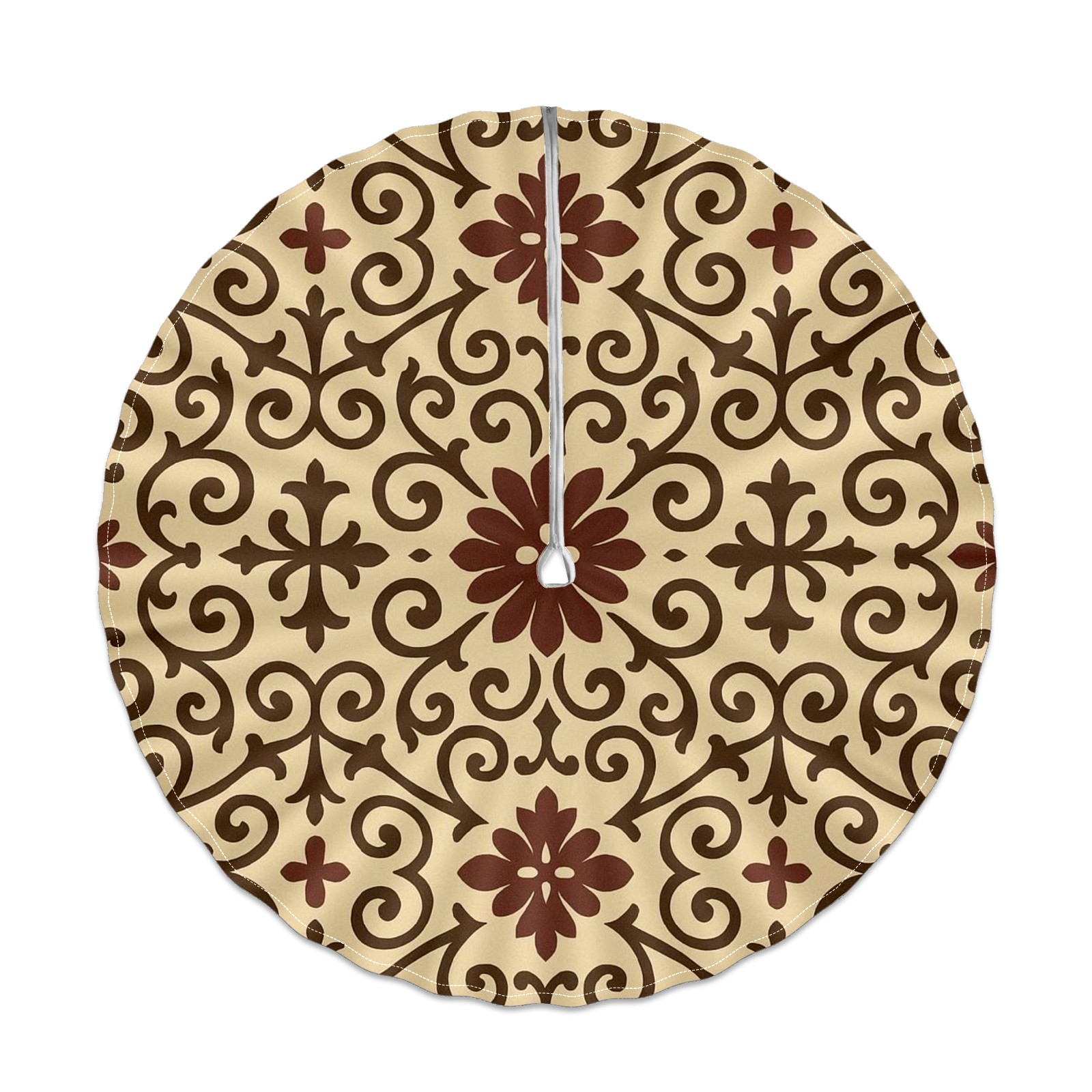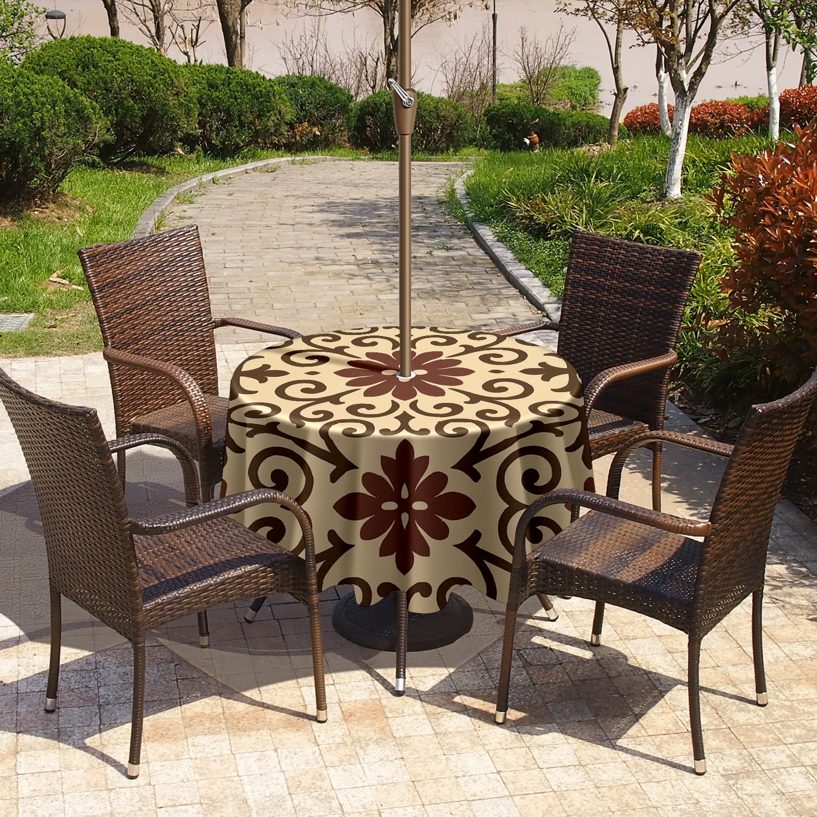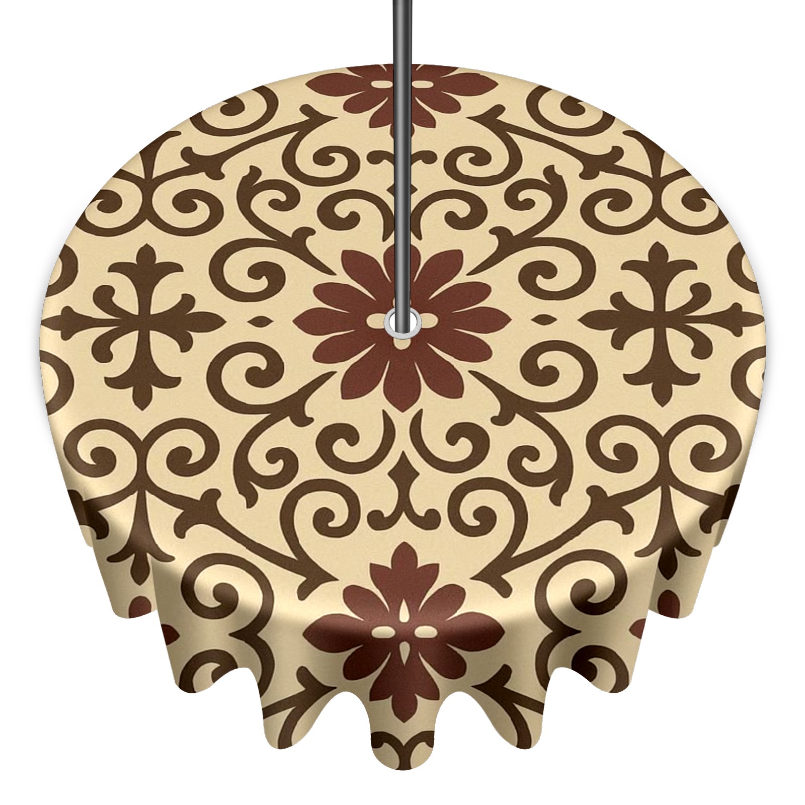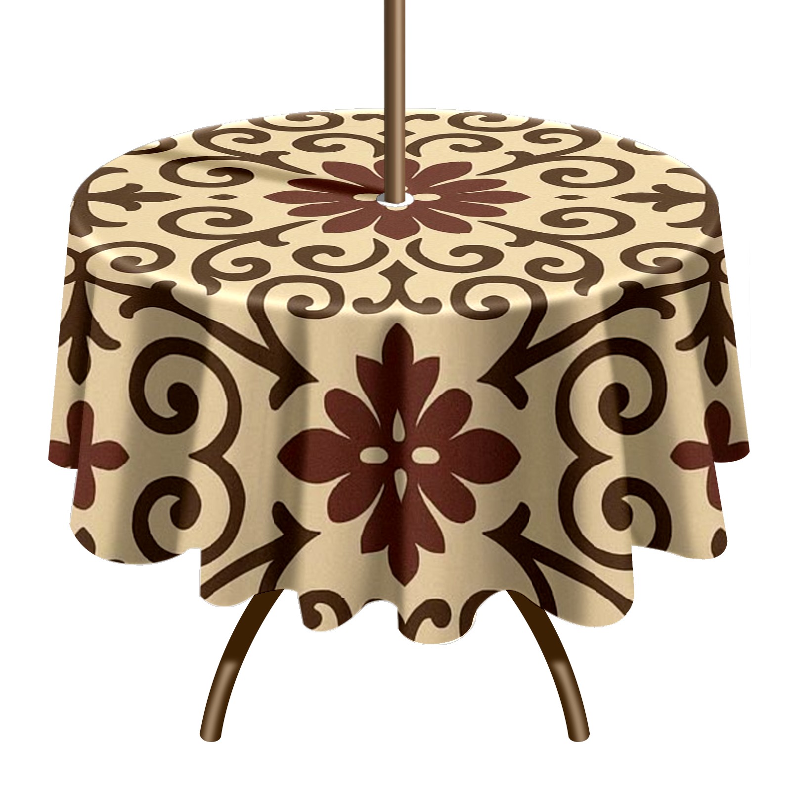 Round Tablecloth Pattern Brown Tan Paisley with Umbrella Hole & Zipper, All-Weather Waterproof Outdoor Patio Cover, 60 Inch Fits 4-6 Seater, Easy Installation, Pattern Brown Tan Paisley