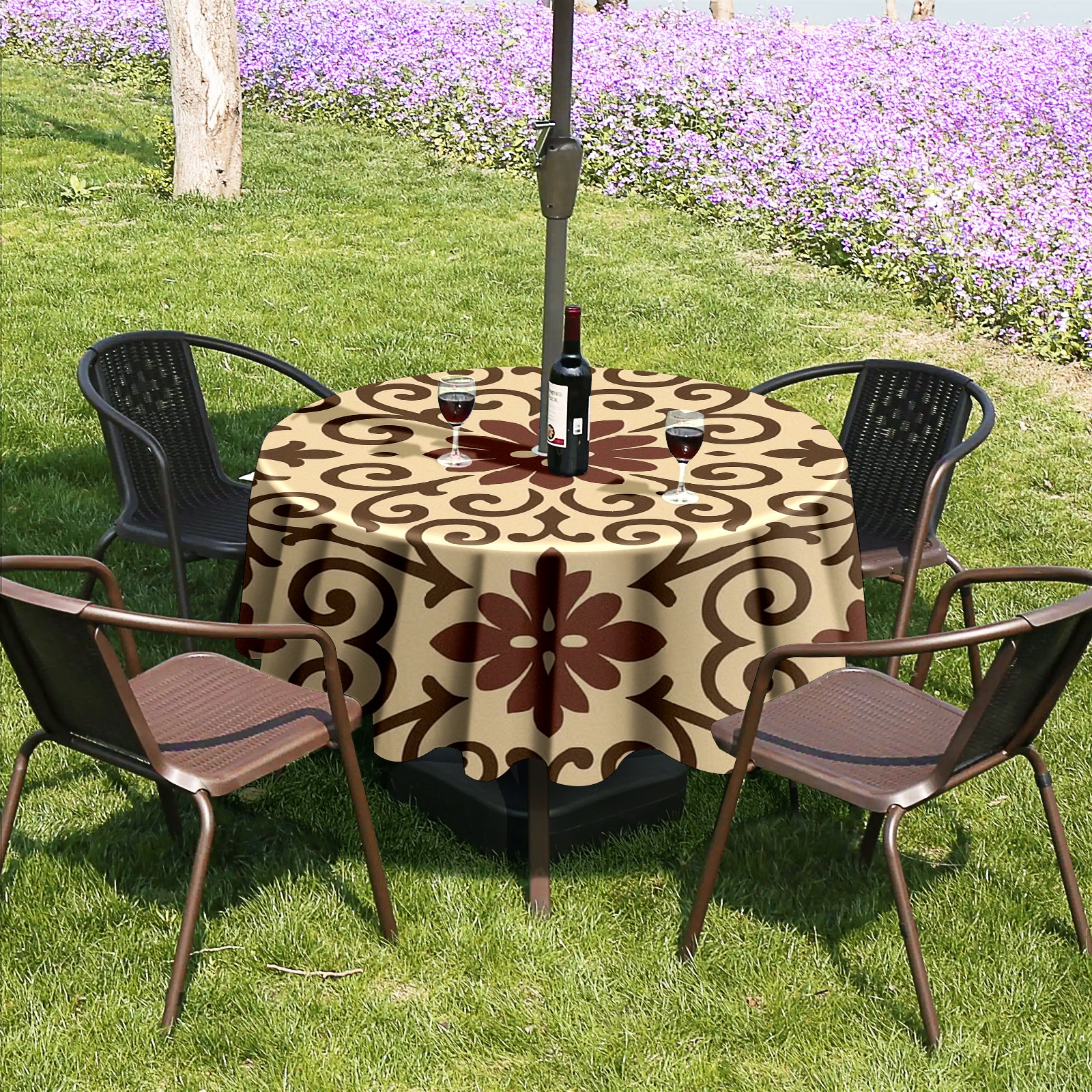 • <p><strong>Instant Patio Perfection, Made Simple.</strong></p><p>Revolutionize your outdoor dining with our Round Tablecloth. The <strong>smart zippered umbrella hole</strong> means you can <strong>dress your table in under 10 seconds</strong>—no umbrella disassembly required!</p><p>• <strong>INSTANT ZIP-ON SETUP</strong>: The easiest way to cover your round table.<br /> • <strong>BUILT TO LAST</strong>: Water-resistant, heavy-duty fabric for lasting beauty.<br /> • <strong>IDEAL FOR HOMES &amp; BUSINESSES</strong>: Transforms gardens, balconies, and cafe terraces.</p><p><strong>Order Now and Enjoy Alfresco Dining, the Easy Way!</strong></p>