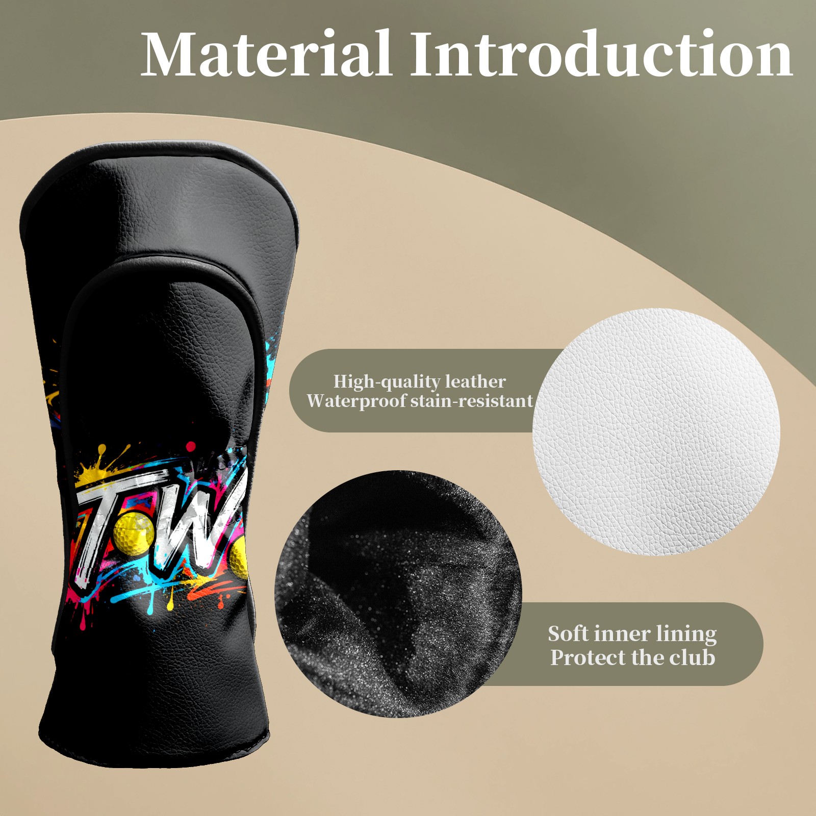 <p>This cover is made of top grade PU leather, which is wear-resistant, waterproof and stain-resistant, and can easily withstand the wind, rain and daily wear and tear; the velvet lining gently wraps around the cover, cushioning the impact and eliminating scratches and abrasions. The velvet lining cushions impacts and prevents scratches and abrasions. Surface stains wipe clean and the tear-resistant design lasts as long as new. Dual size fits all types of clubs, simple and advanced texture design, is a good choice for birthday and holiday gift.</p>