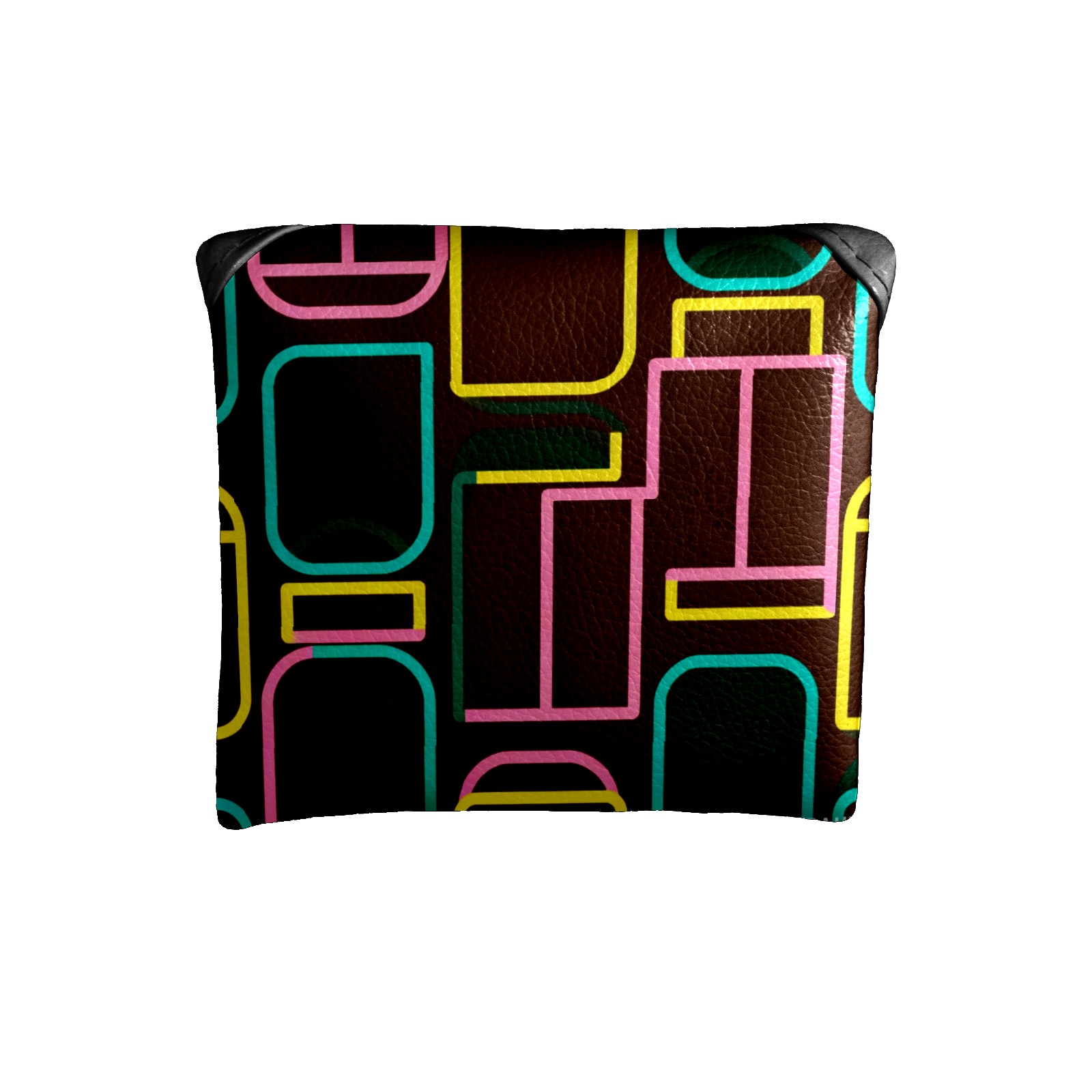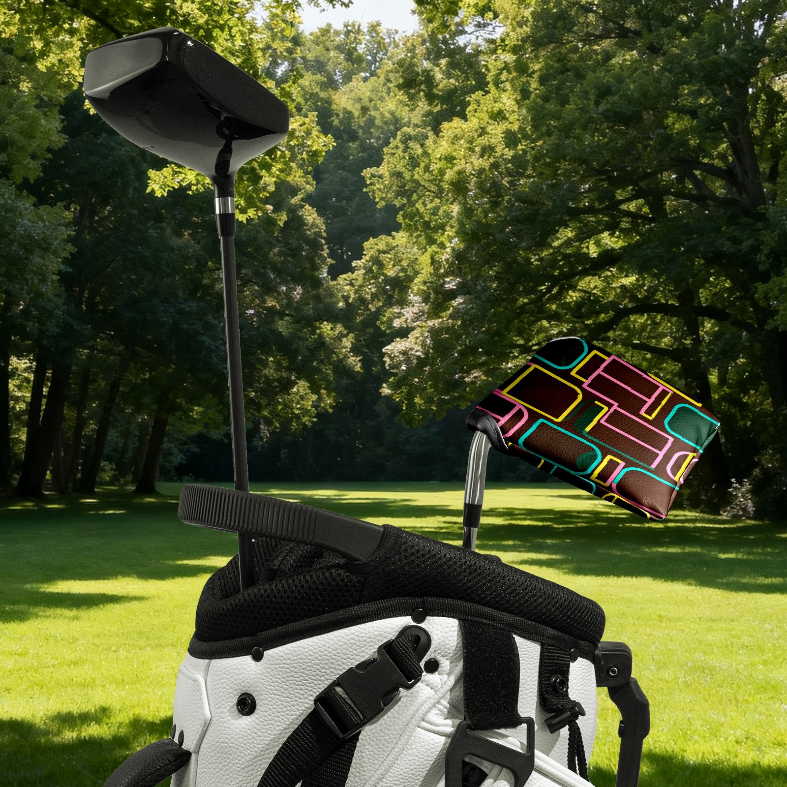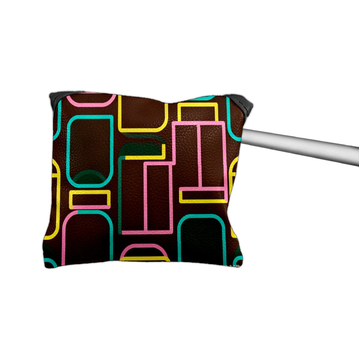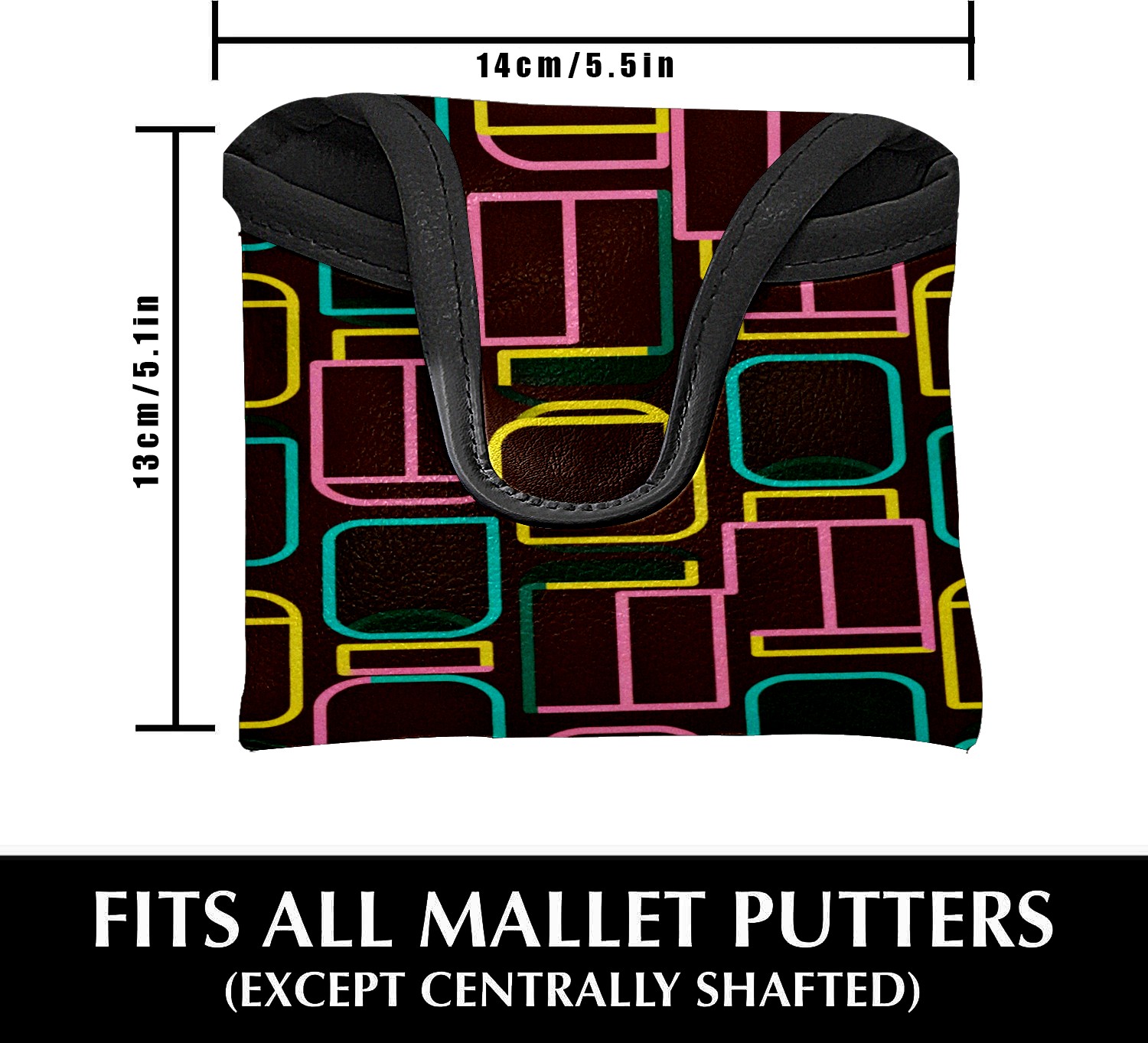 Mallet Putter Cover,Golf Club Head Cover, PU Leather Iron Head Covers Set Gift for Travel Cases Protector Fit Most, Easily Slips on and Secures Brown Geometric Line Patterns
