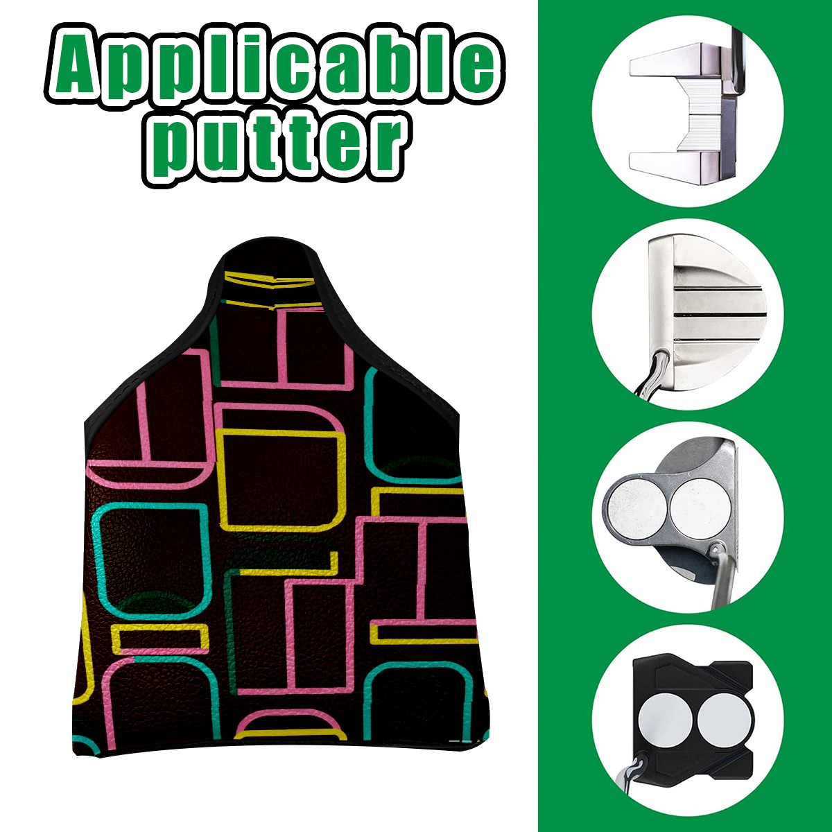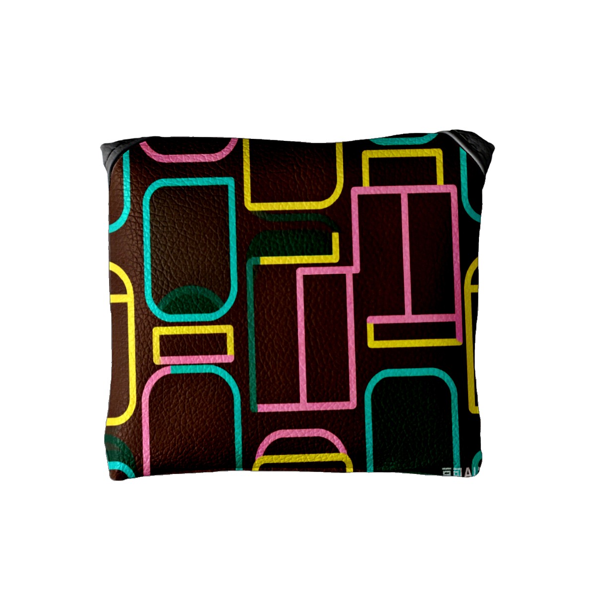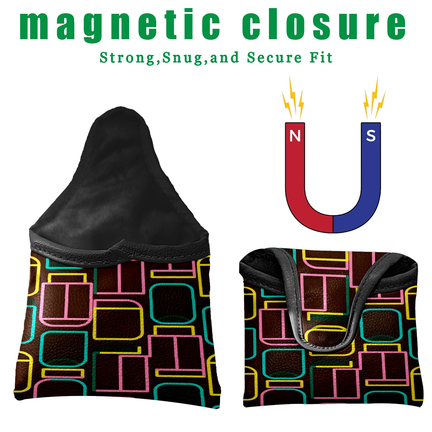 Mallet Putter Cover,Golf Club Head Cover, PU Leather Iron Head Covers Set Gift for Travel Cases Protector Fit Most, Easily Slips on and Secures Brown Geometric Line Patterns