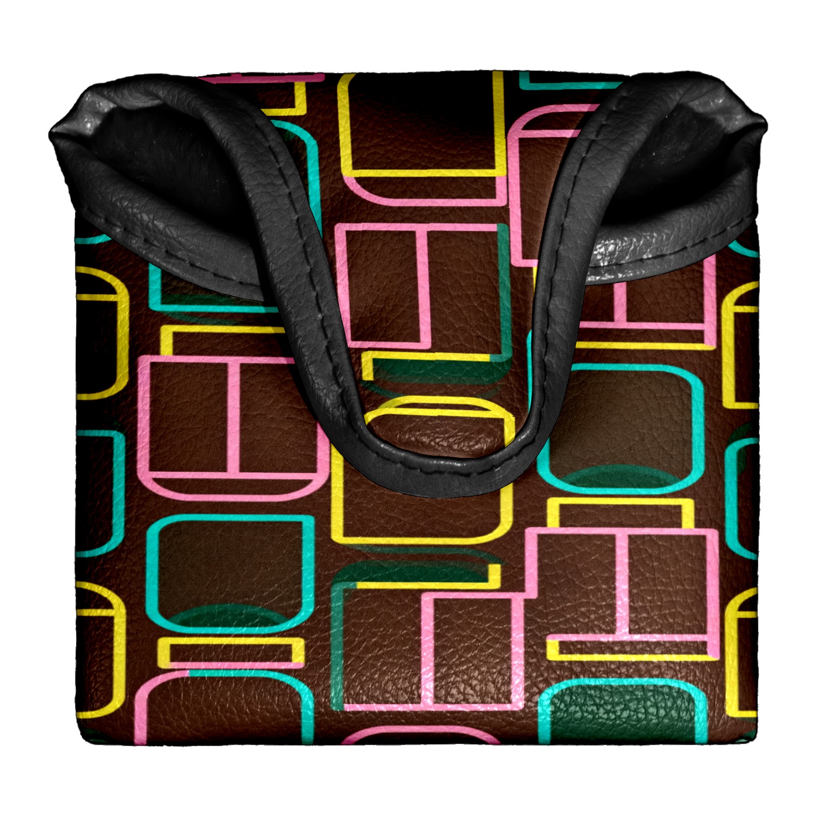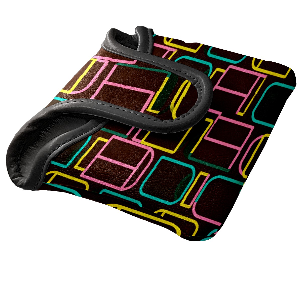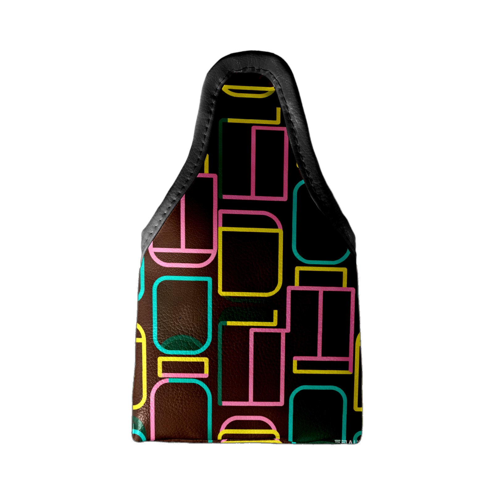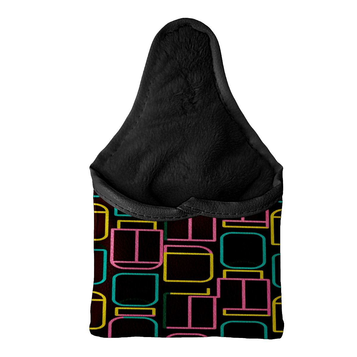 Mallet Putter Cover,Golf Club Head Cover, PU Leather Iron Head Covers Set Gift for Travel Cases Protector Fit Most, Easily Slips on and Secures Brown Geometric Line Patterns