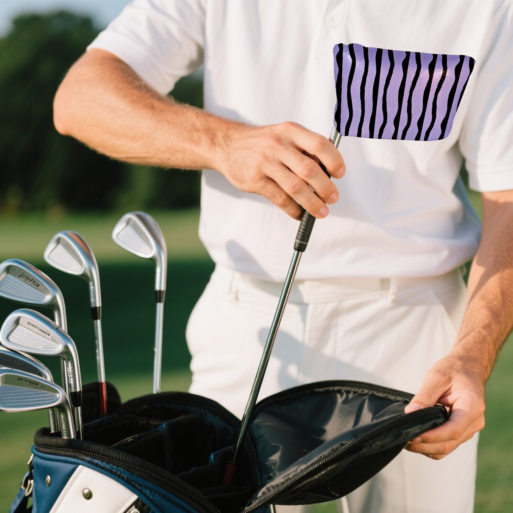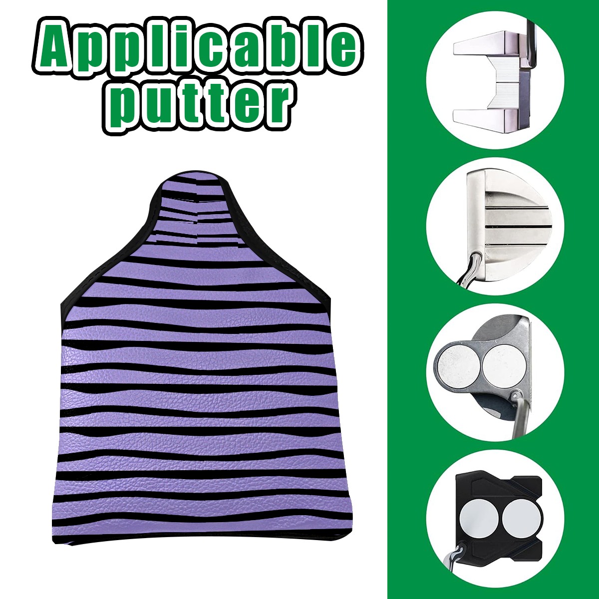 Mallet Putter Cover,Golf Club Head Cover, PU Leather Iron Head Covers Set Gift for Travel Cases Protector Fit Most, Easily Slips on and Secures Purple-black Wavy Stripe Pattern