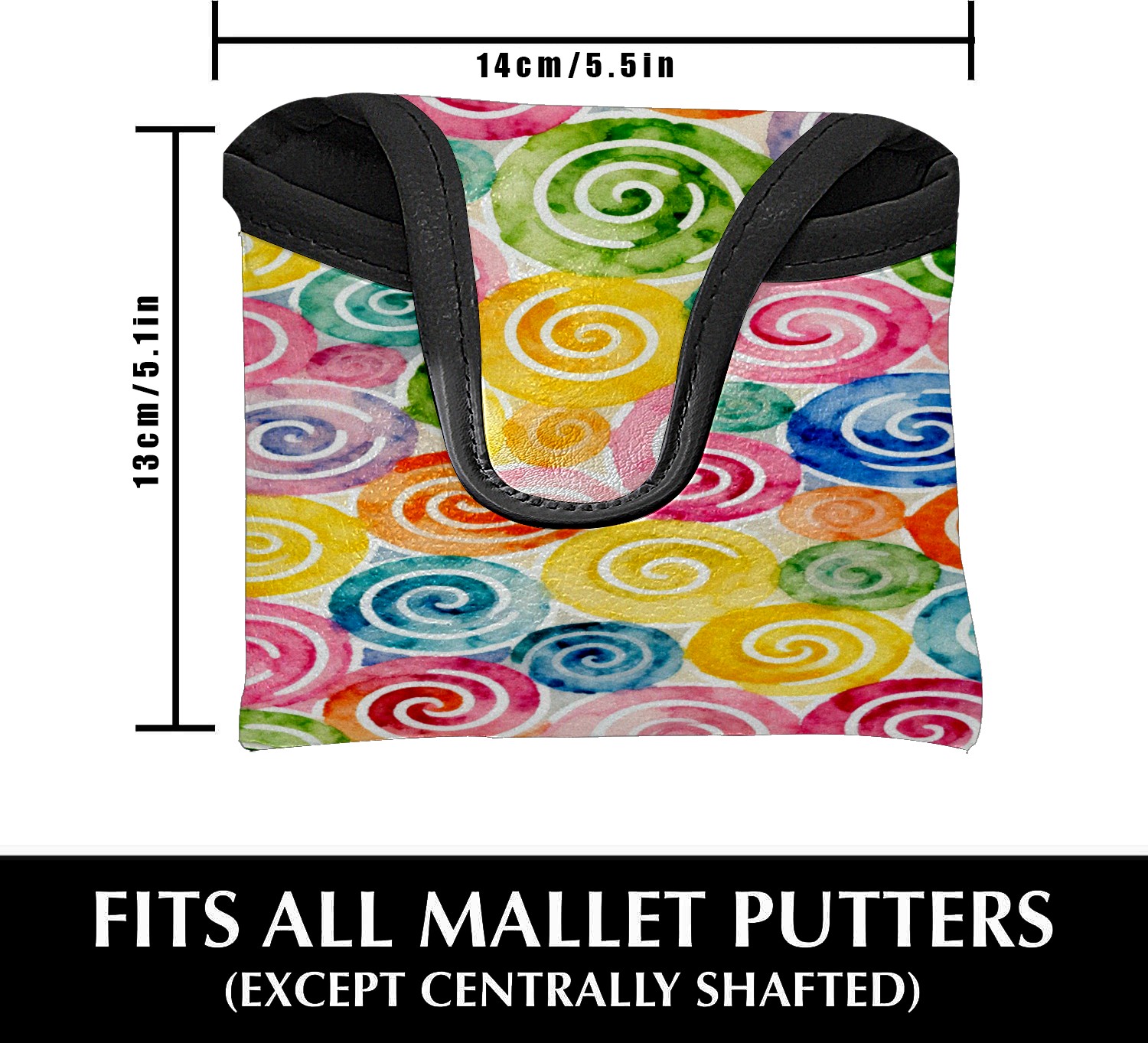 Mallet Putter Cover,Golf Club Head Cover, PU Leather Iron Head Covers Set Gift for Travel Cases Protector Fit Most, Easily Slips on and Secures Colorful Spiral Pattern