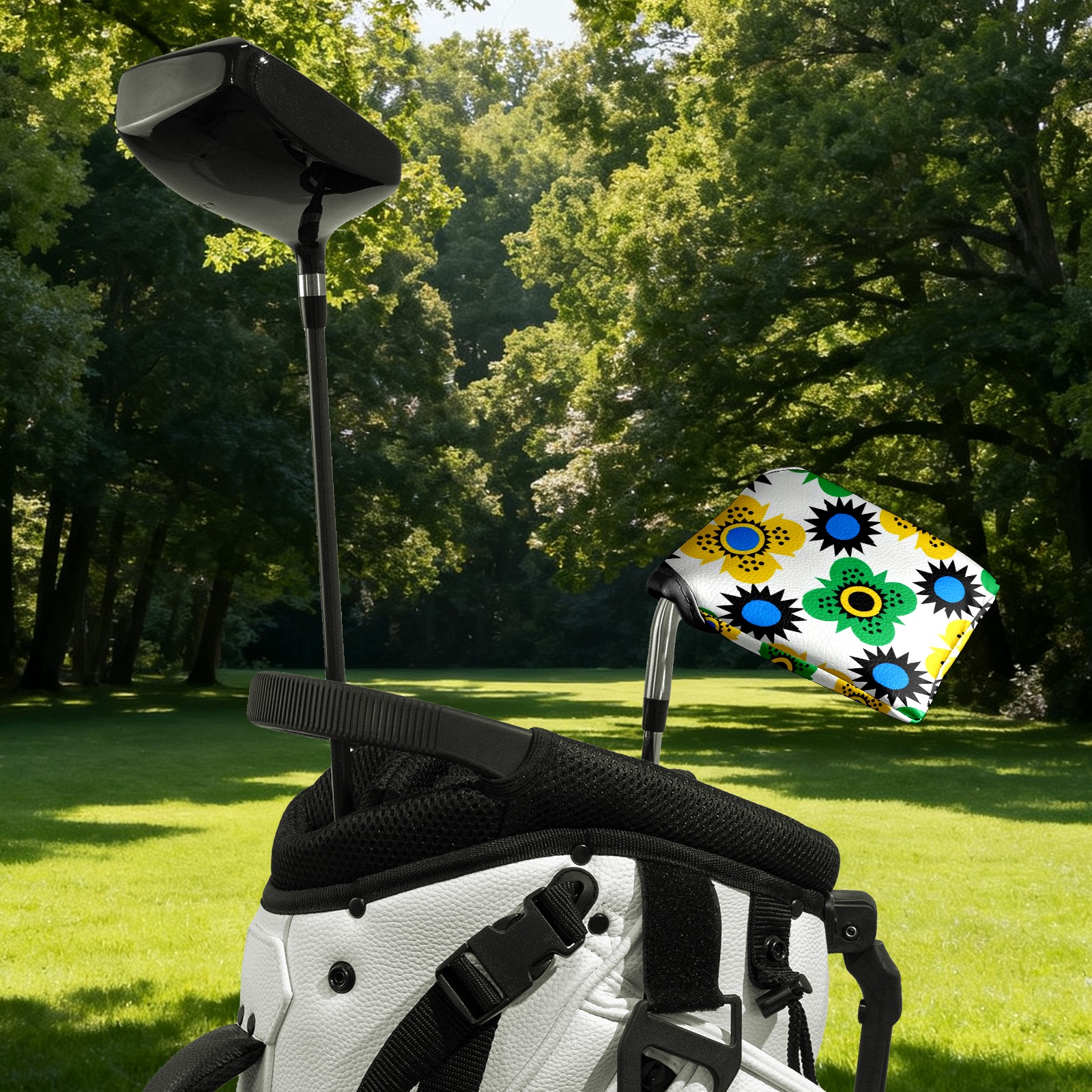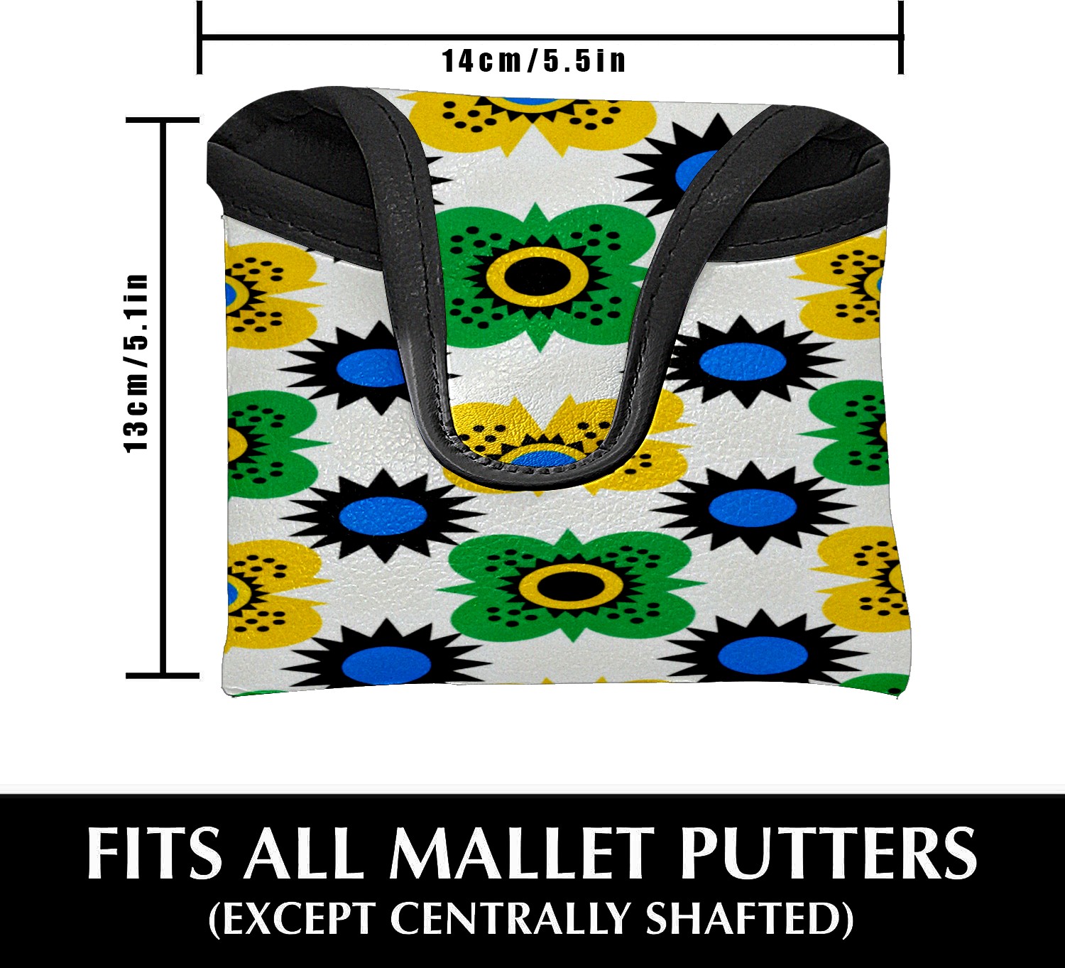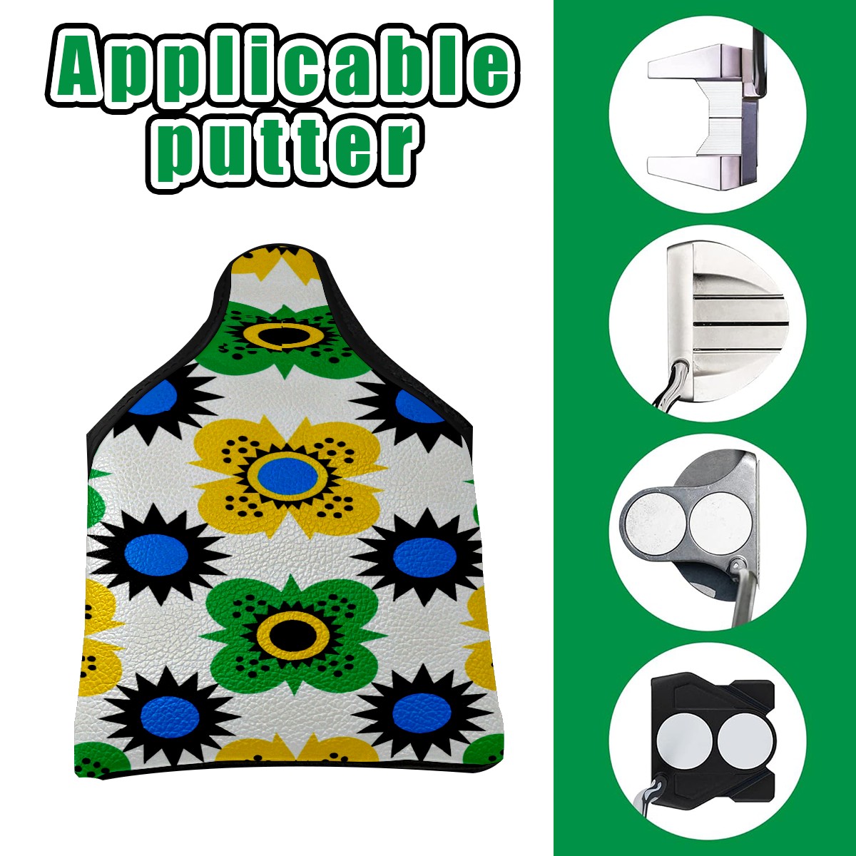 Mallet Putter Cover,Golf Club Head Cover, PU Leather Iron Head Covers Set Gift for Travel Cases Protector Fit Most, Easily Slips on and Secures Geometric Floral Design