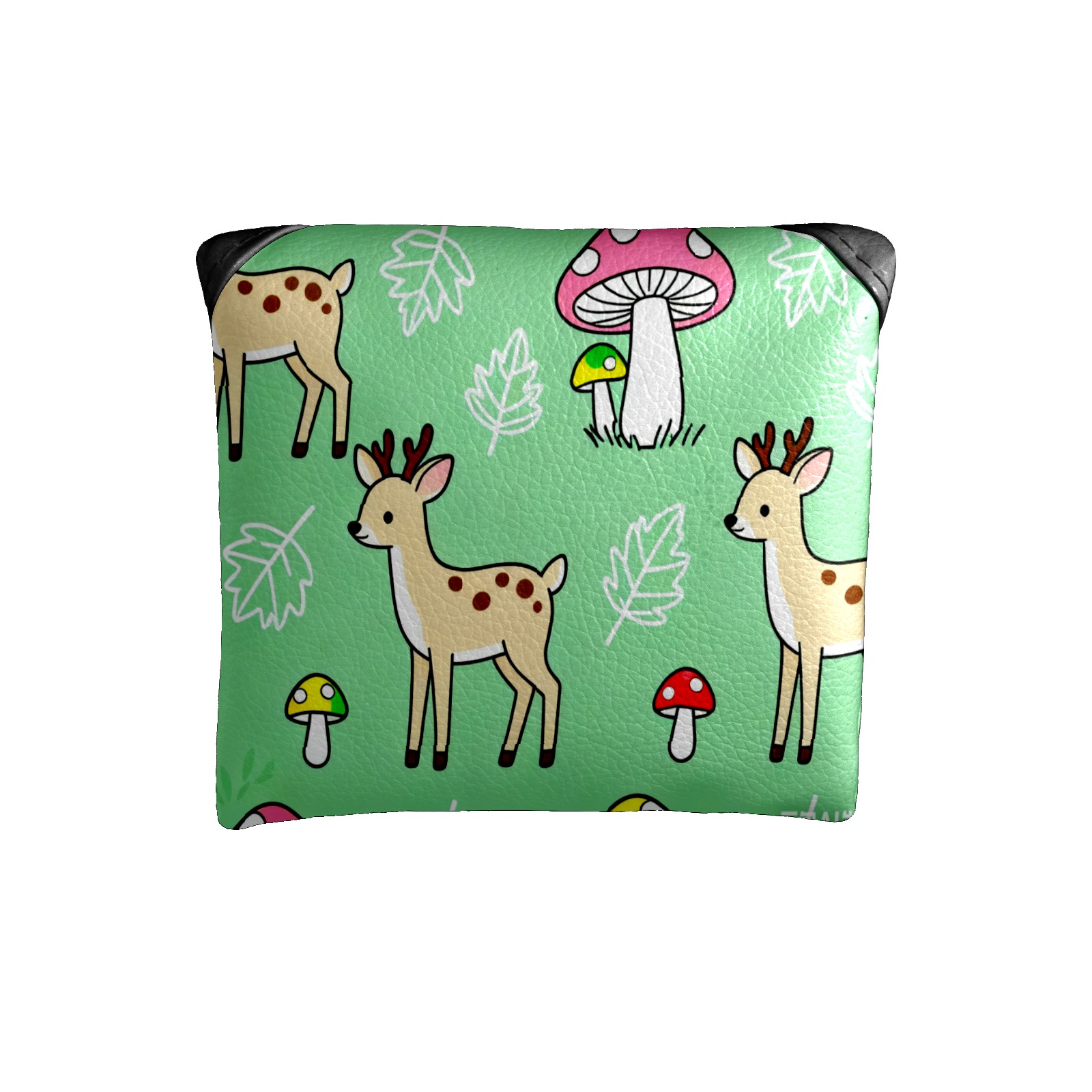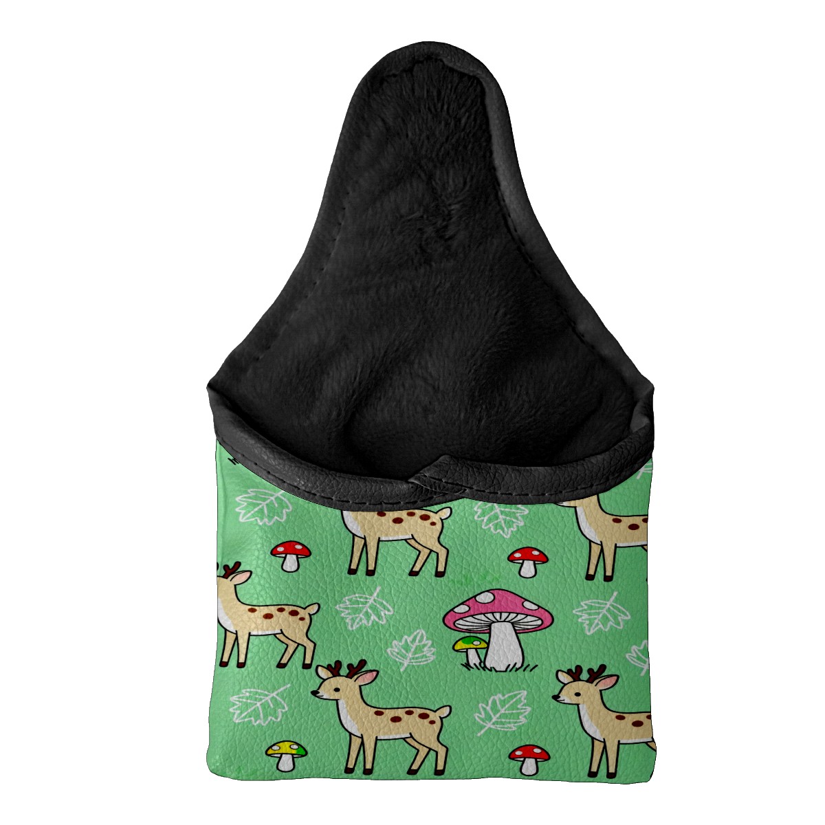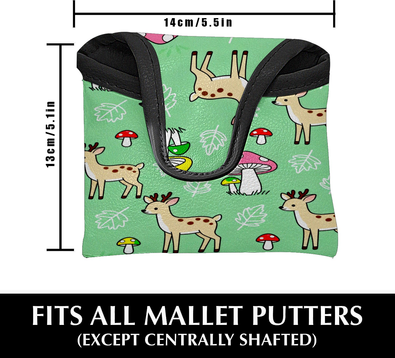 Mallet Putter Cover,Golf Club Head Cover, PU Leather Iron Head Covers Set Gift for Travel Cases Protector Fit Most, Easily Slips on and Secures Light Green Forest Deer